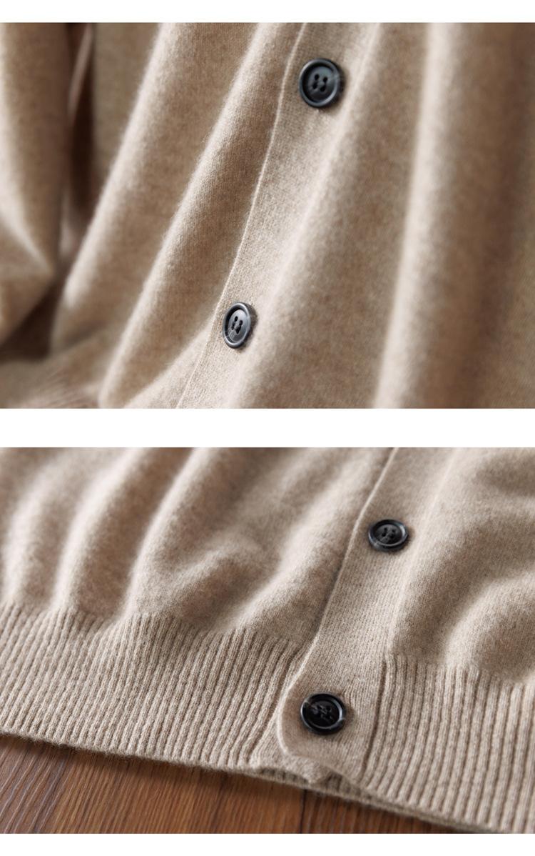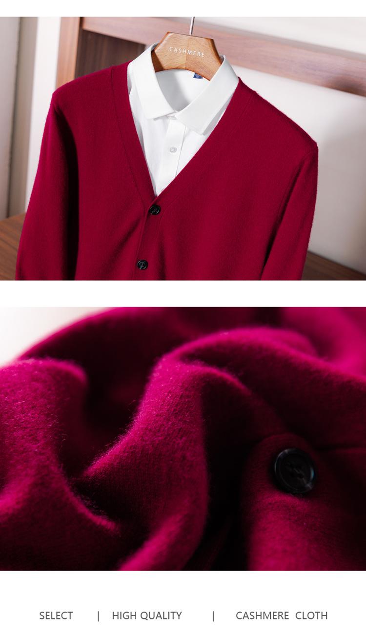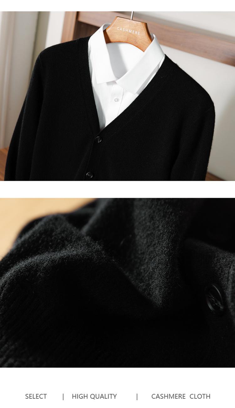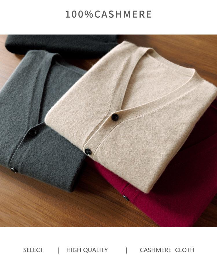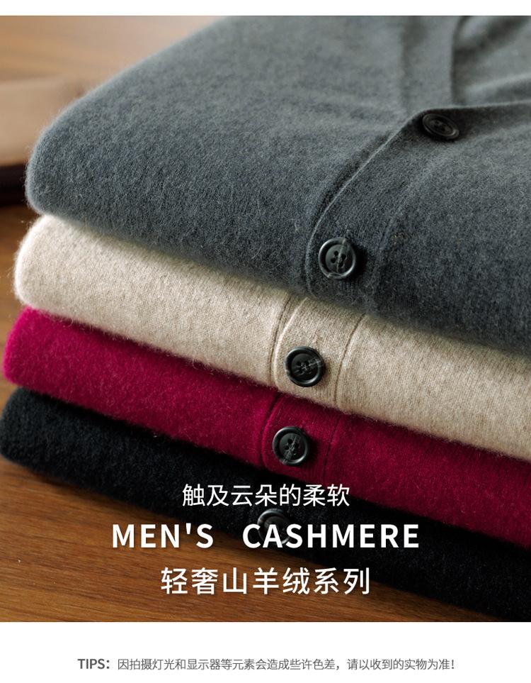 Suéter de cachemira pura de otoño e invierno, cárdigan de punto para hombre, chaqueta de negocios informal de punto con cuello en V simple, ropa para hombre transfronteriza