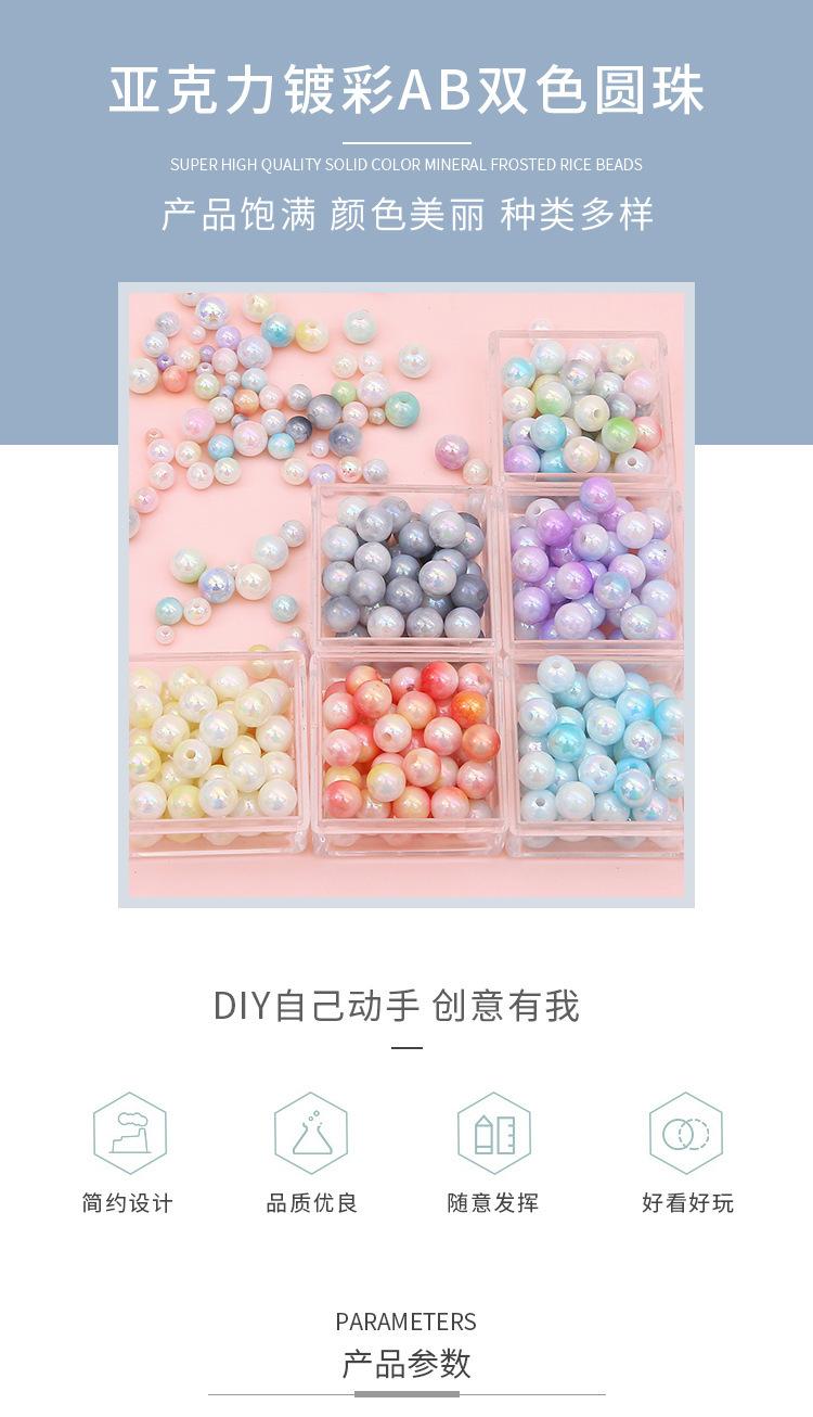 Cuentas redondas bicolores acrílicas chapadas en color AB, cuentas sueltas hechas a mano, collar de cuentas, pulsera, accesorios de joyería, fábrica al por mayor