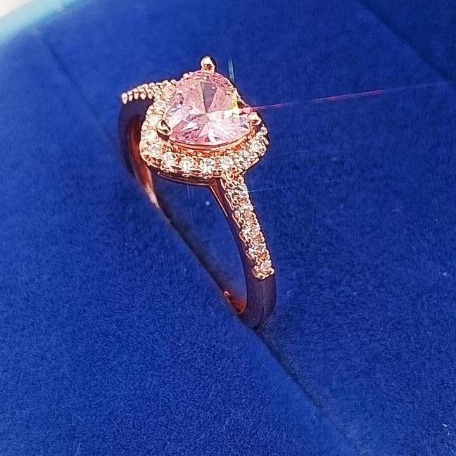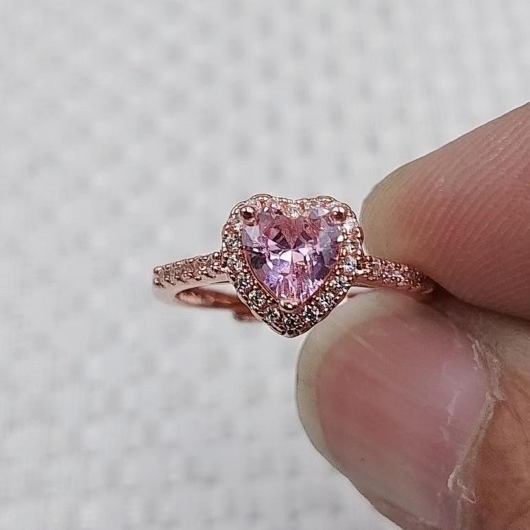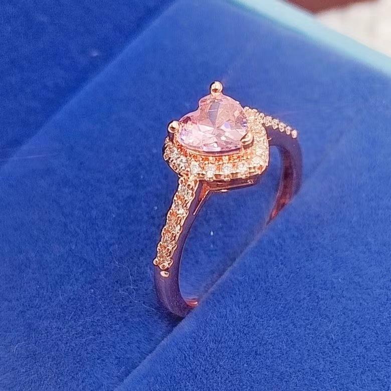 Compra Suministro en vivo 1 quilate anillo en forma de corazón de amor diamante rosa simulación anillo abierto diamante completo corazón melocotón anillo de tendencia de moda al por mayor en Joom.pro