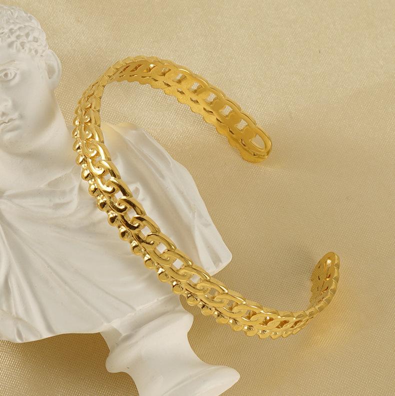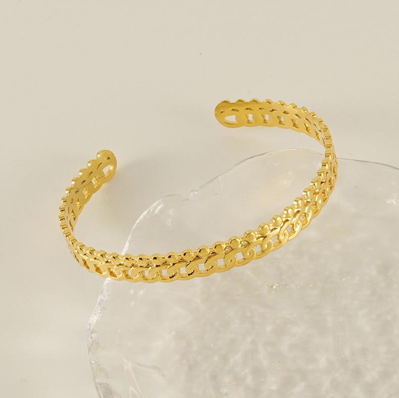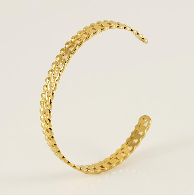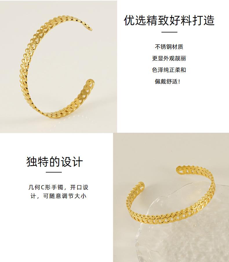 Pulsera de cadena de acero de titanio europea y americana transfronteriza para mujer, diseño de nicho, acero inoxidable 18K hueco con apertura, joyería al por mayor