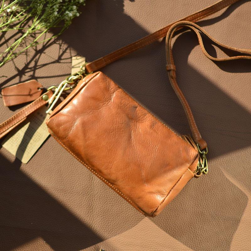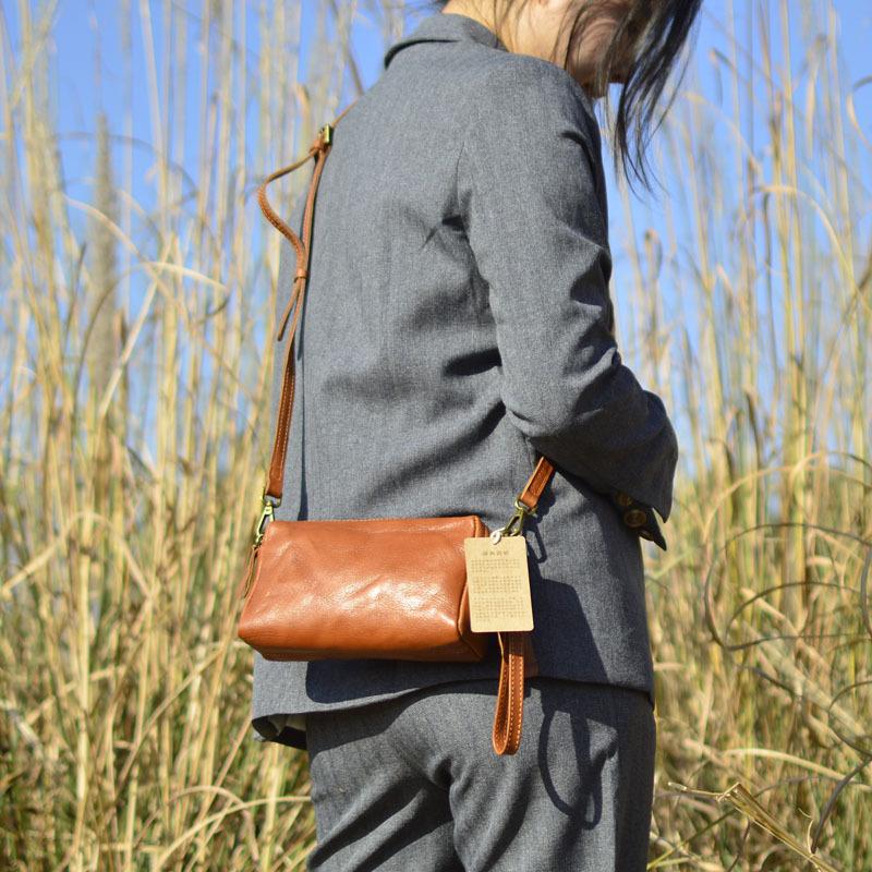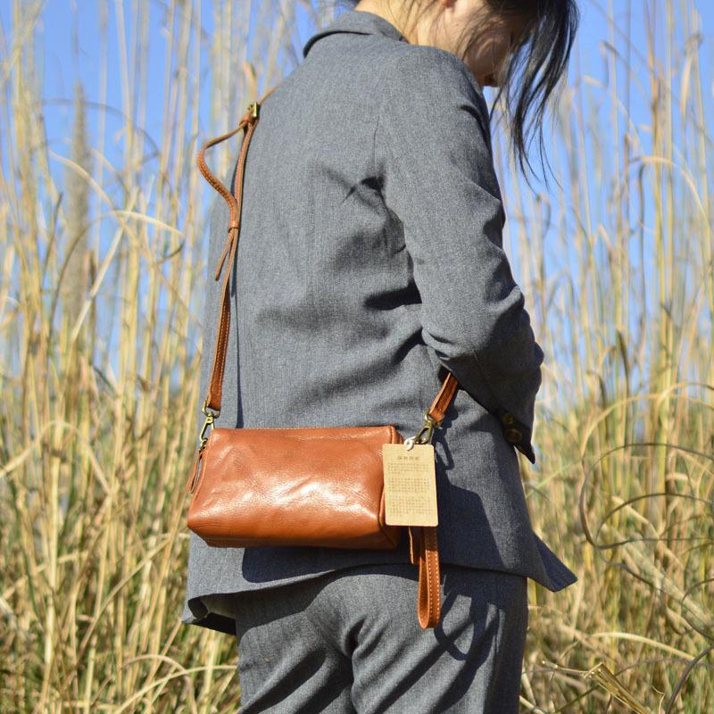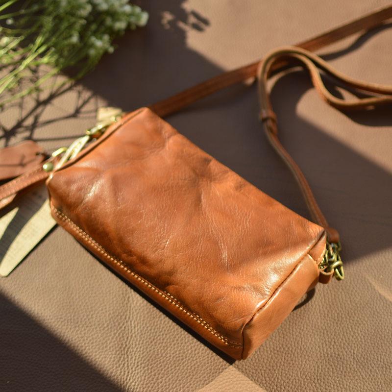 Bolso pequeño de piel auténtica para mujer, bandolera de un solo hombro, mini bolso para teléfono móvil, bolso de mano juvenil de piel de vaca, de alta gama.