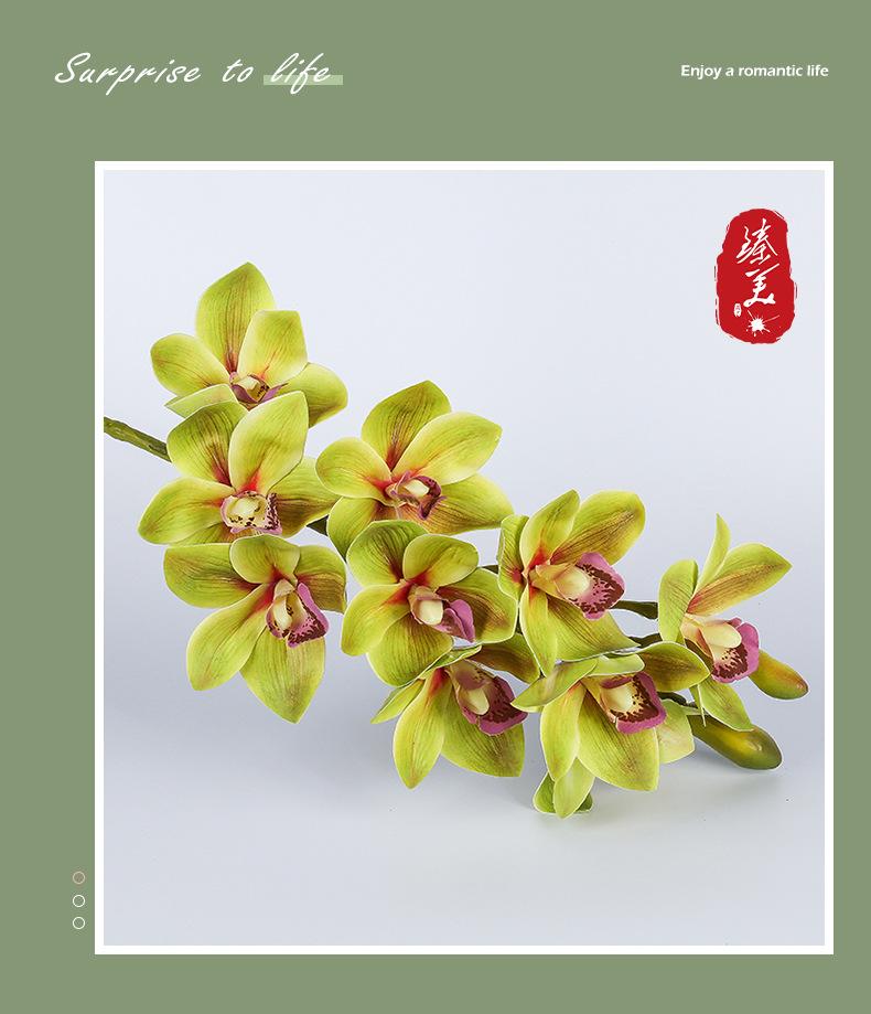 Simulación de flor artificial Cymbidium, sensación de boda, flor falsa, diseño de boda, decoración de sala de estar para el hogar, arreglo floral, arreglo floral, flor