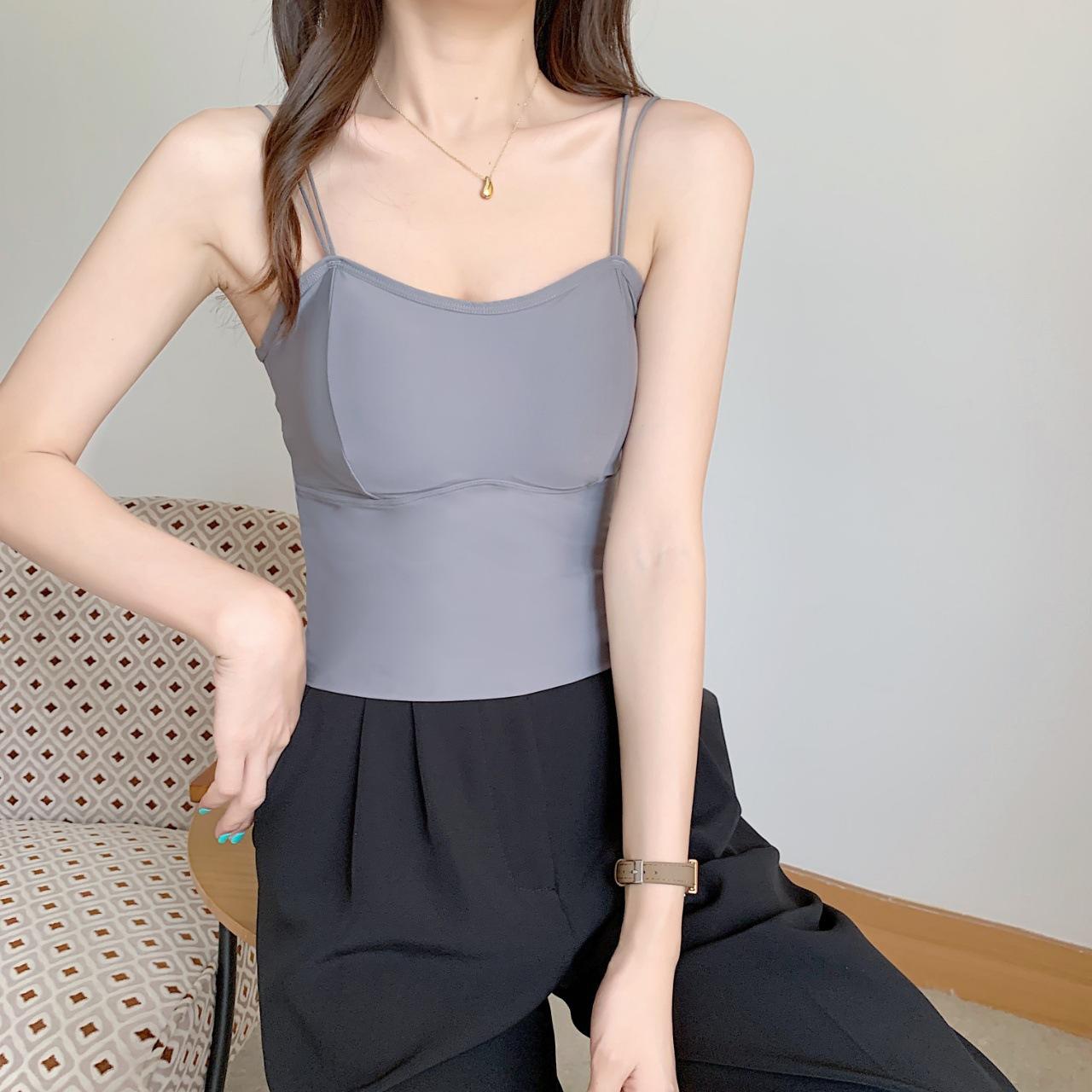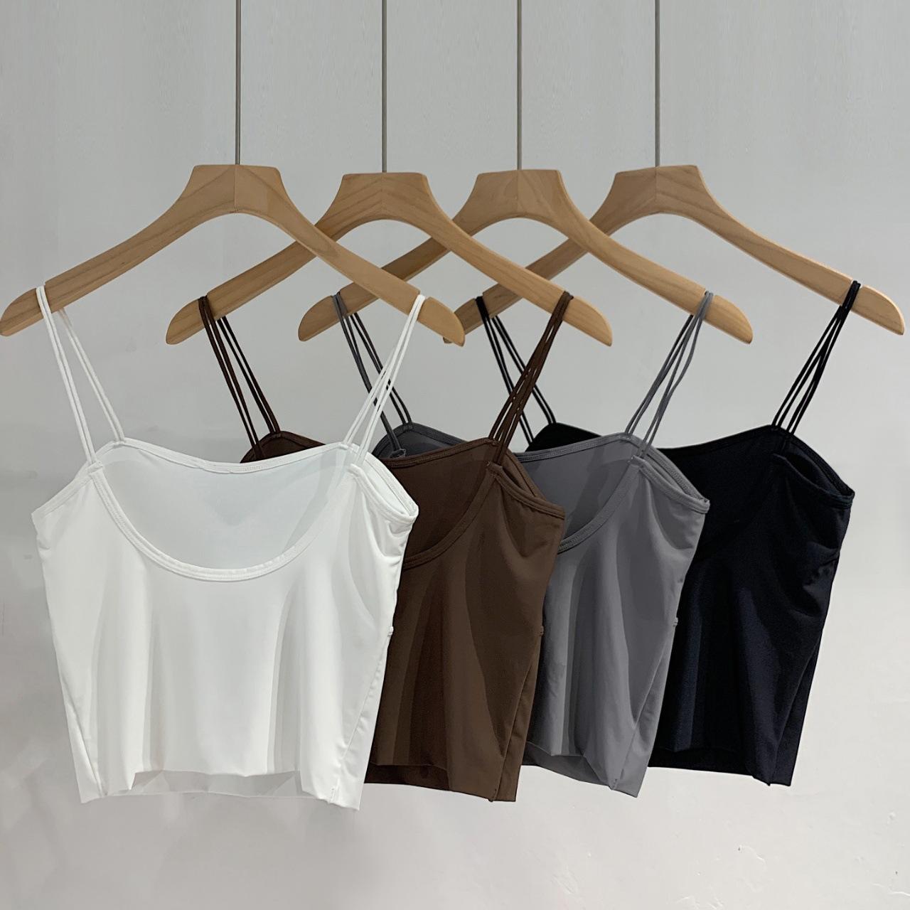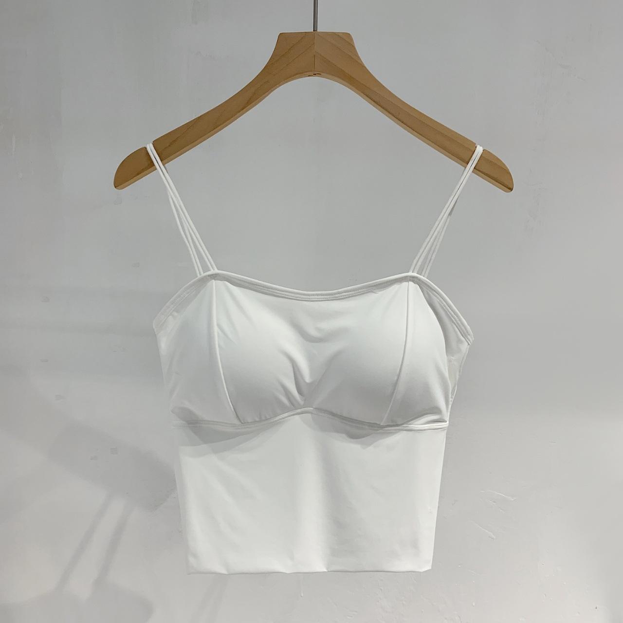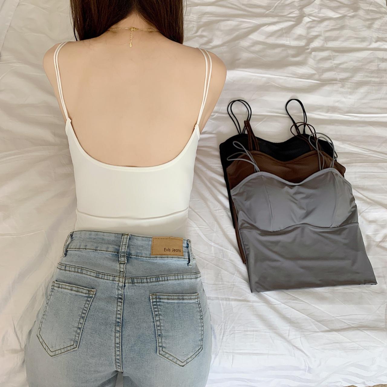 Seda de Hielo Hermoso Espalda Descubierta Tirantes Chaleco Pequeño para Mujer Estilo Coreano Largo Sexy Tirantes en U Almohadilla en el Pecho Alta Elasticidad Transpirable Top de Tubo Ropa Interior de Verano