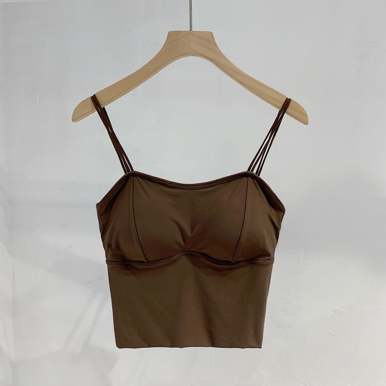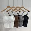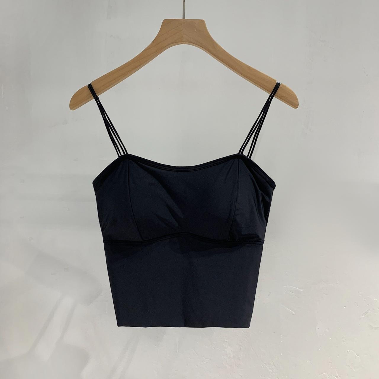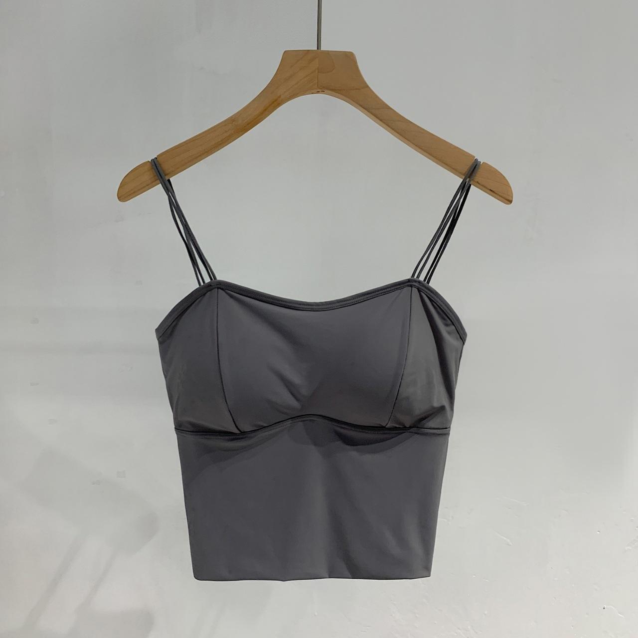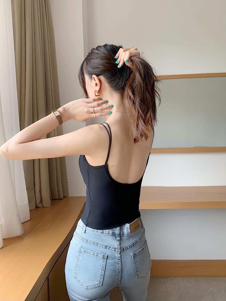 Seda de Hielo Hermoso Espalda Descubierta Tirantes Chaleco Pequeño para Mujer Estilo Coreano Largo Sexy Tirantes en U Almohadilla en el Pecho Alta Elasticidad Transpirable Top de Tubo Ropa Interior de Verano