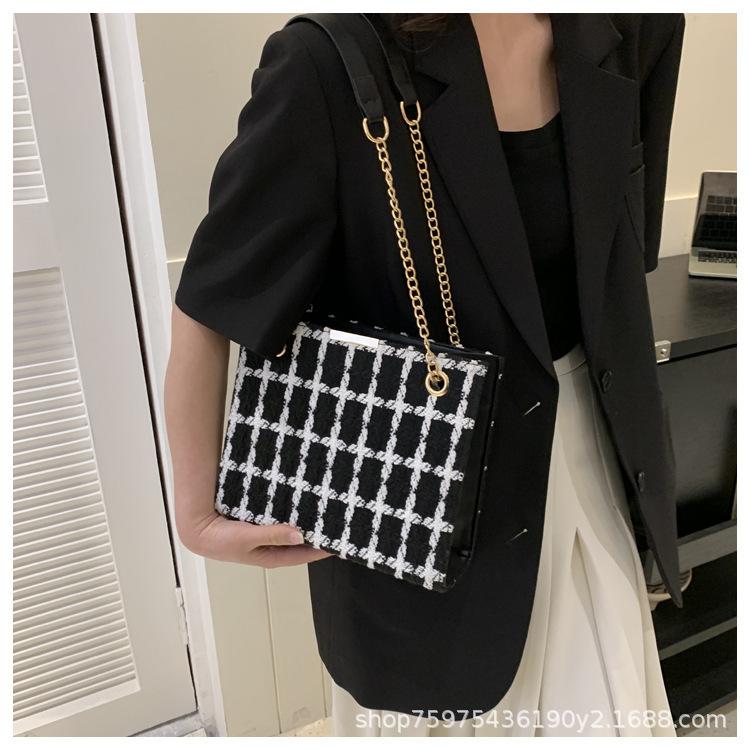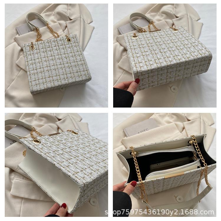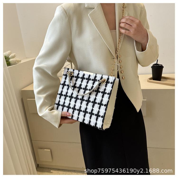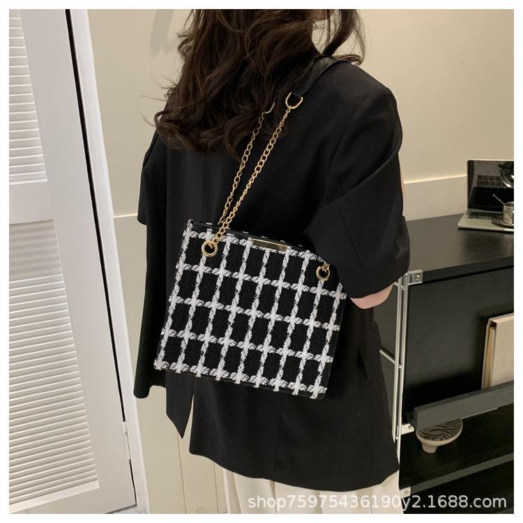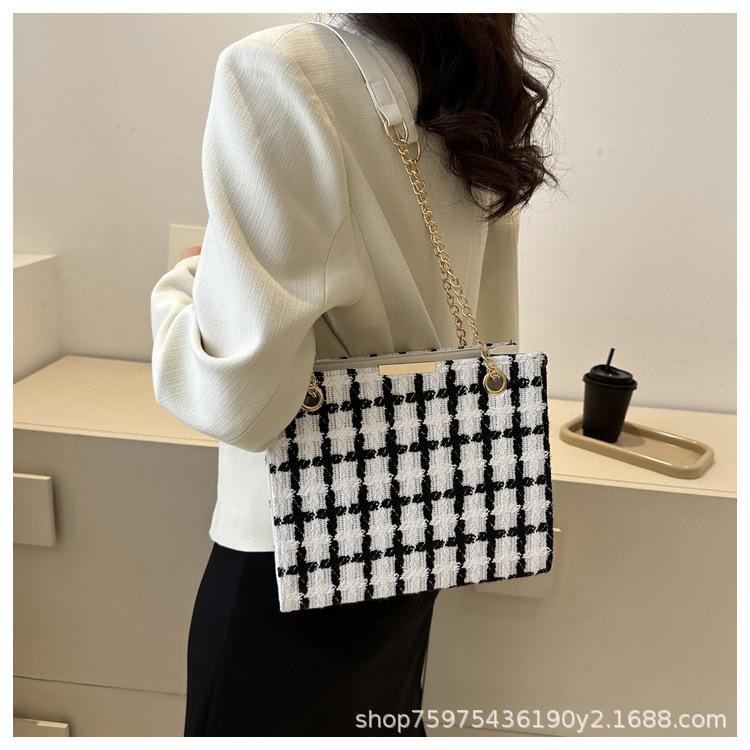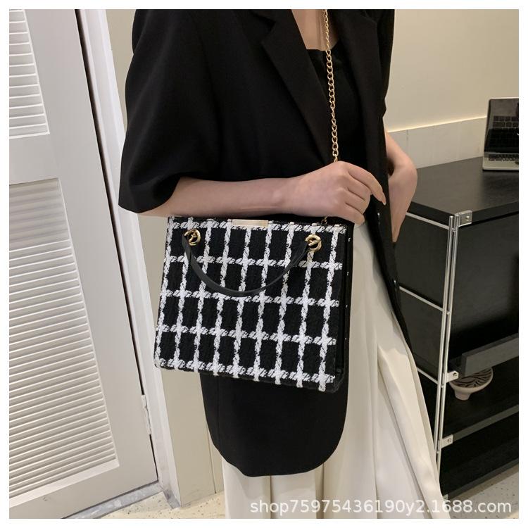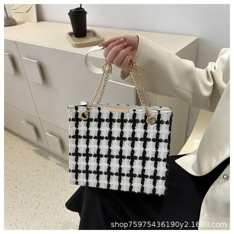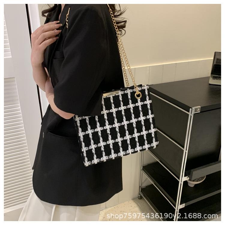 Compra Bolso de lana texturizado para mujer 2023 nuevo estilo occidental moda bandolera de hombro cadena a cuadros bolso cuadrado pequeño de moda al por mayor en Joom.pro