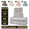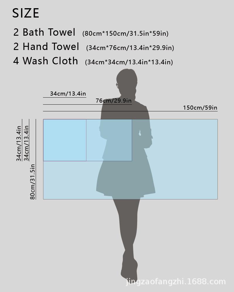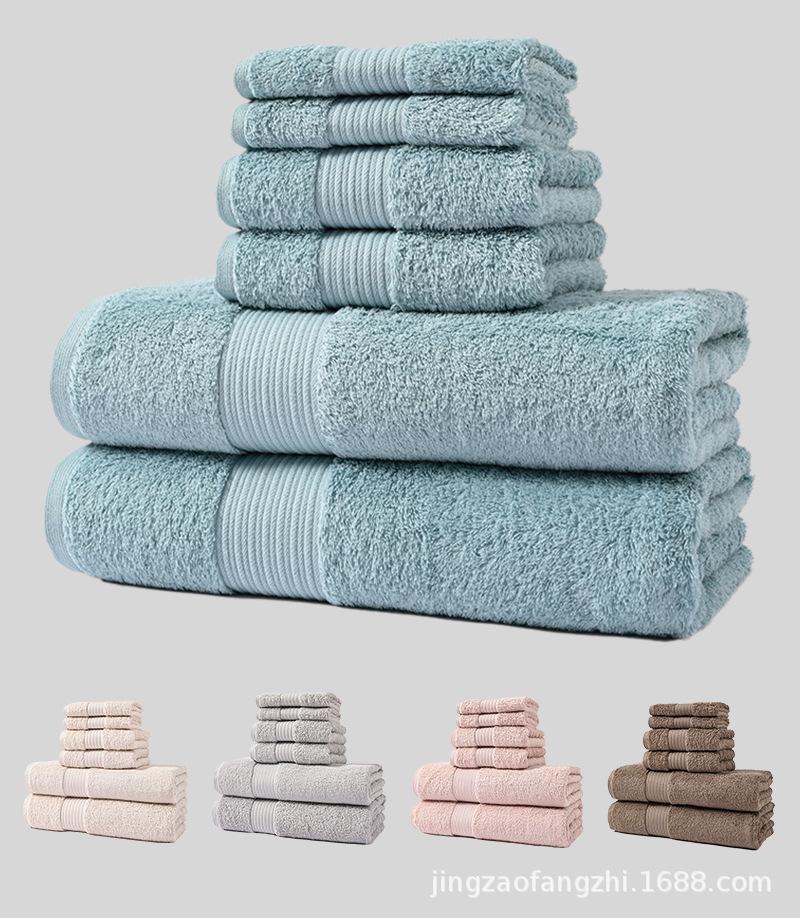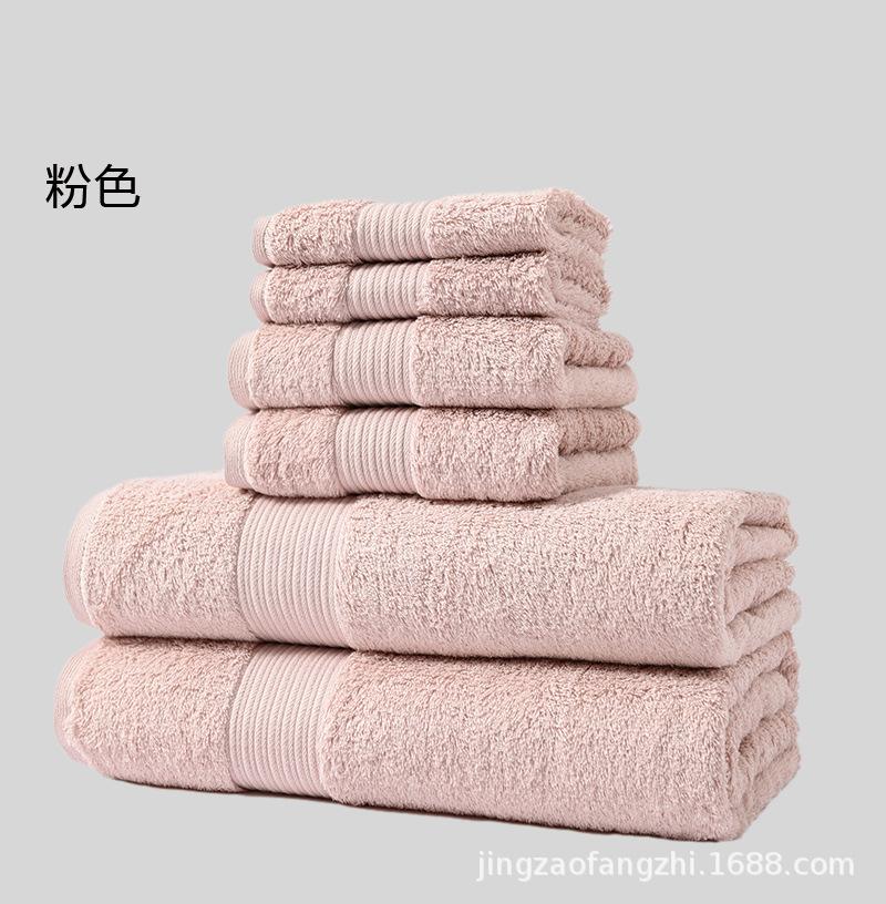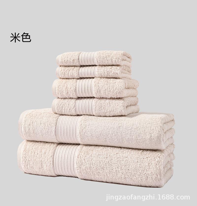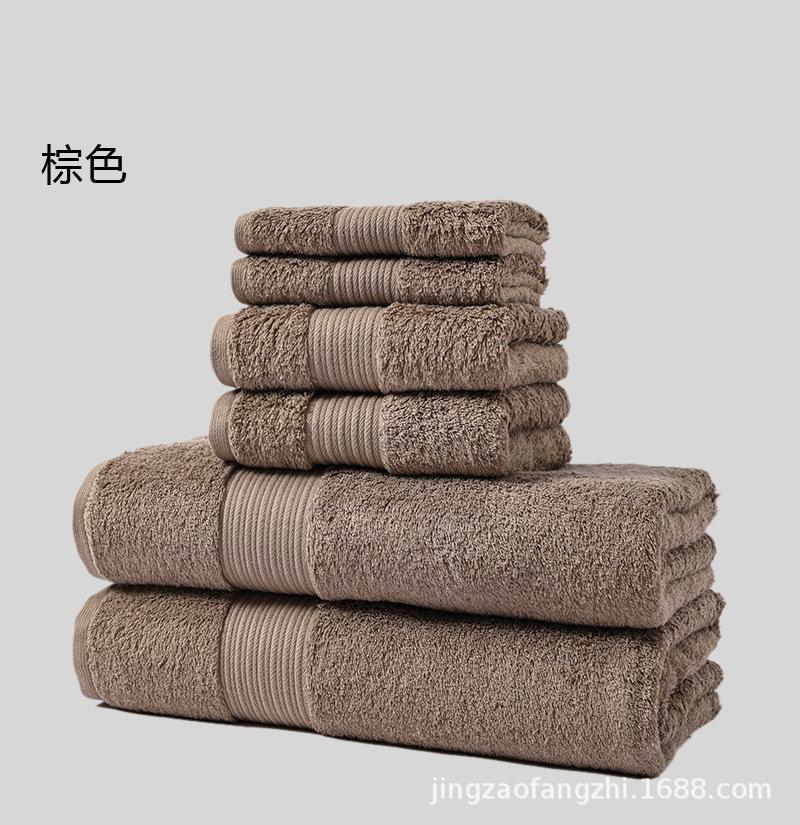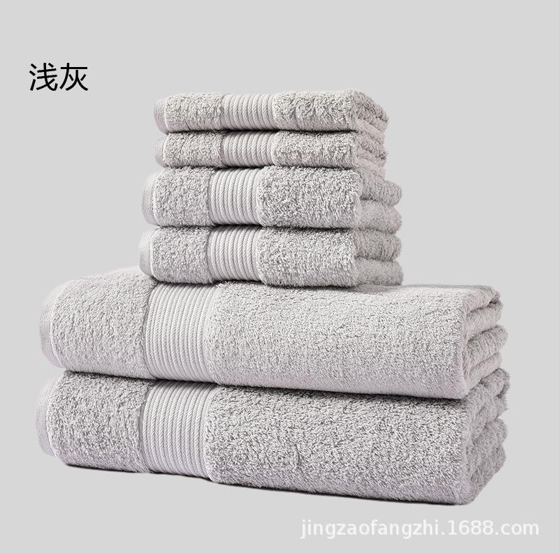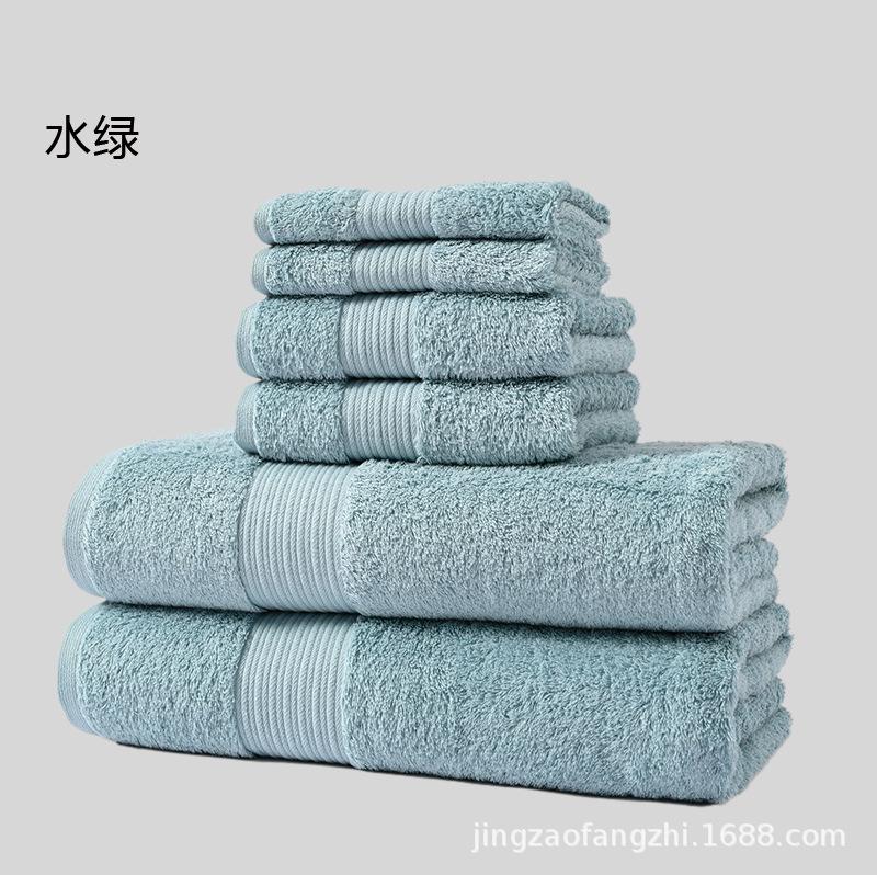 Toalla de algodón, toalla cuadrada, toalla de baño, juego de seis piezas de algodón peinado de fibra larga, toalla facial acolchada de clase A, suministro transfronterizo al por mayor