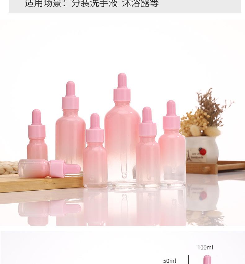 Venta al por mayor de fábrica botella gotero de 10 ml rosa degradado para aceite esencial, subenvase cosmético, botella para loción, botella subenvase para esencia de 5 ml