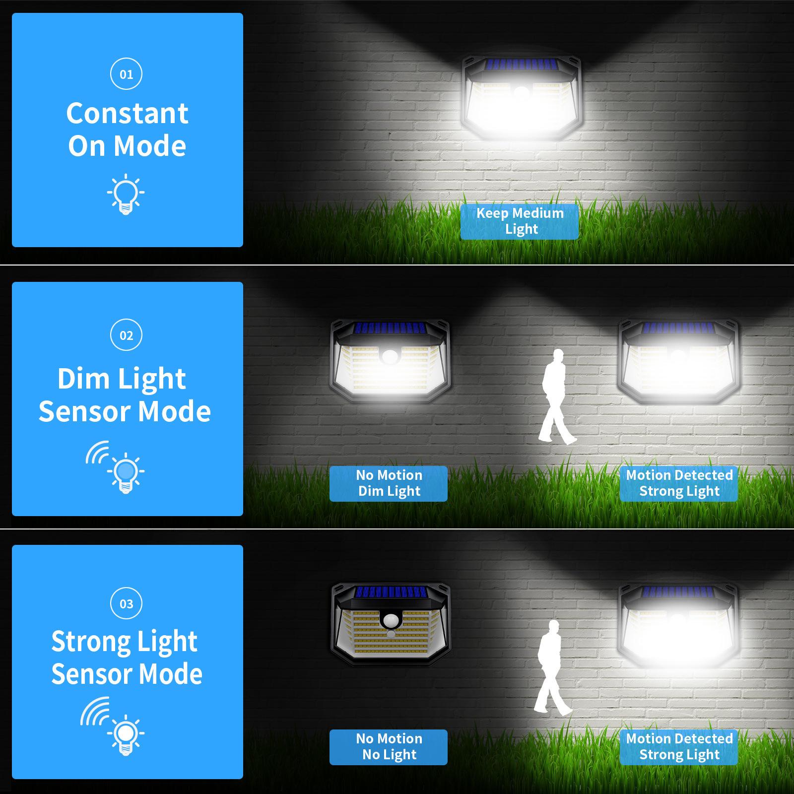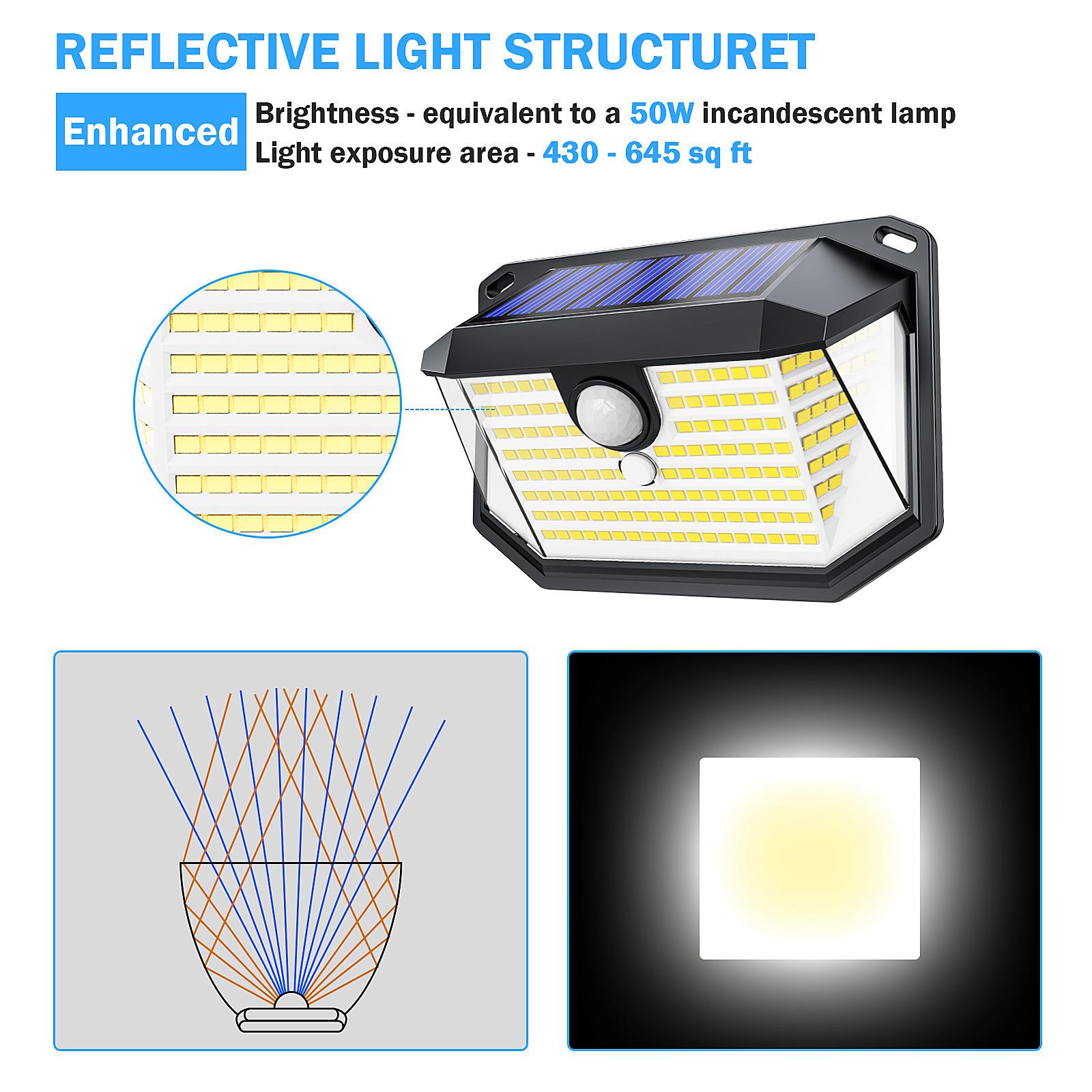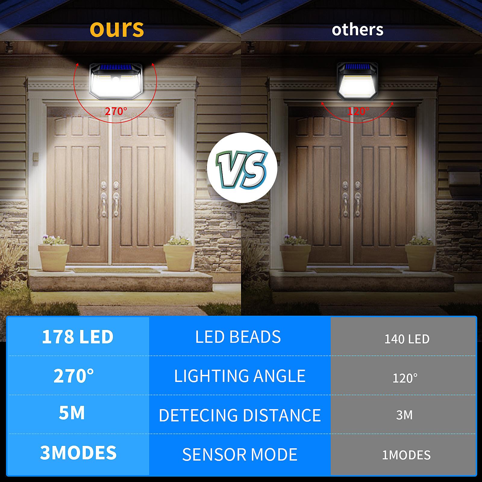 Lámpara solar para exteriores con jardín transfronterizo, lámpara de pared para garaje, 178 LED/238 bicolor, protección para exteriores con detección de movimiento.