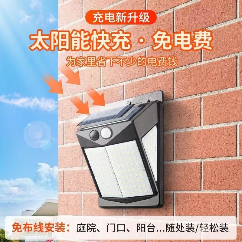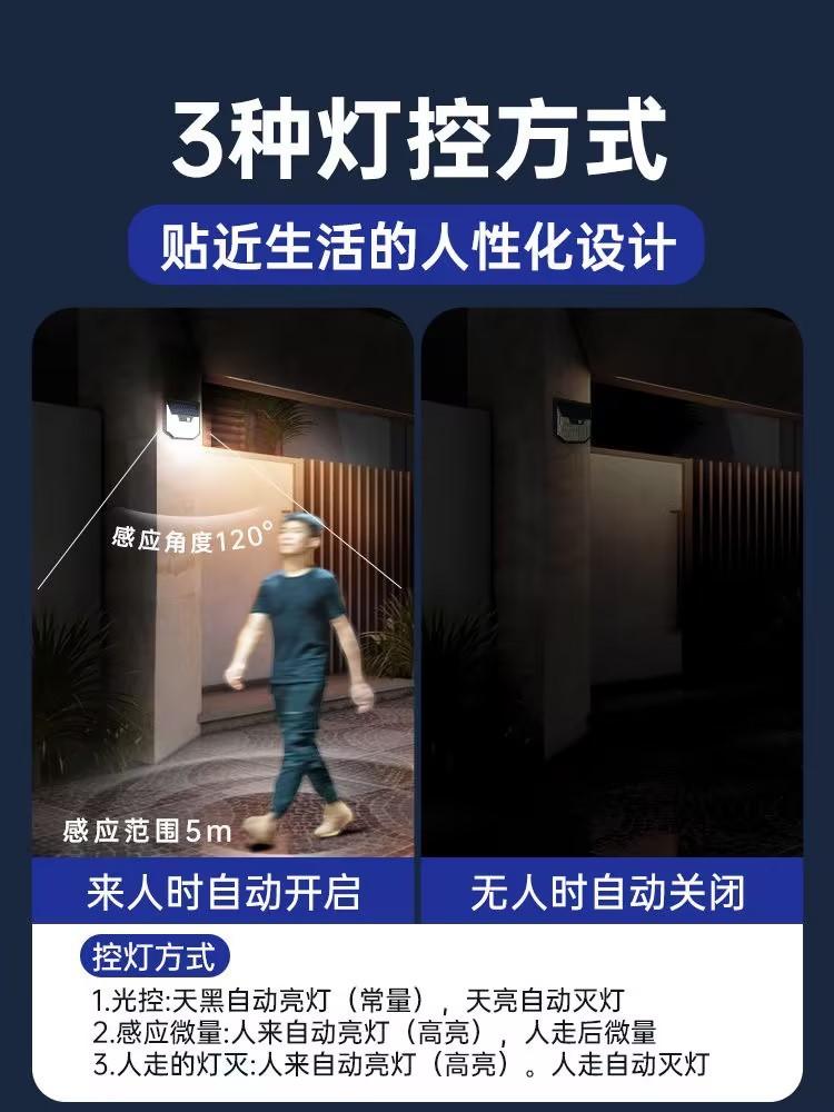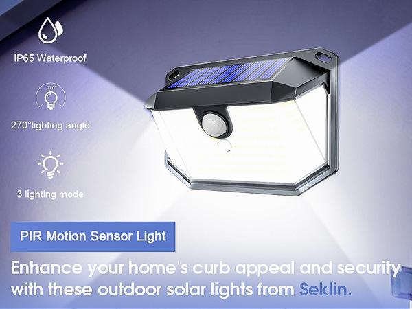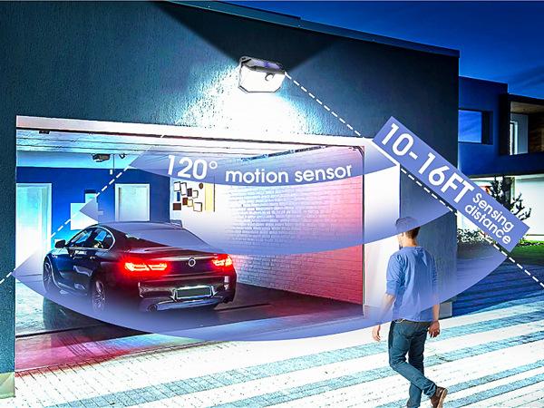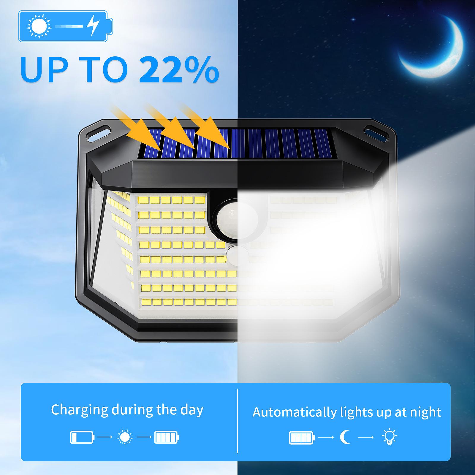 Lámpara solar para exteriores con jardín transfronterizo, lámpara de pared para garaje, 178 LED/238 bicolor, protección para exteriores con detección de movimiento.