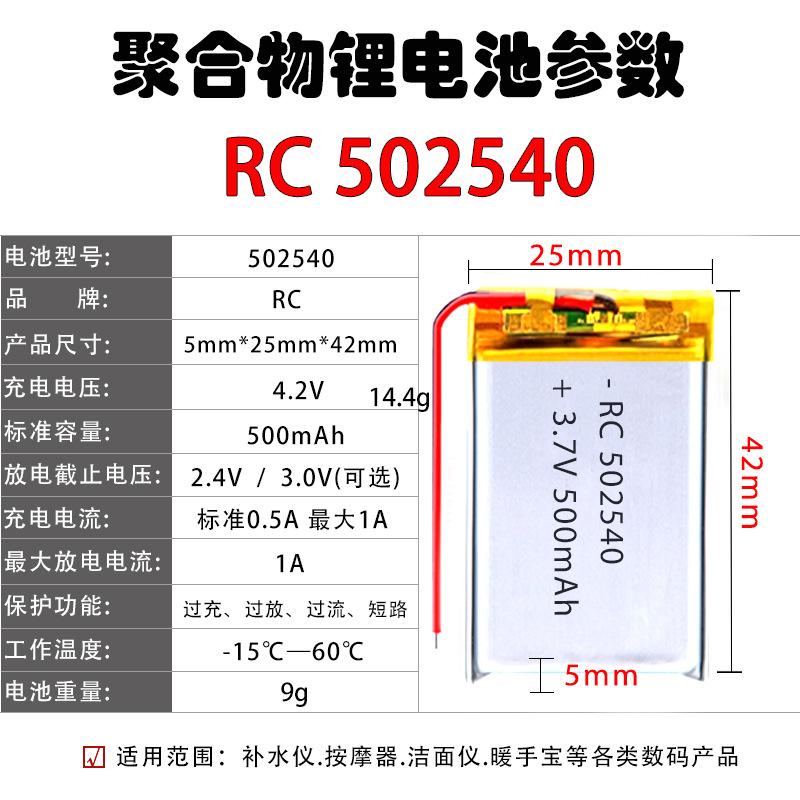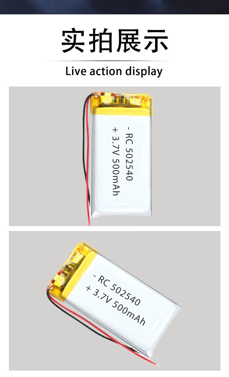 Batería de polímero de litio 502540 de 500 mAh para lámparas de juego, máquina de juego digital de educación temprana, instrumento de belleza, batería recargable de 3,7 V