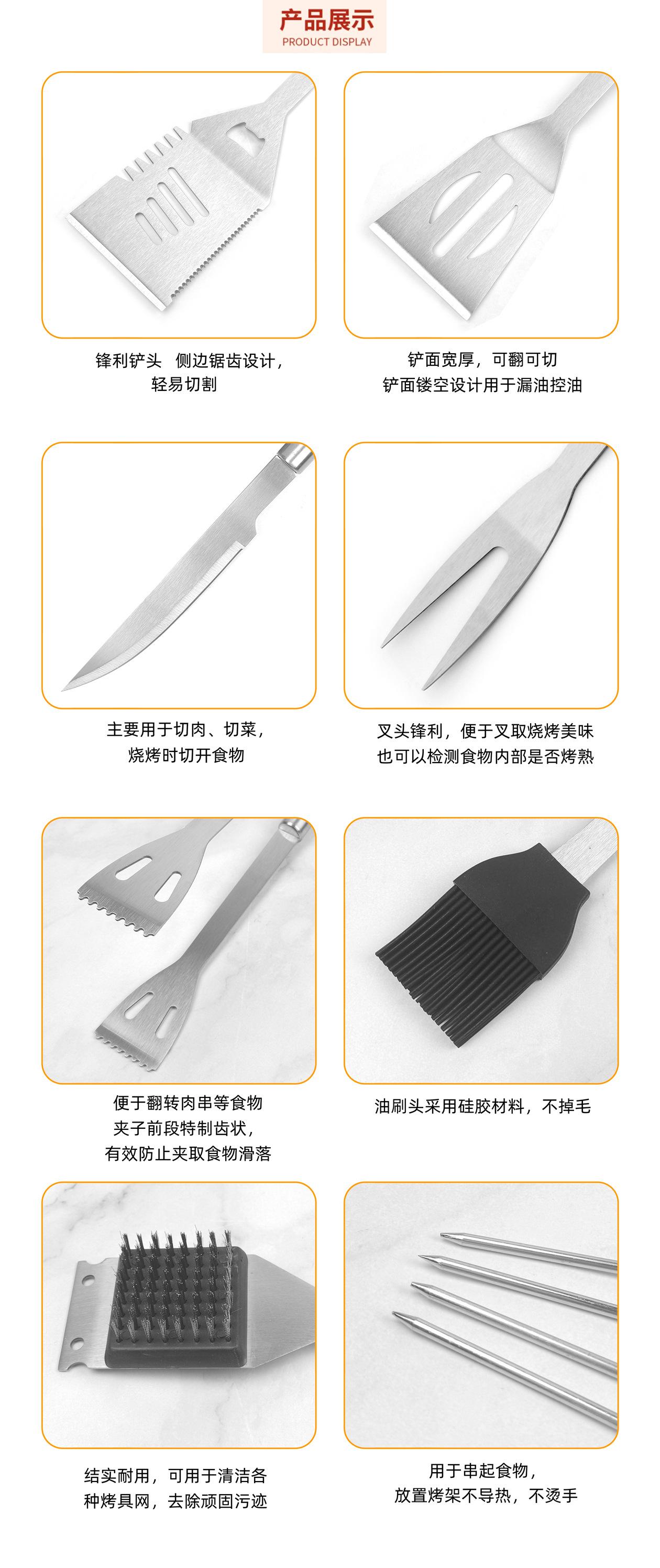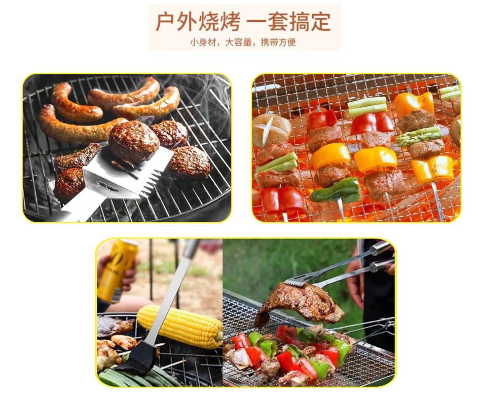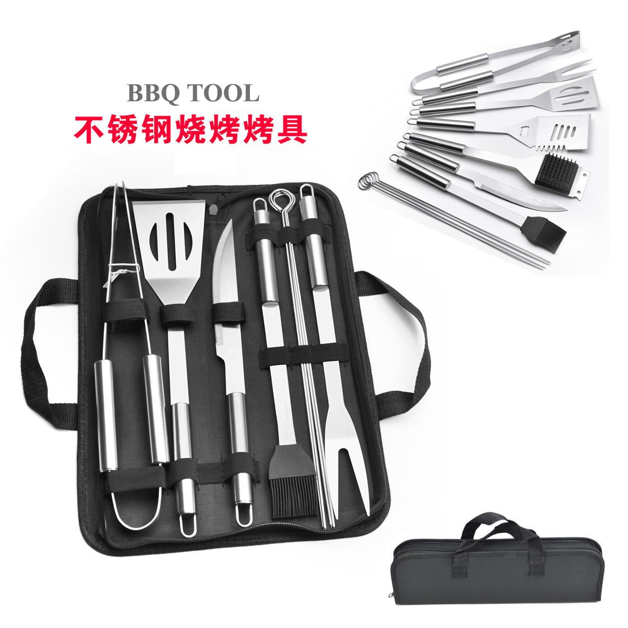 Juego de barbacoa de acero inoxidable para exteriores, ideal para el hogar, bolso de mano portátil para exteriores, herramienta combinada para barbacoa