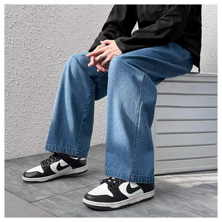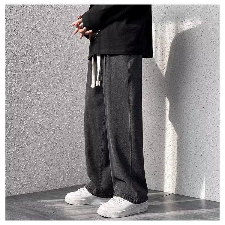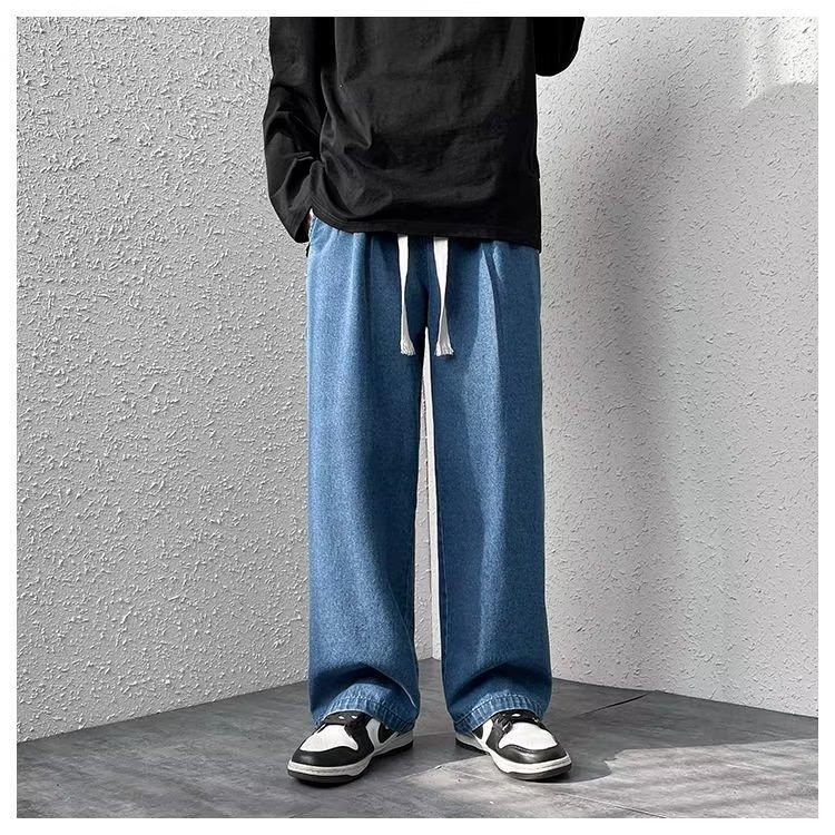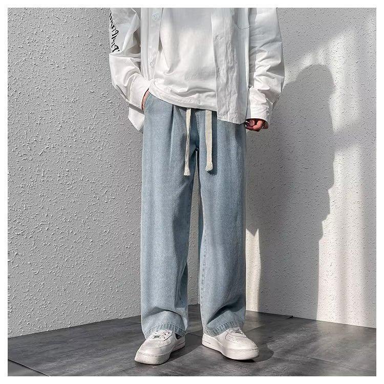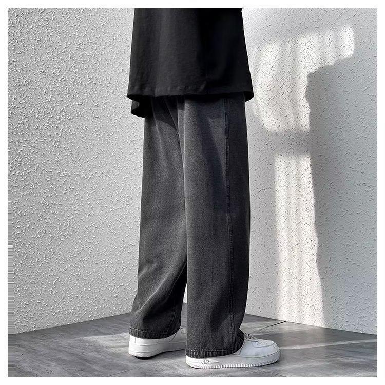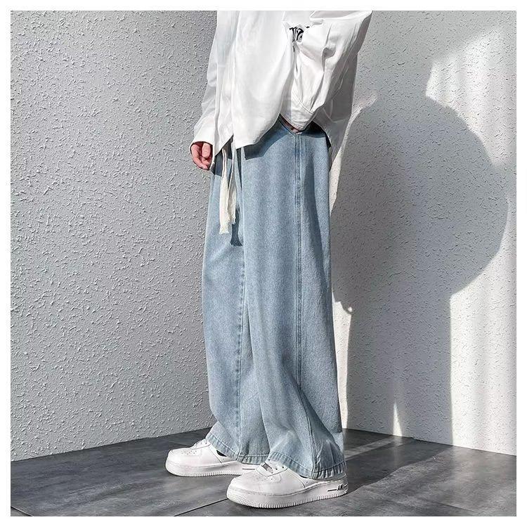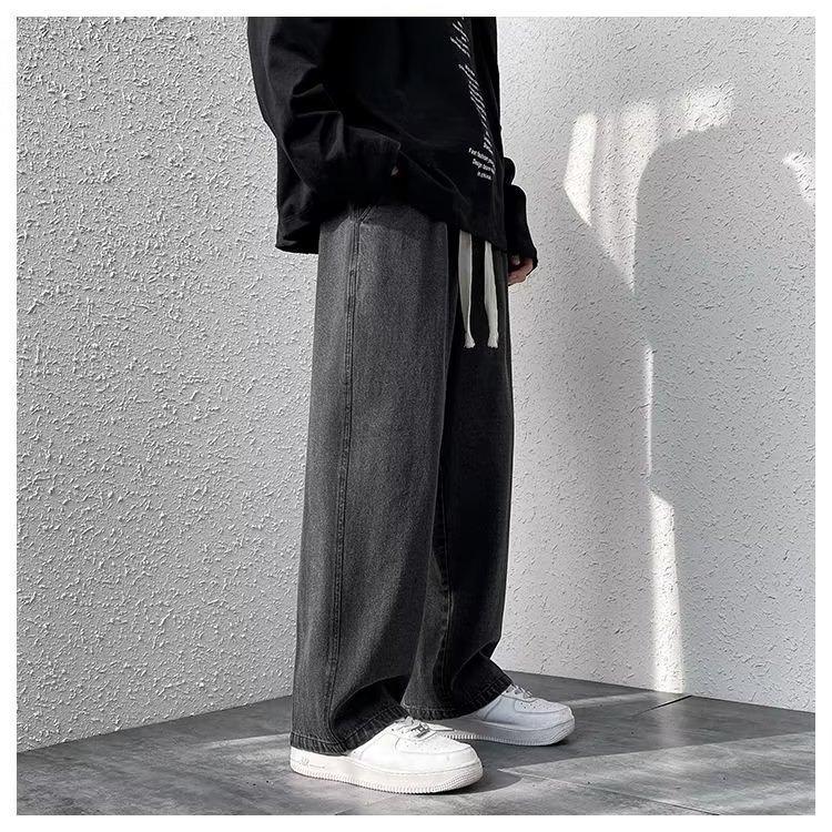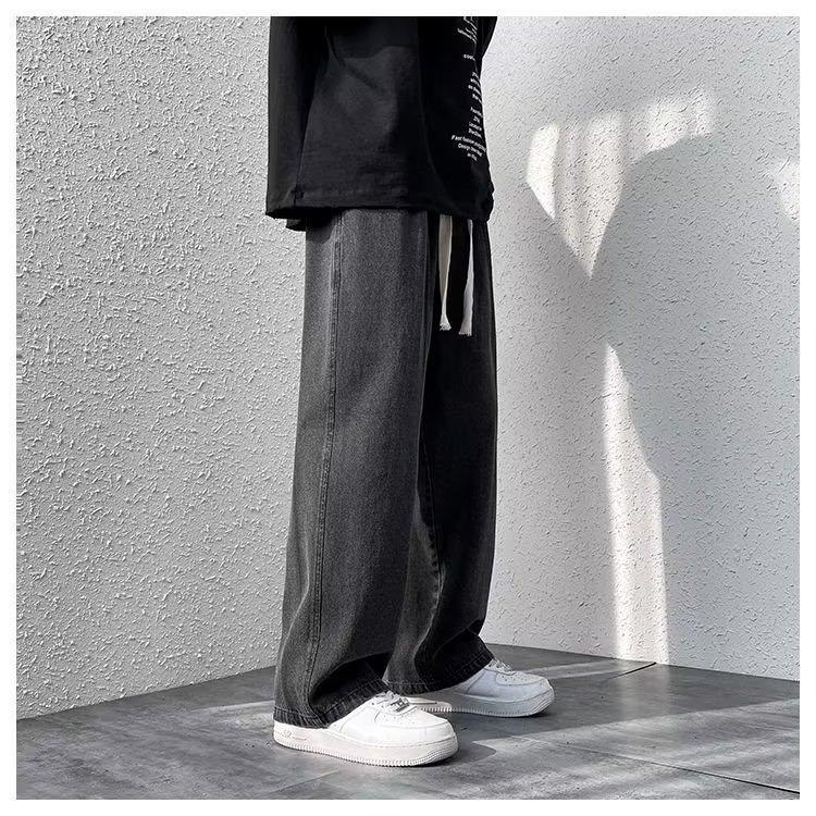 Pantalones de calle alta de moda para hombre, pantalones vaqueros de primavera y otoño, pantalones anchos holgados retro americanos, marca de moda Ruan, pantalones rectos atractivos