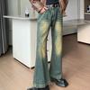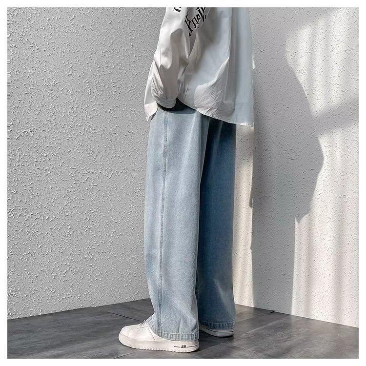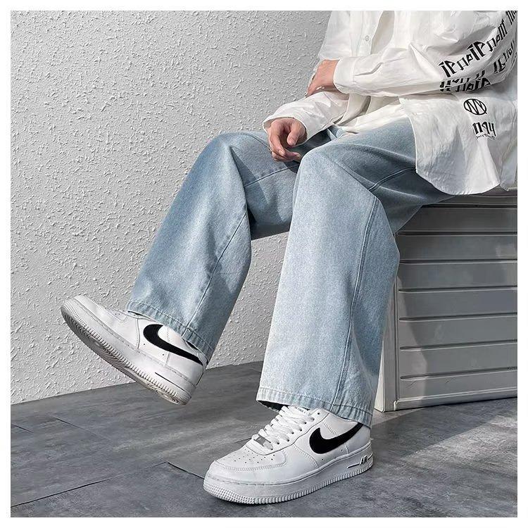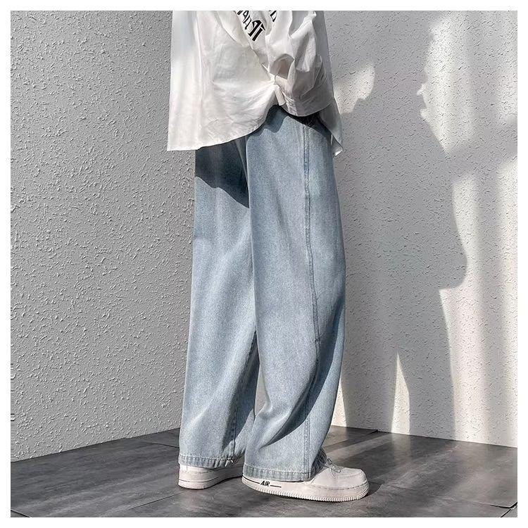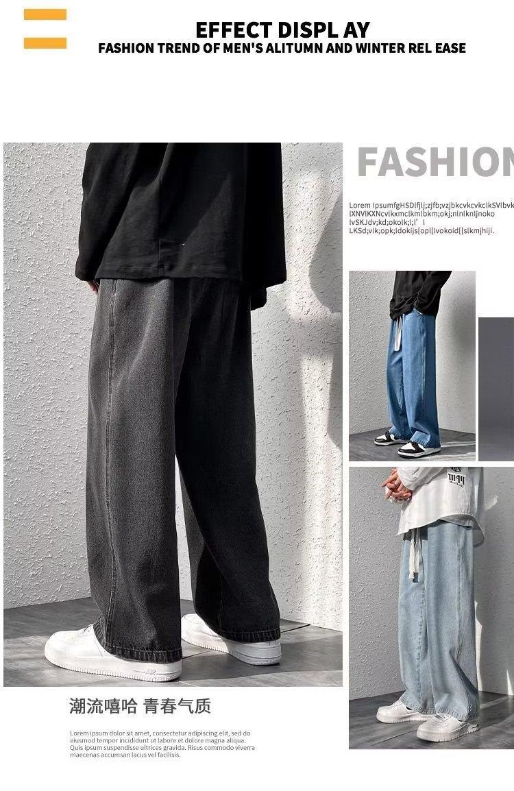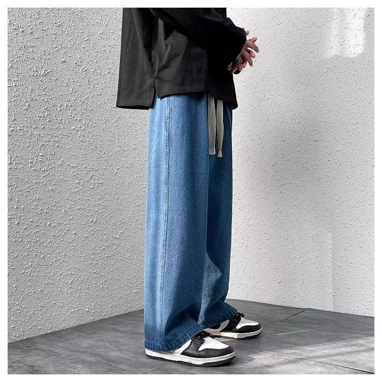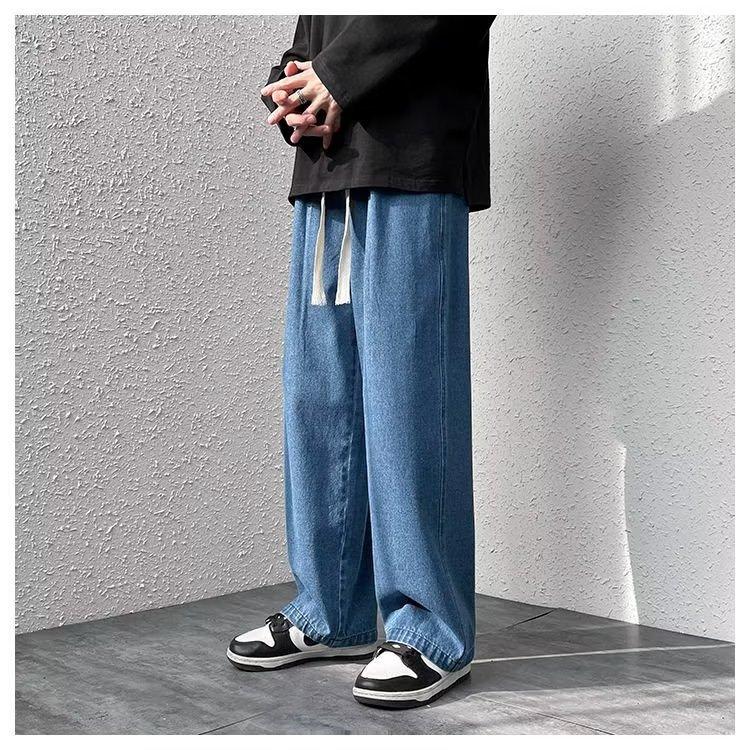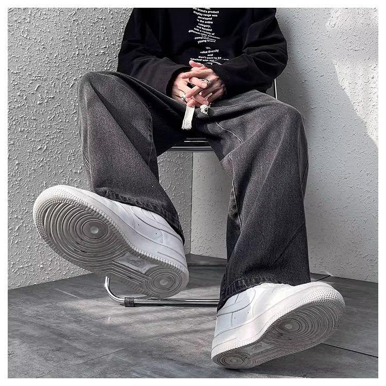 Pantalones de calle alta de moda para hombre, pantalones vaqueros de primavera y otoño, pantalones anchos holgados retro americanos, marca de moda Ruan, pantalones rectos atractivos