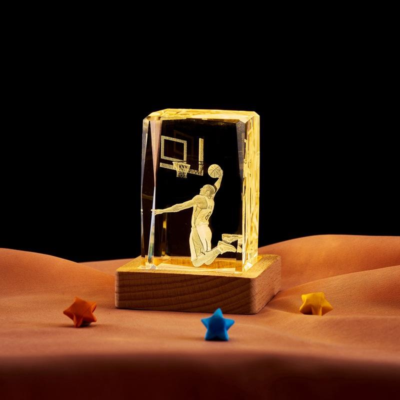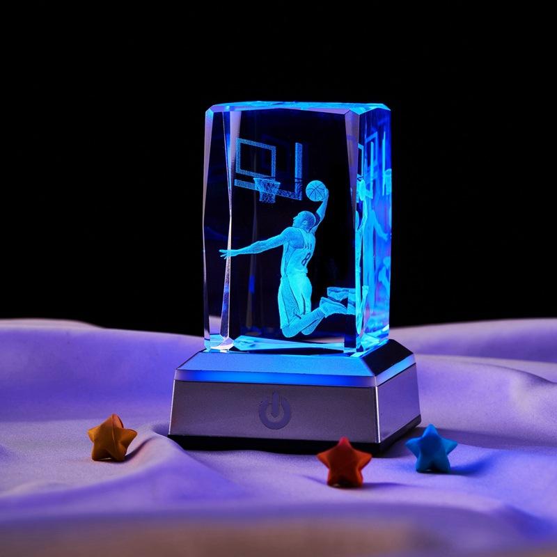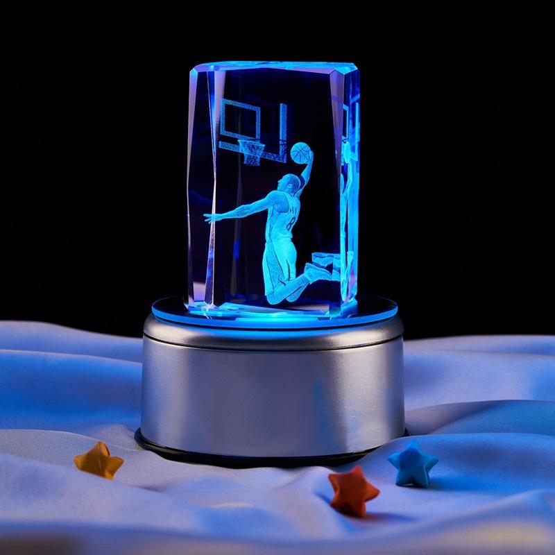 Venta al por mayor transfronteriza Cubo de cristal con grabado láser 3D estéreo Kobe No.8 tratamiento de luz cálida luz nocturna adornos venta al por mayor