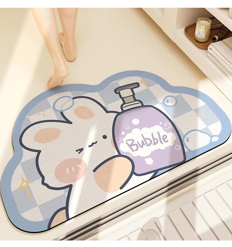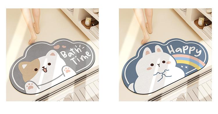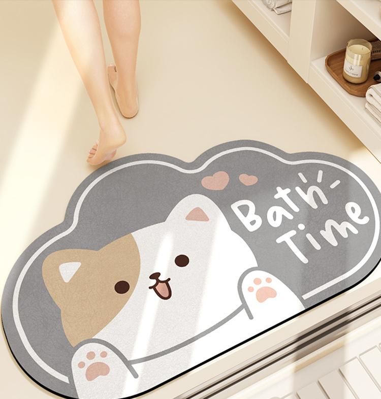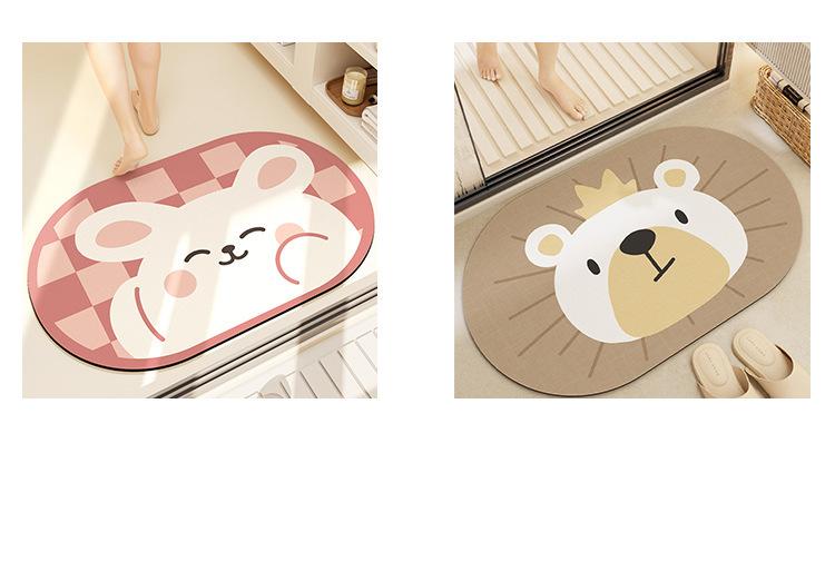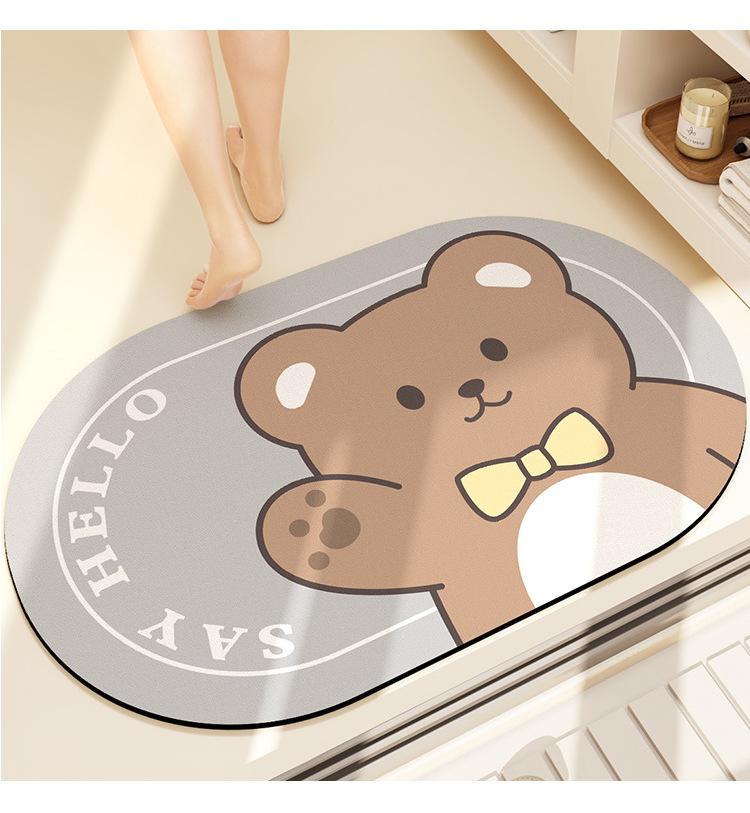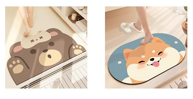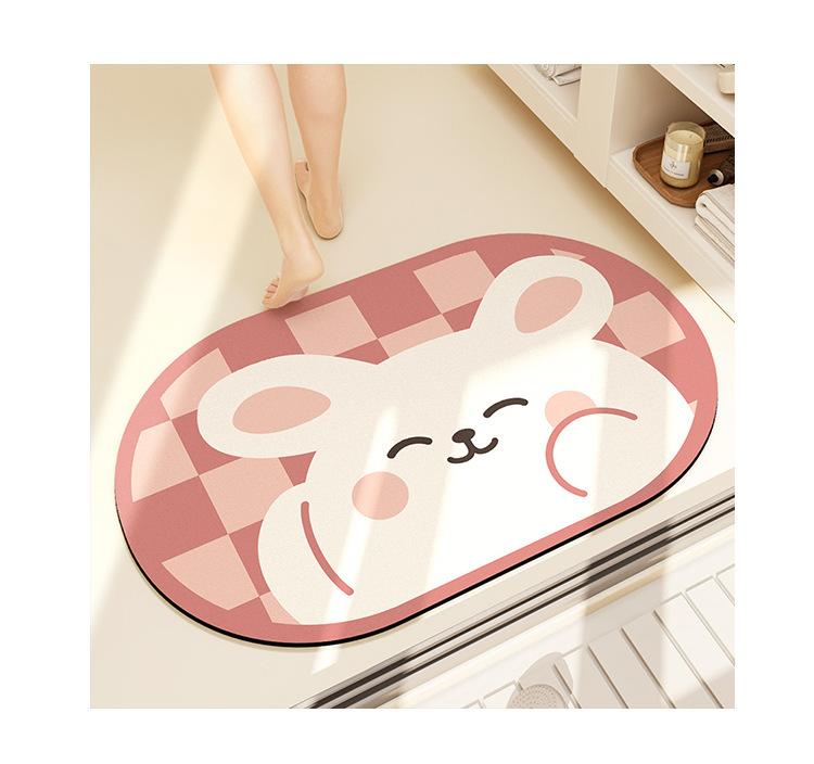 Tapete de dibujos animados de barro de diatomeas para el hogar, baño, absorbente de agua, antideslizante, resistente a la suciedad, de secado rápido, resistente al desgaste, tapete absorbente de agua para la puerta del baño