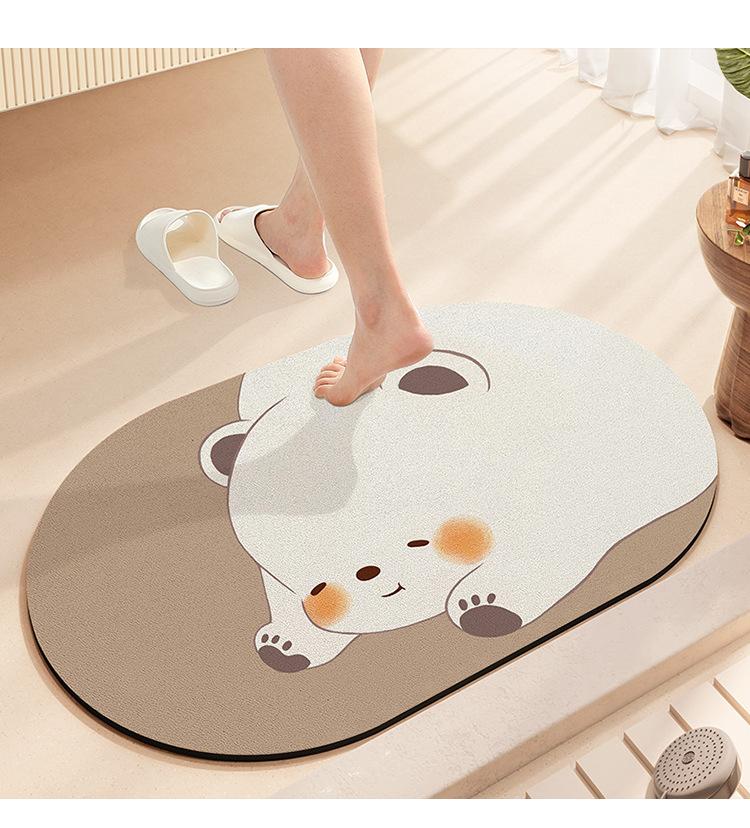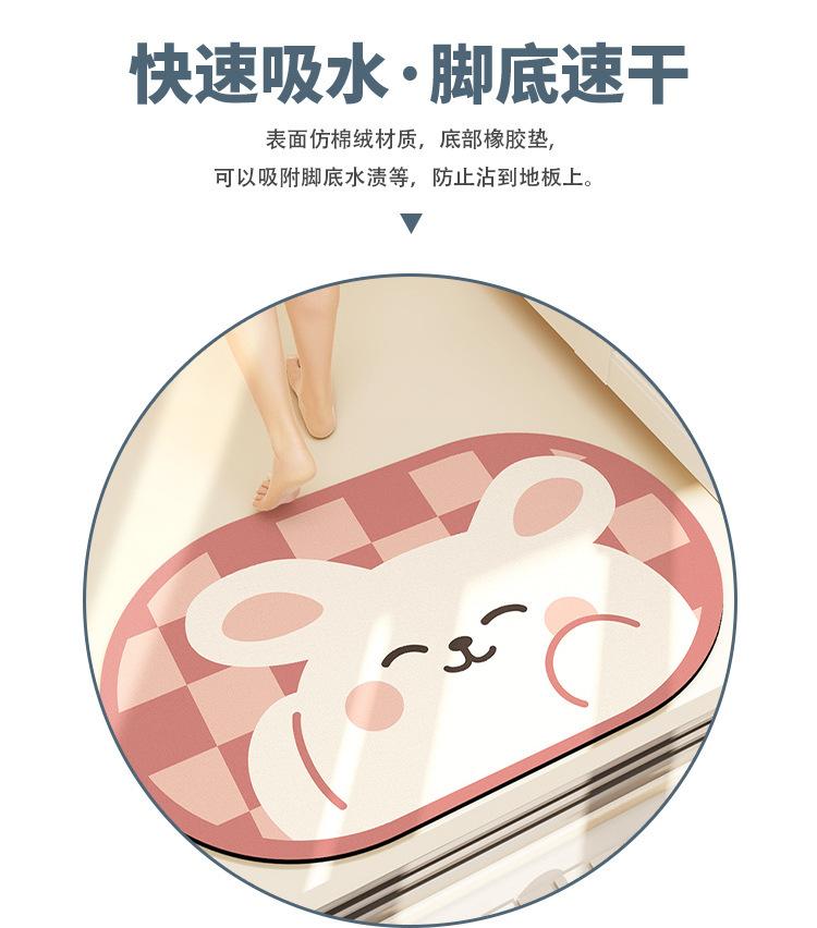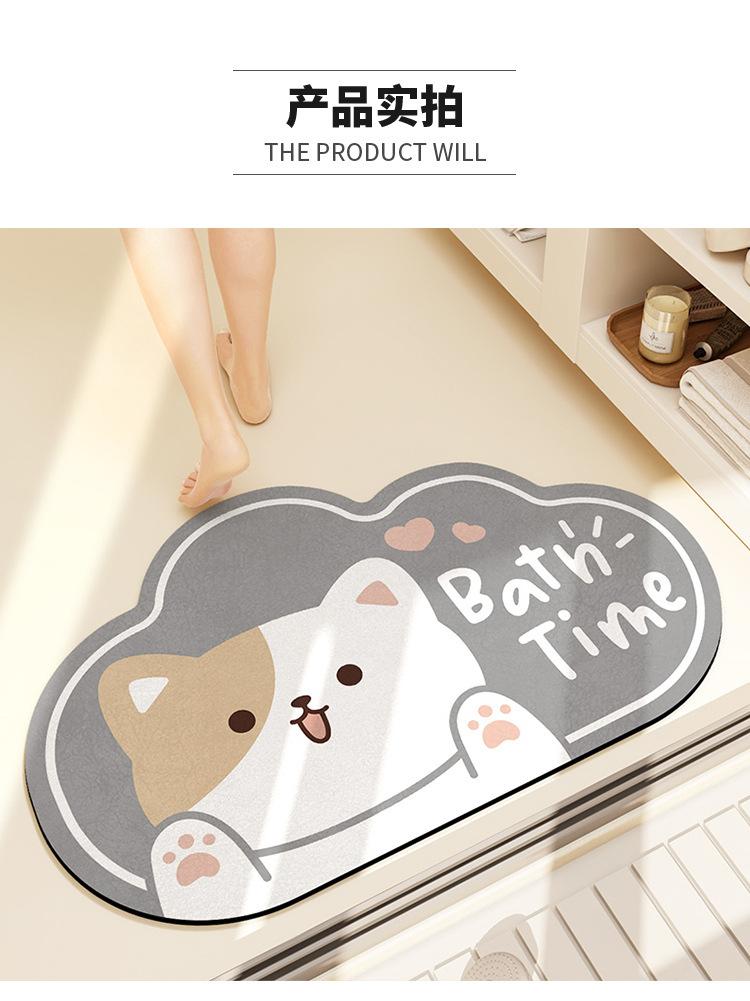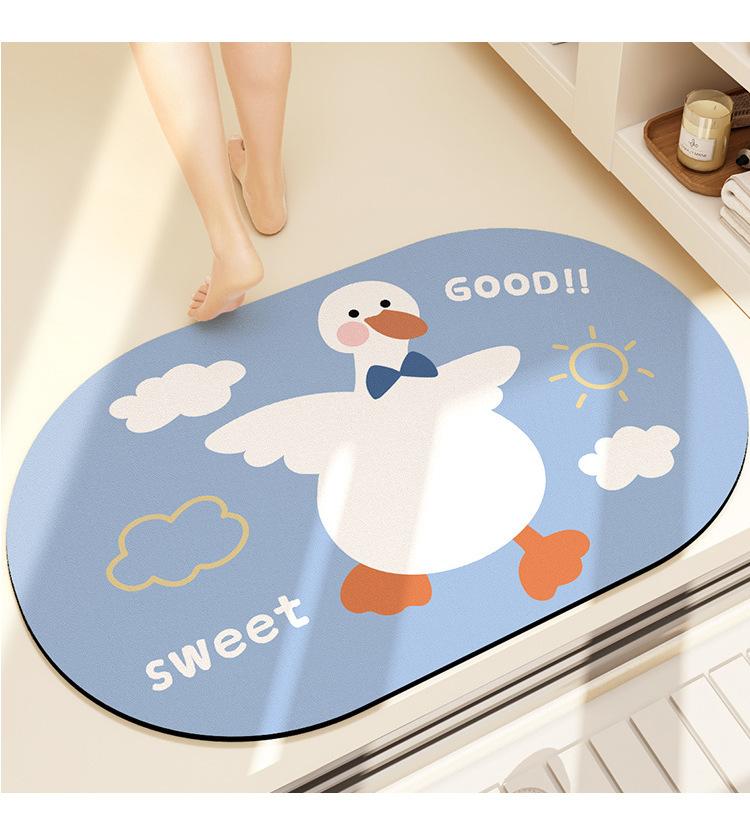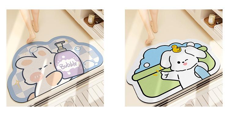 Tapete de dibujos animados de barro de diatomeas para el hogar, baño, absorbente de agua, antideslizante, resistente a la suciedad, de secado rápido, resistente al desgaste, tapete absorbente de agua para la puerta del baño