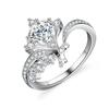 Anillo de diamantes Mosan de 5 quilates, plata de ley 925, clásico, de cuatro garras, para mujer, con doble aparejo, anillo de diamantes, anillo de bodas con forma de huevo de paloma.