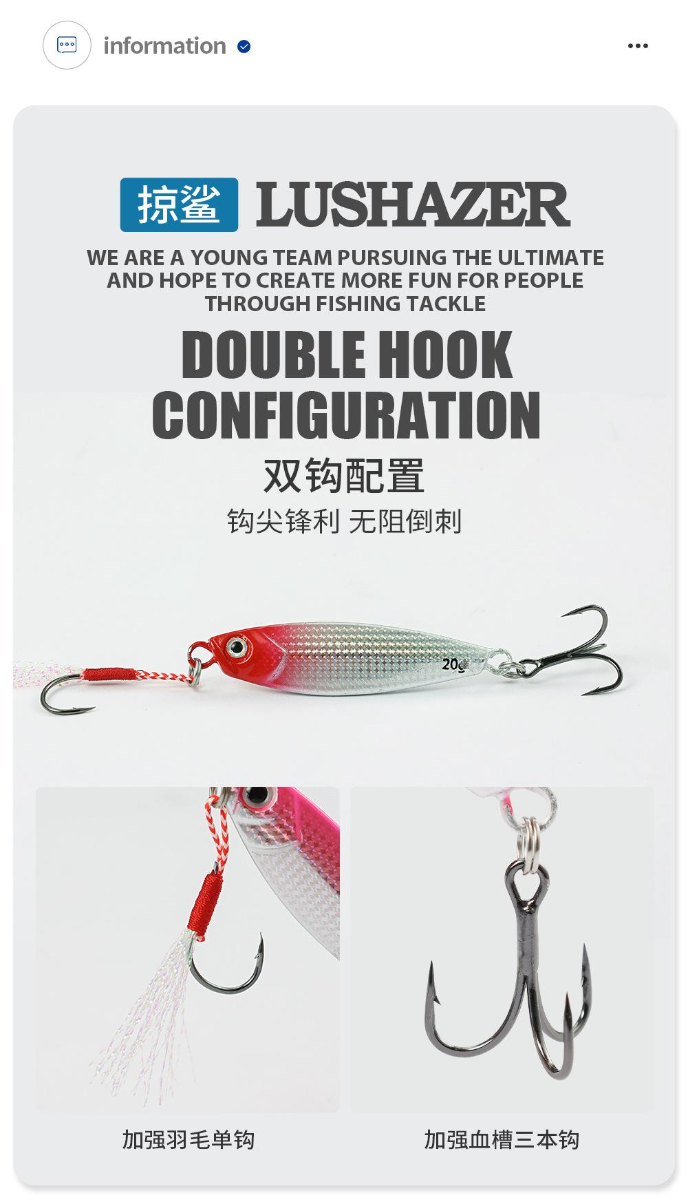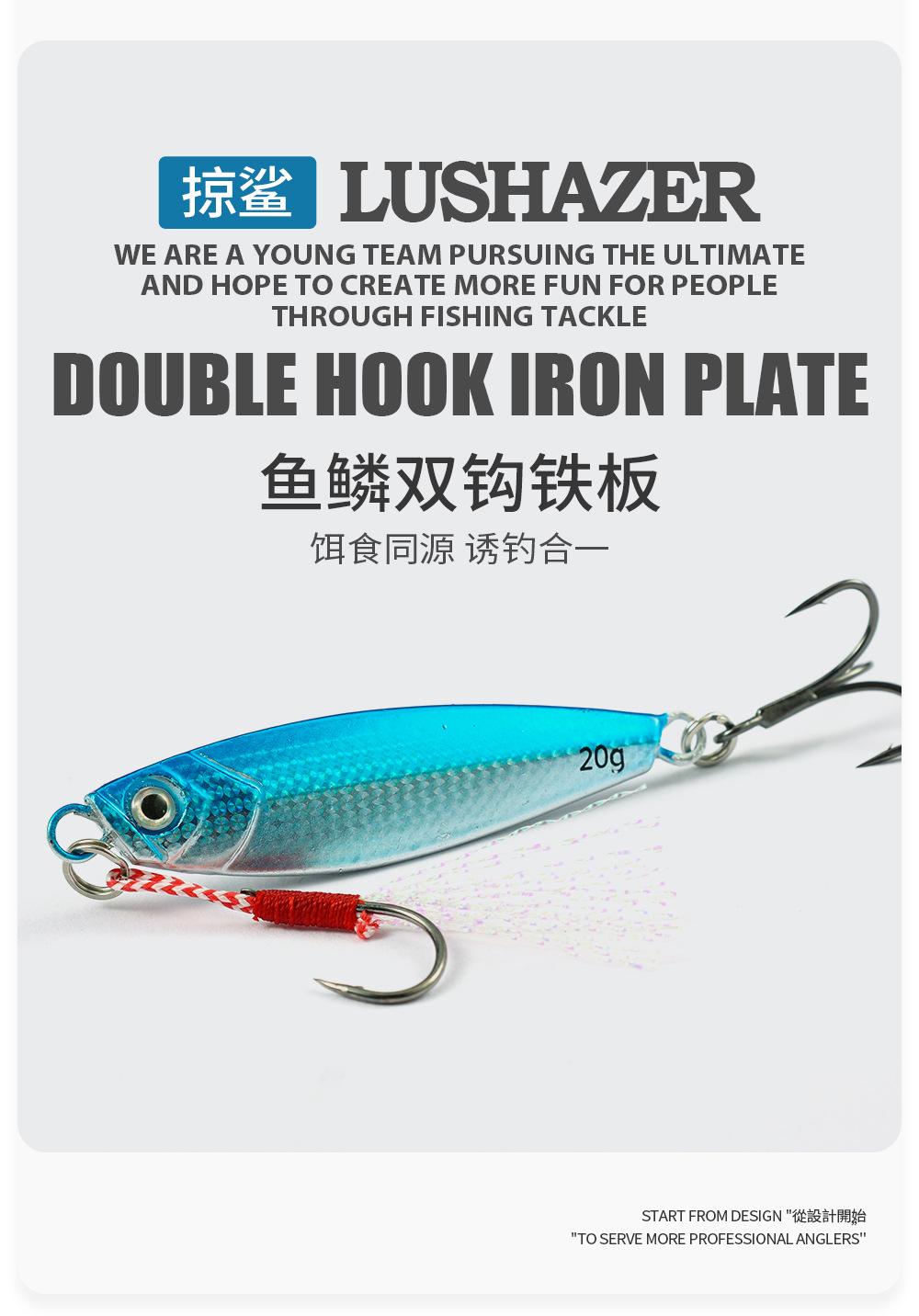 Agarra-tiburones | Anzuelos dobles en la placa de hierro con anzuelos reforzados para el lance a larga distancia del señuelo de placa de hierro