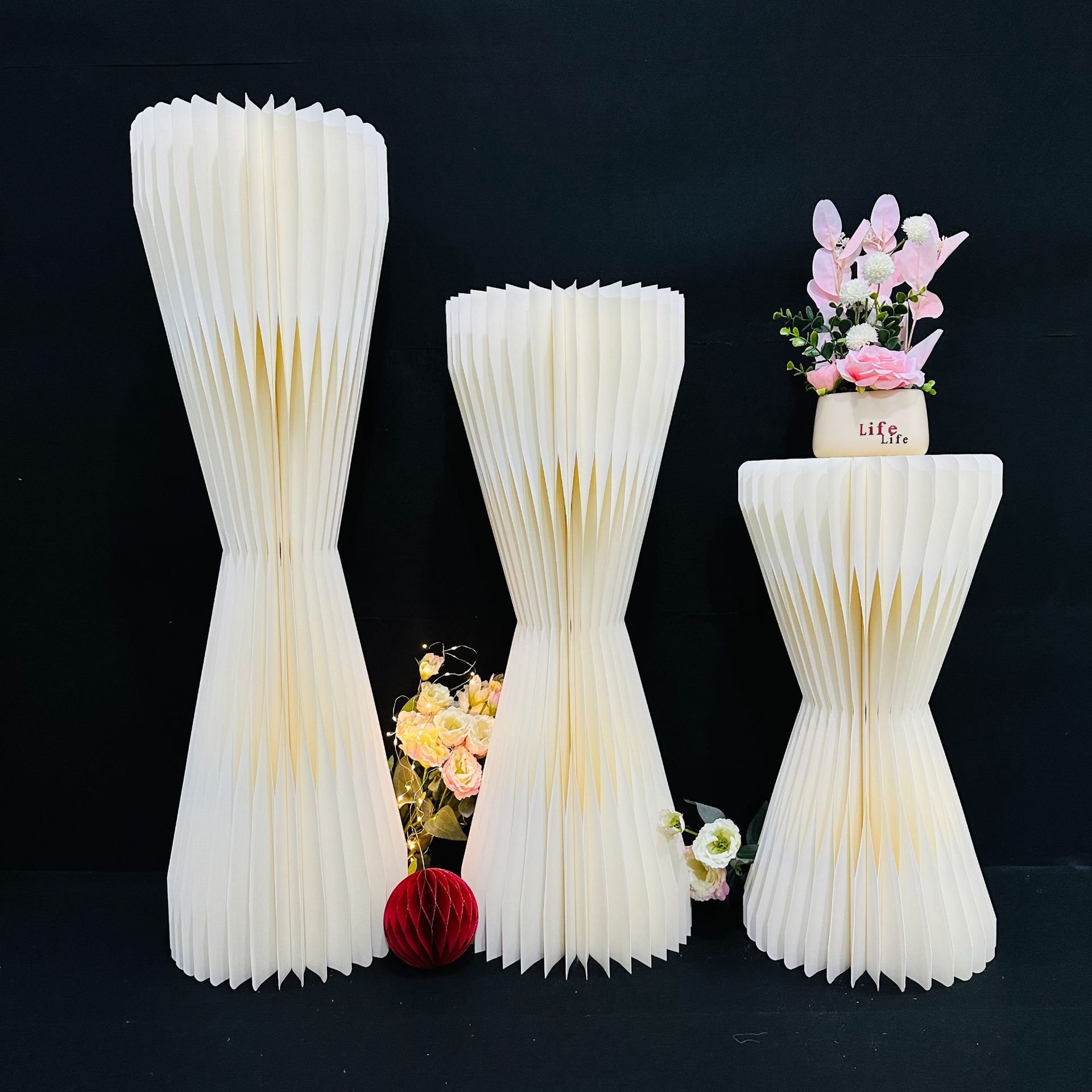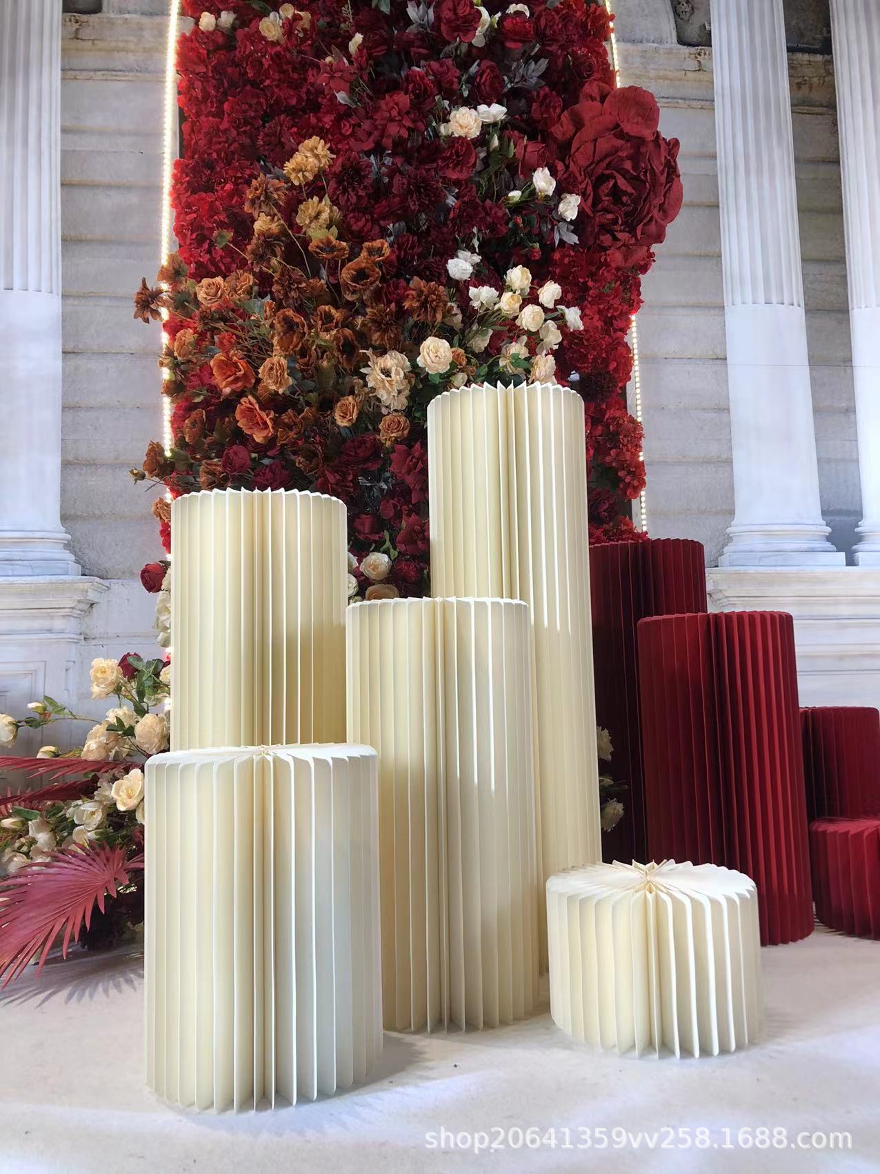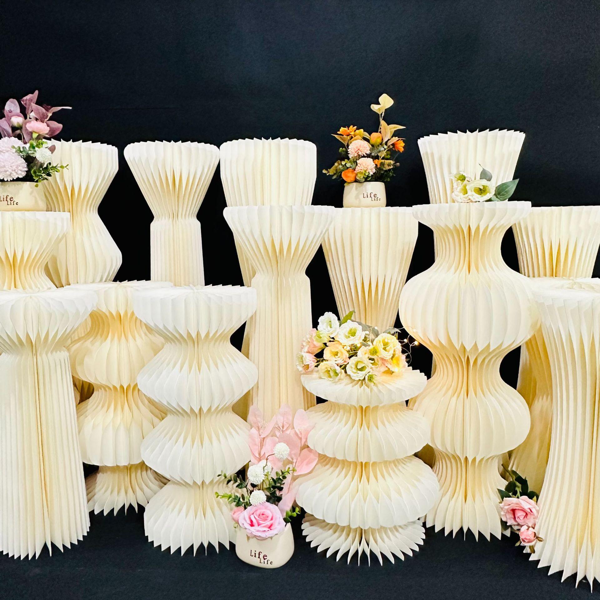 Mesa de Postres para Fiesta de Cumpleaños Columna Romana Guía de Camino Plegable Columna de Papel Nido de Abeja Escenario de Boda Ventana Soporte de Exhibición Origami