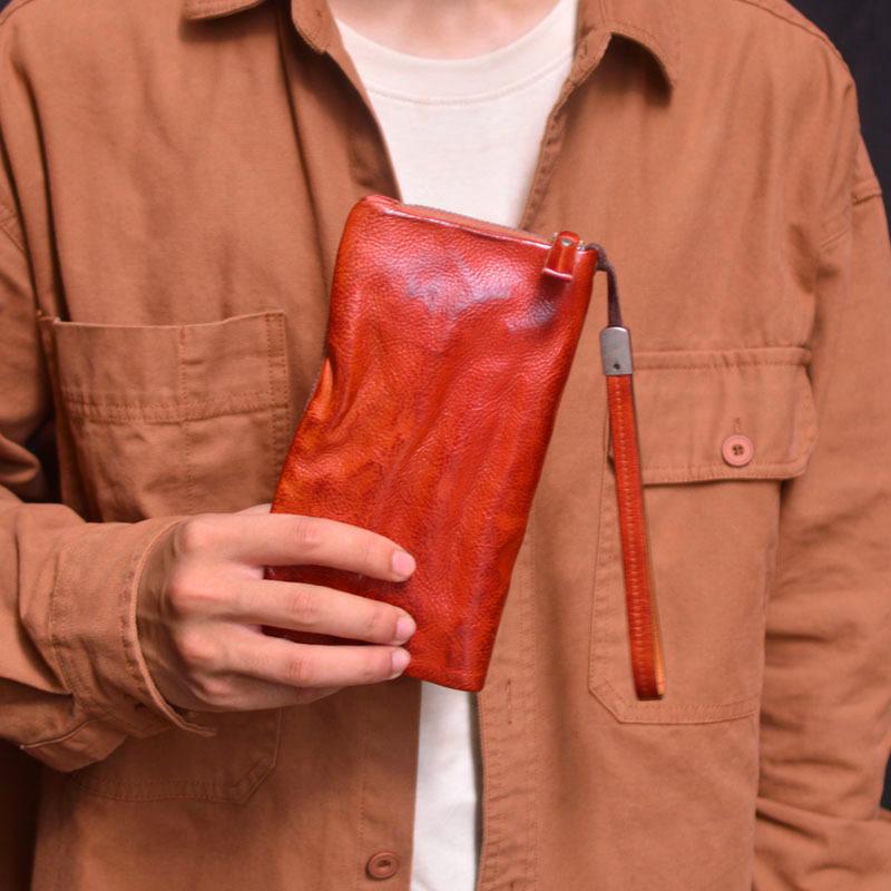 Cartera de hombre de cuero largo con cremallera, tarjetero multifunción, piel de vaca, nueva cartera de hombre de gran capacidad 2023