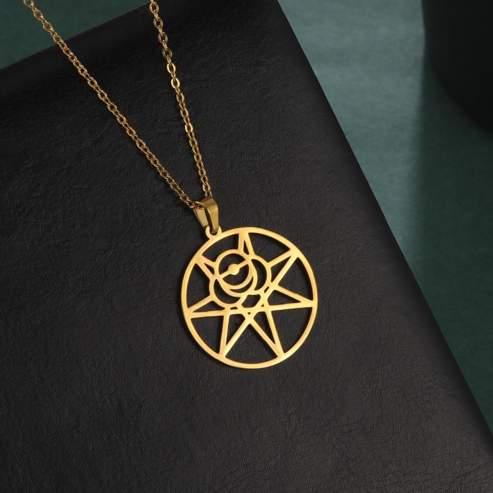 Collar de acero de titanio transfronterizo europeo y americano, tendencia de acero inoxidable, anillo hueco, triángulo, colgante de algodón, accesorios para collar