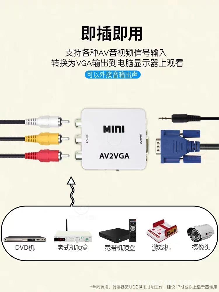 Convertidor de AV a VGA decodificador a monitor de computadora caja de red a TV Convertidor de AV a VGA