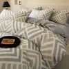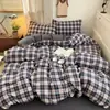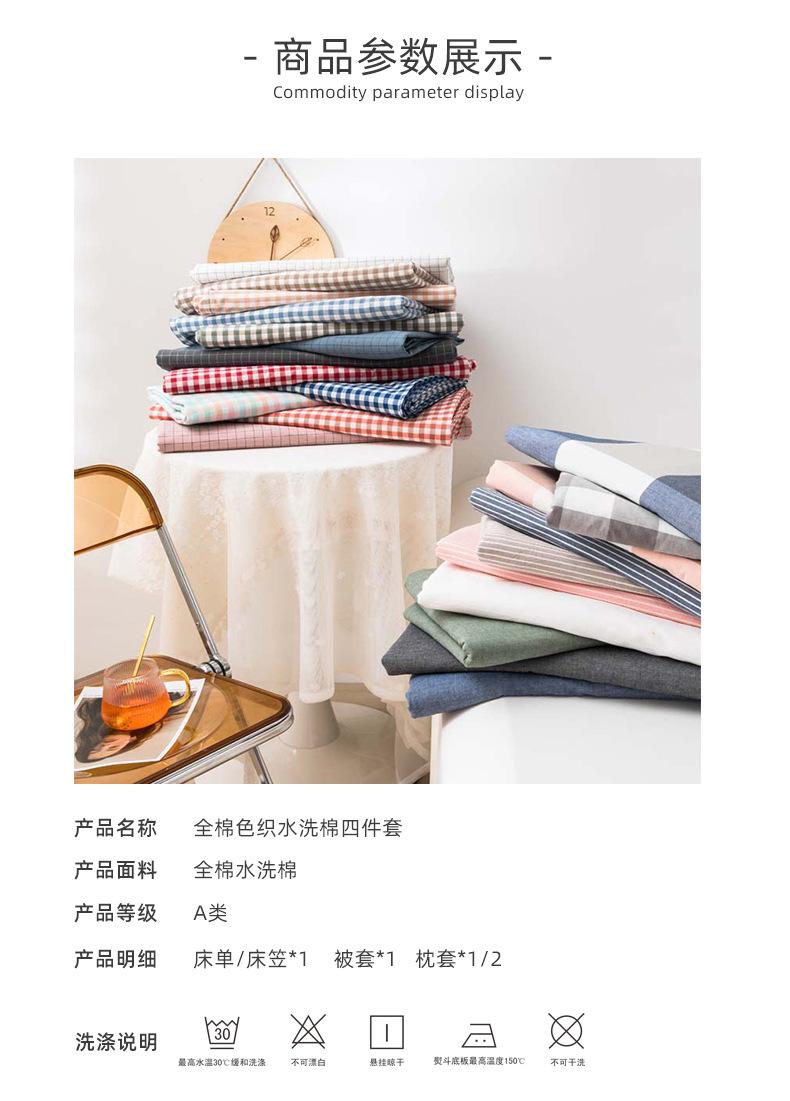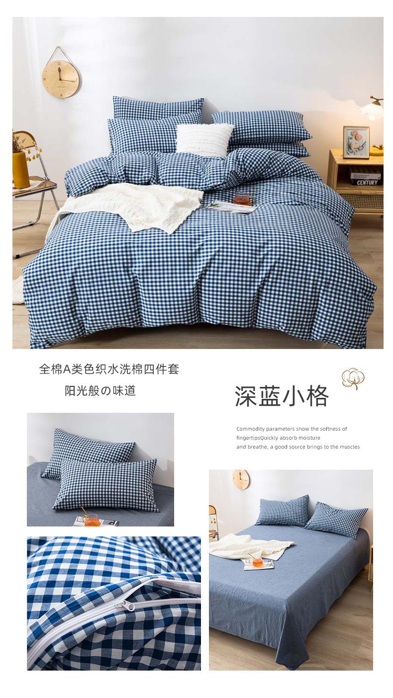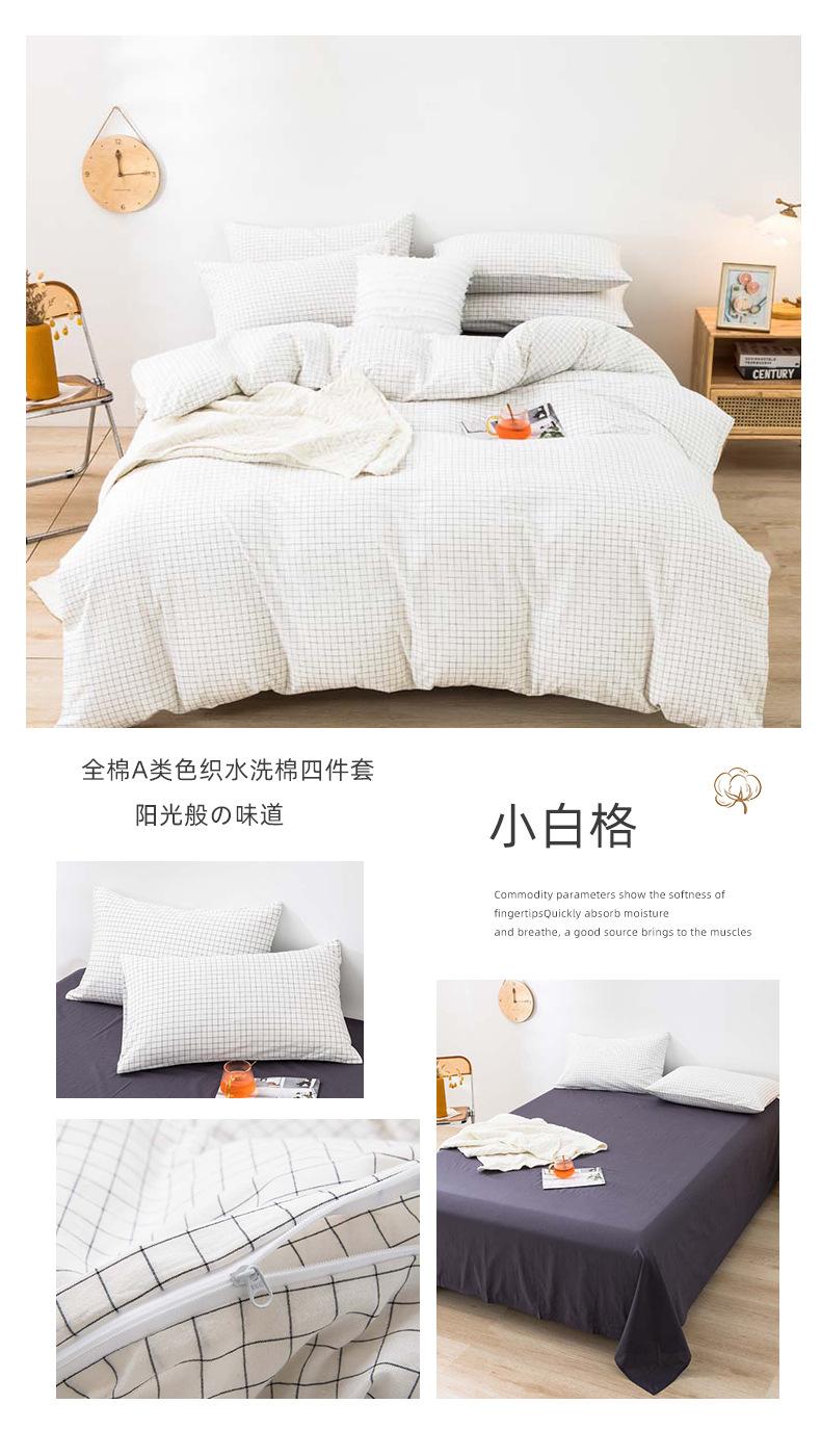 Clase a Algodón Puro 100% Algodón Lavado Juego de Cuatro Piezas para Cama, Juego de Tres Piezas de Sábana Ajustable Estilo Nórdico de Algodón Total, Estilo Ins