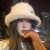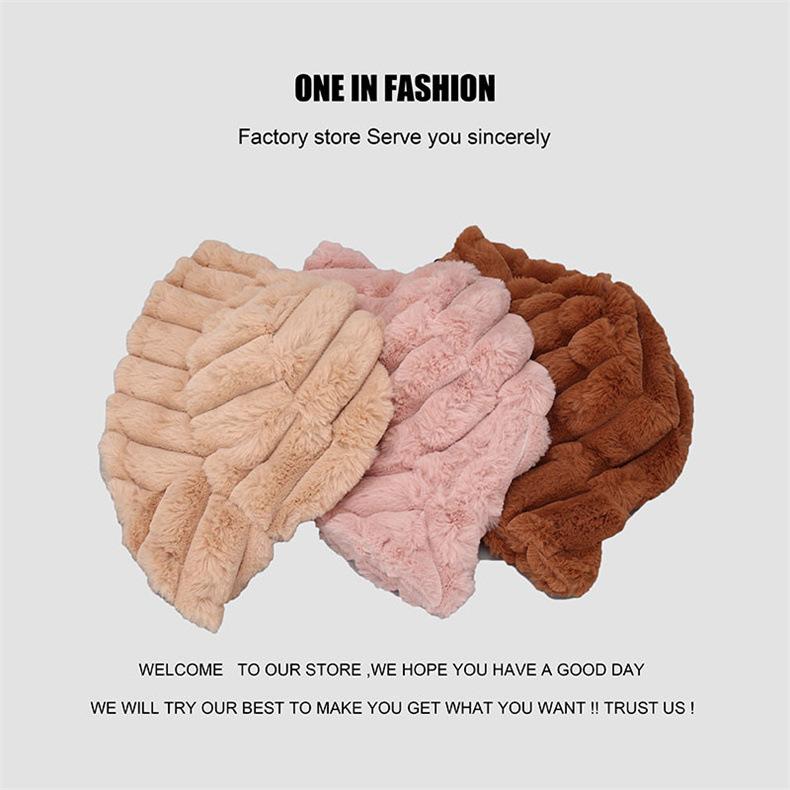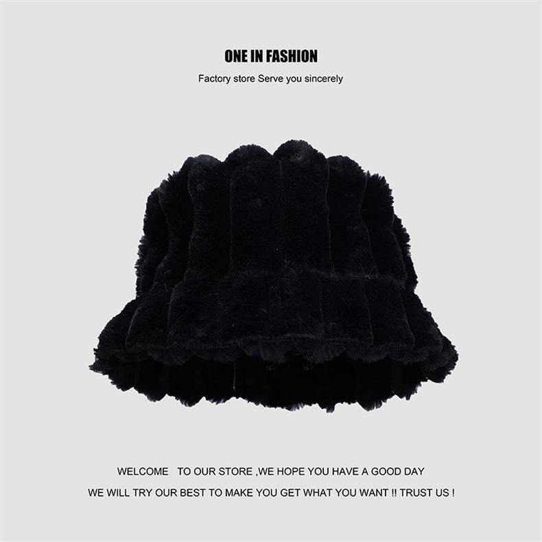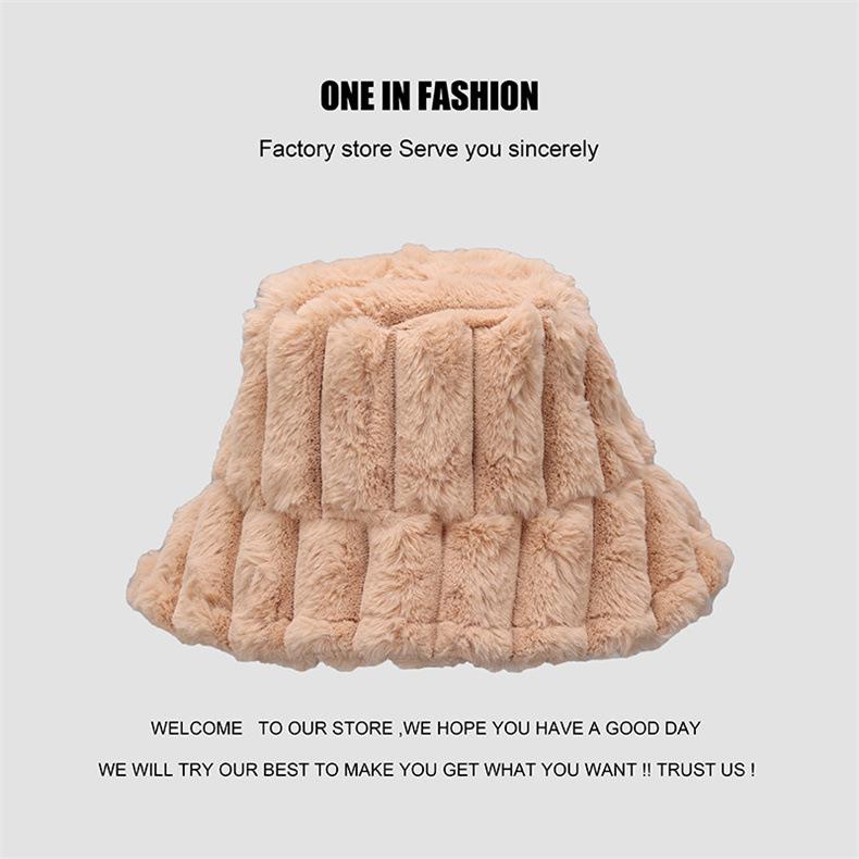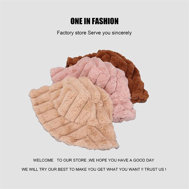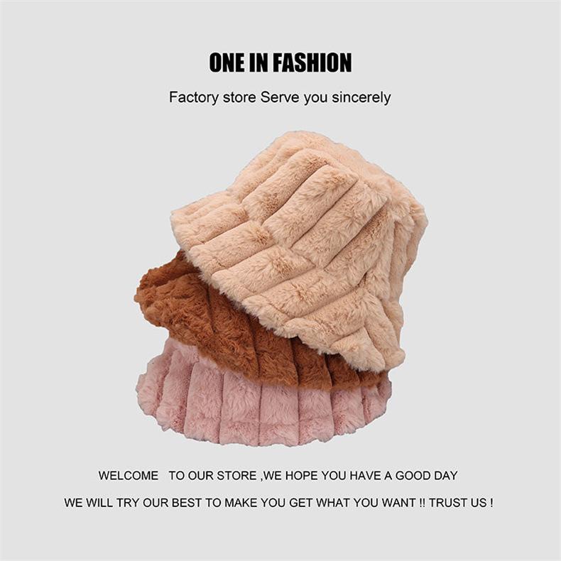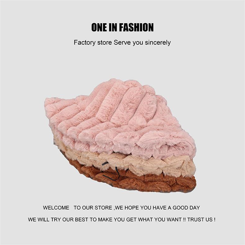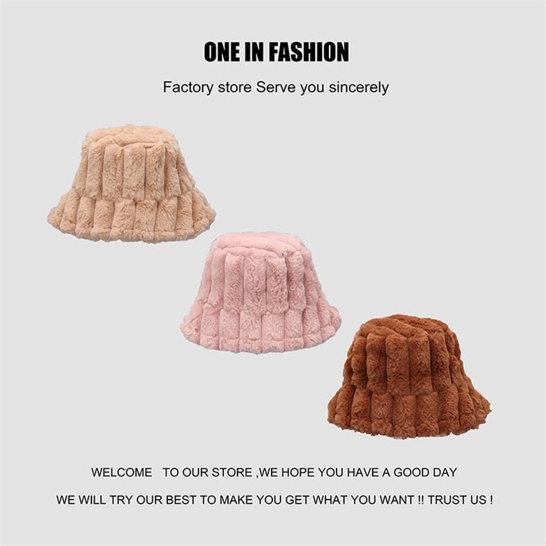 Sombrero para Mujer de Piel de Conejo a Rayas Combinable Sombrero de Cubeta Coreano para Enamorados Otoño e Invierno Nuevo Grueso a Prueba de Frío Cálido Sombrero de Pescador para Hombre