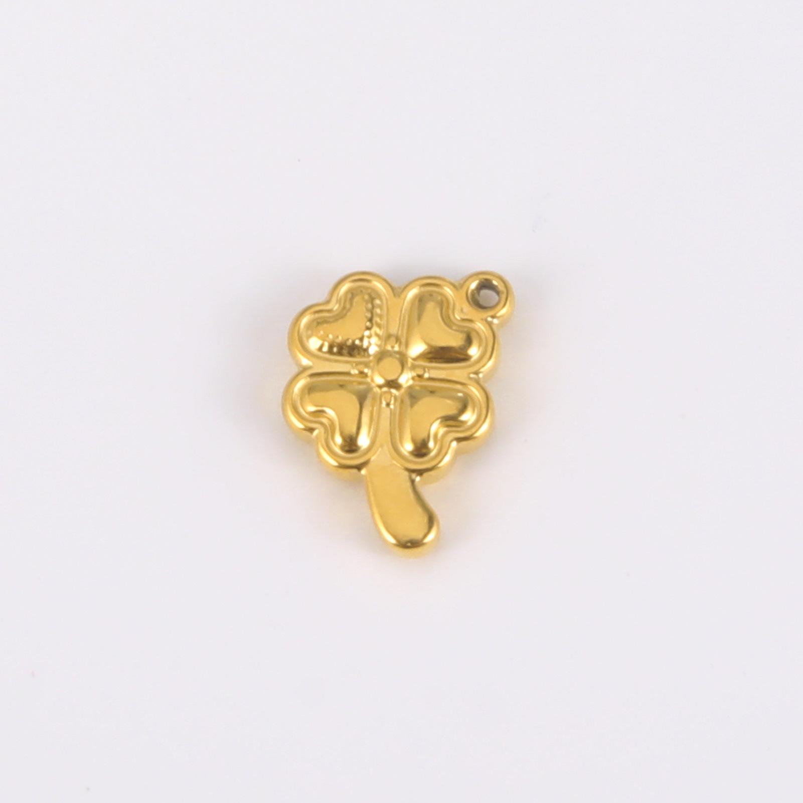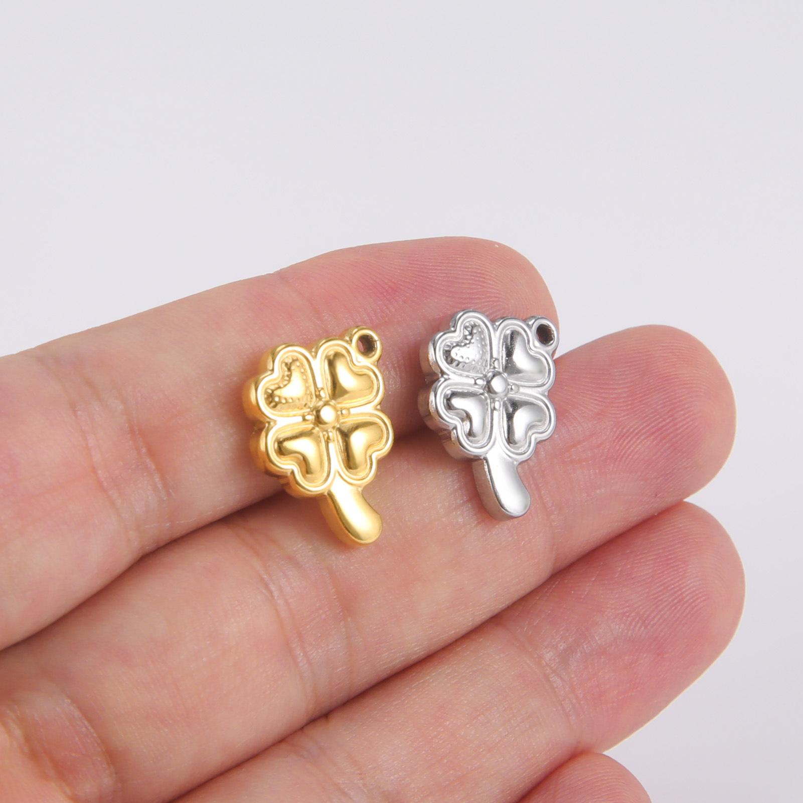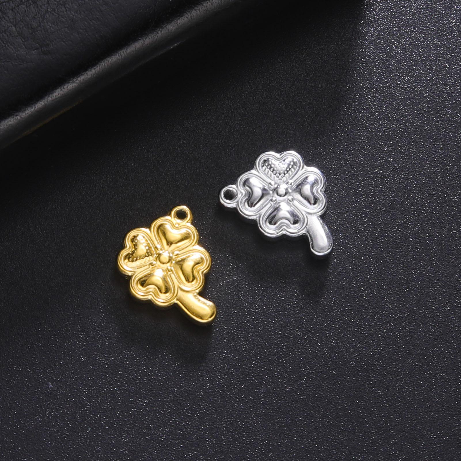 17.2*12. 7mm color acero dorado hecho a mano DIY accesorios de joyería acero inoxidable presión de aceite trébol de cuatro hojas colgante de collar