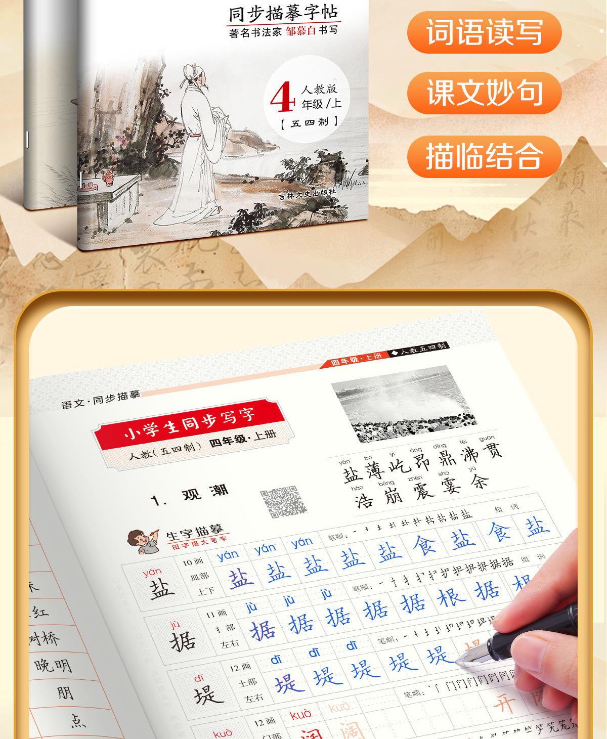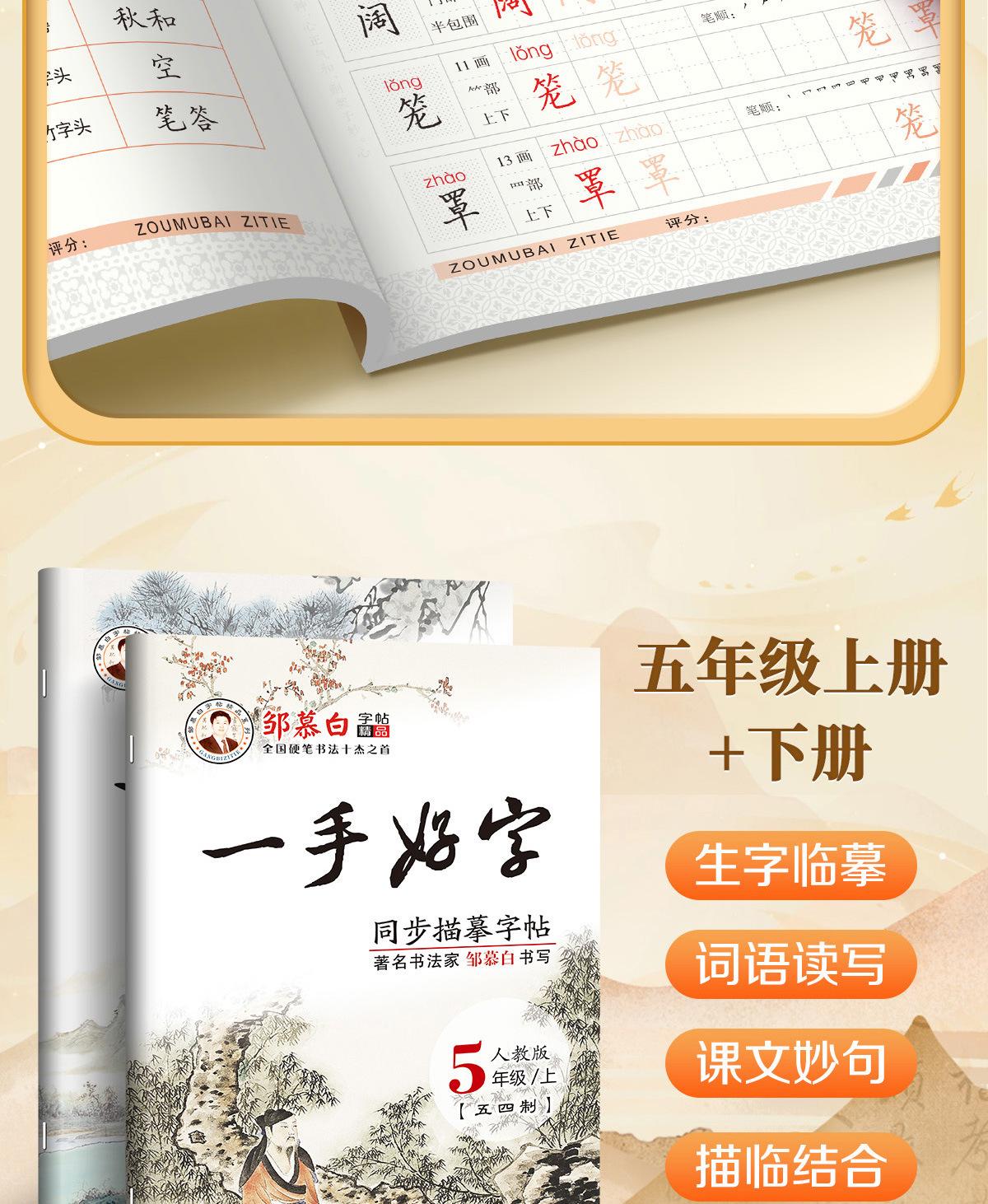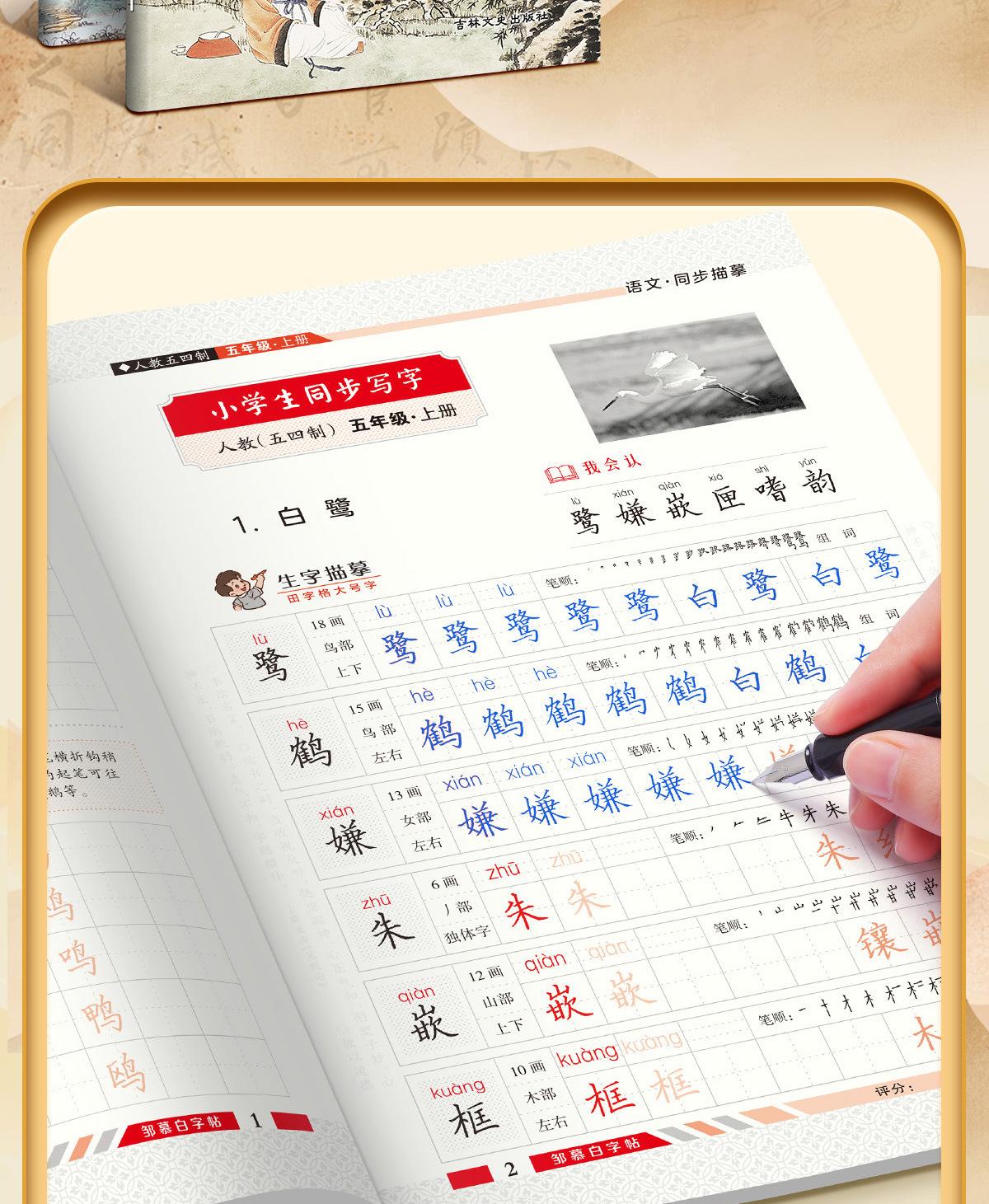 Sistema escolar Zou Mubai del 4 de mayo Libro de texto chino de 1.º a 5.º grado Cuaderno de escritura regular sincrónica Edición de educación popular Buenas palabras