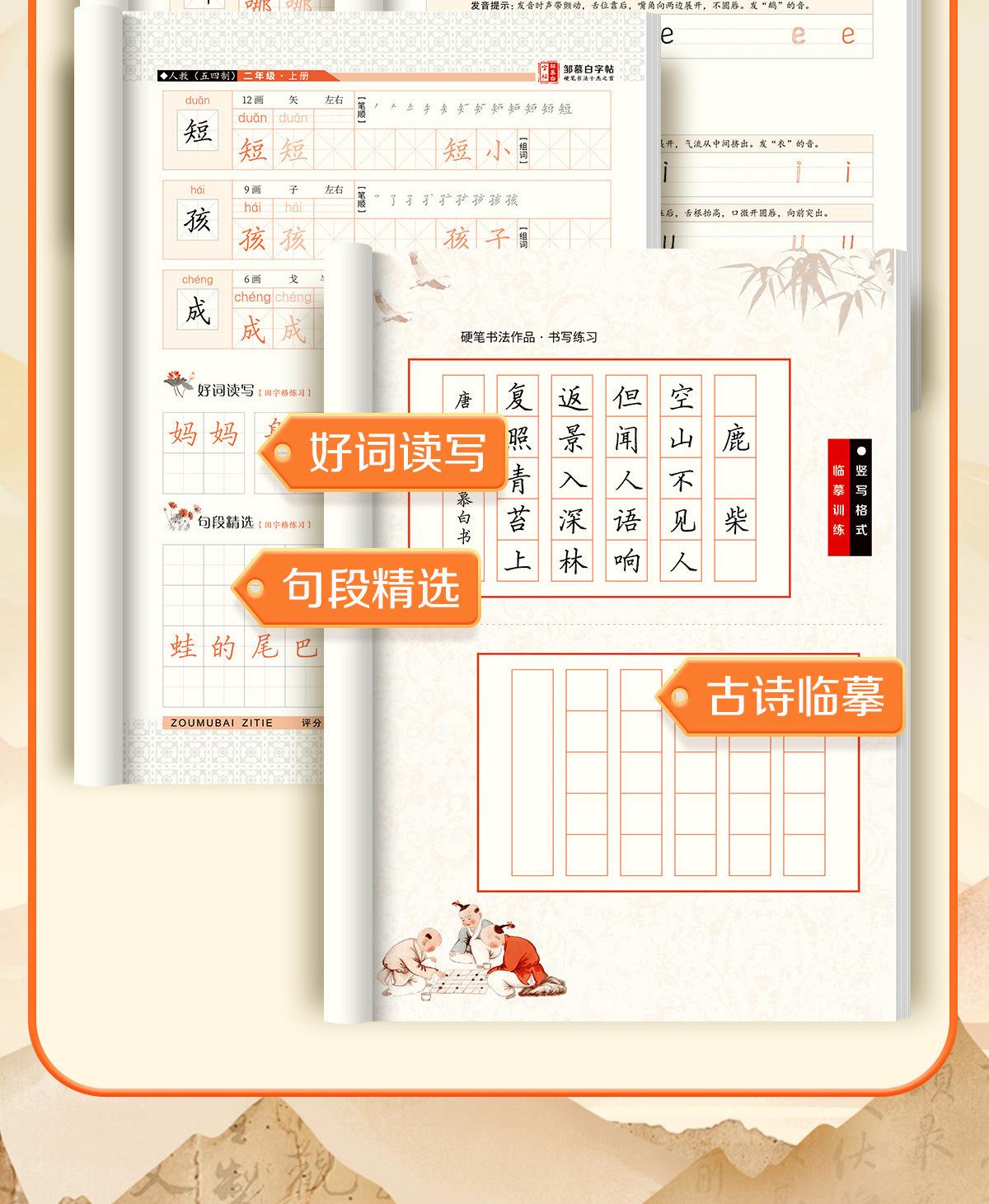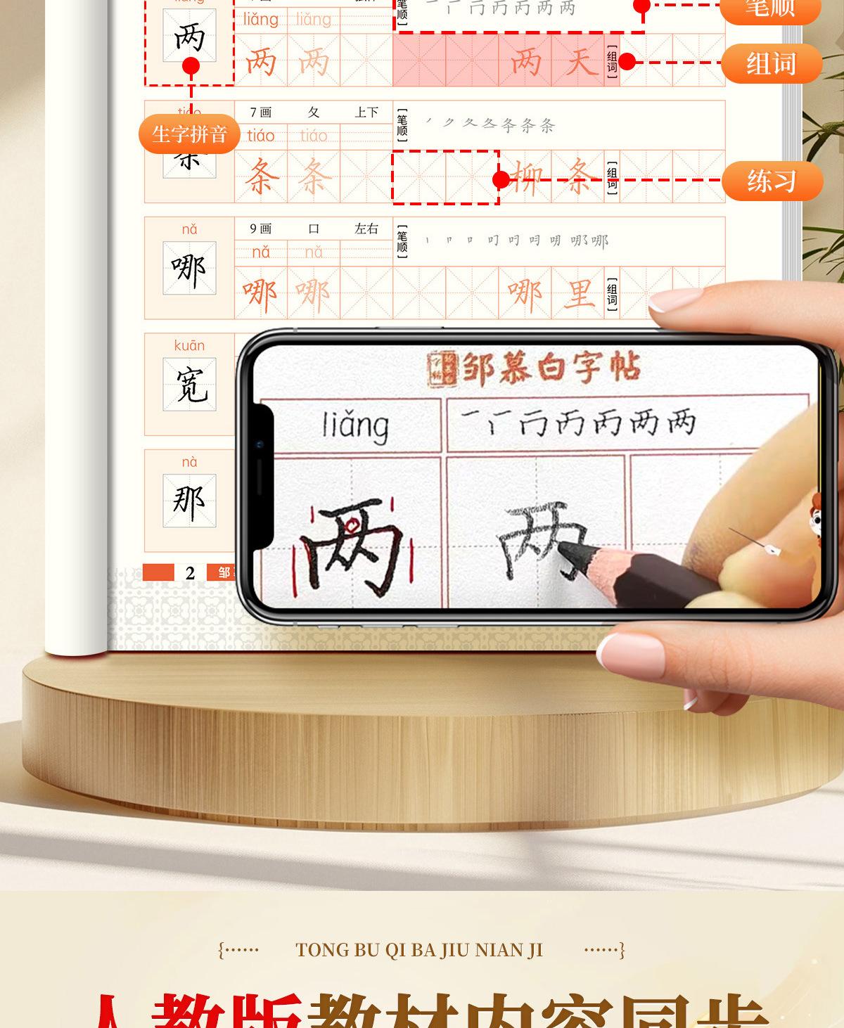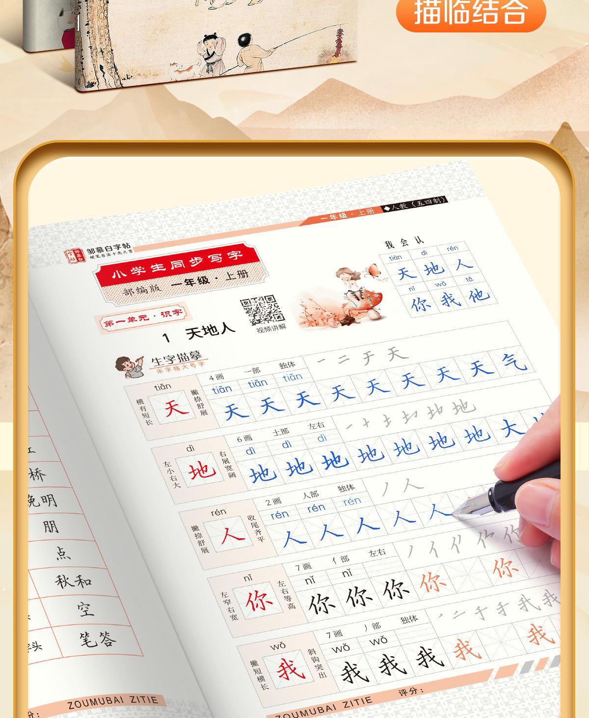 Sistema escolar Zou Mubai del 4 de mayo Libro de texto chino de 1.º a 5.º grado Cuaderno de escritura regular sincrónica Edición de educación popular Buenas palabras