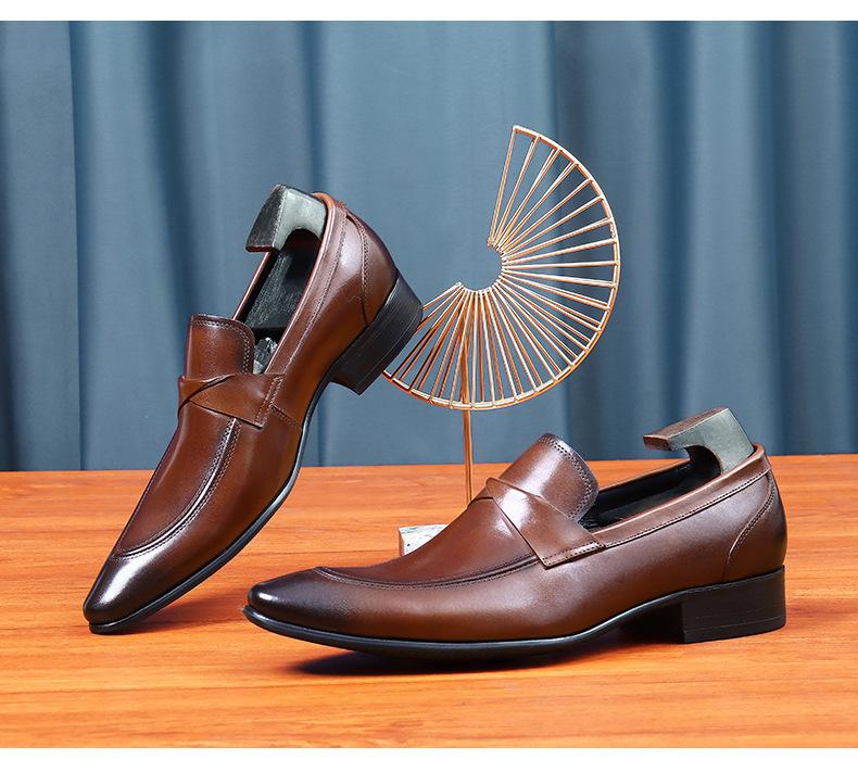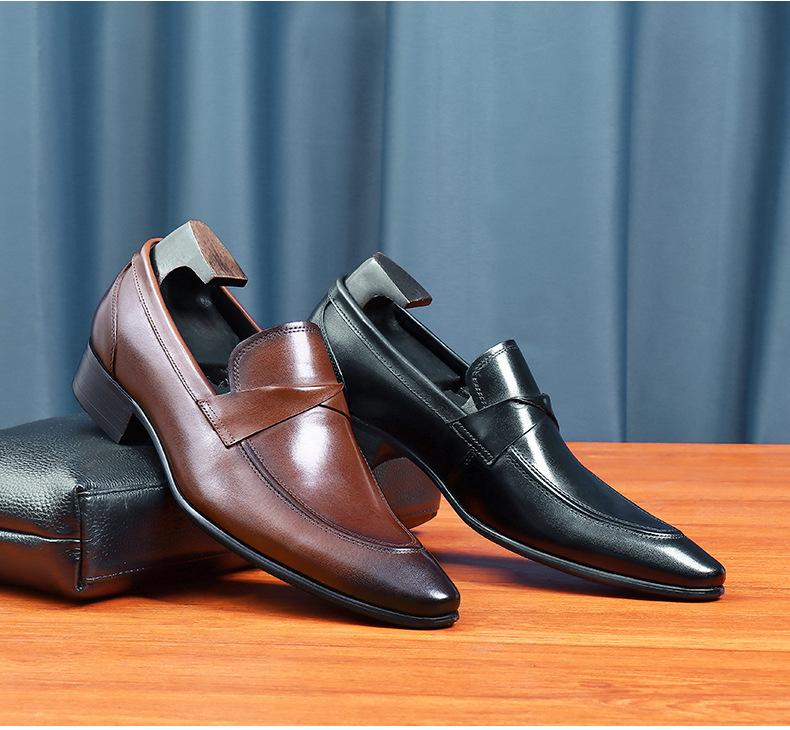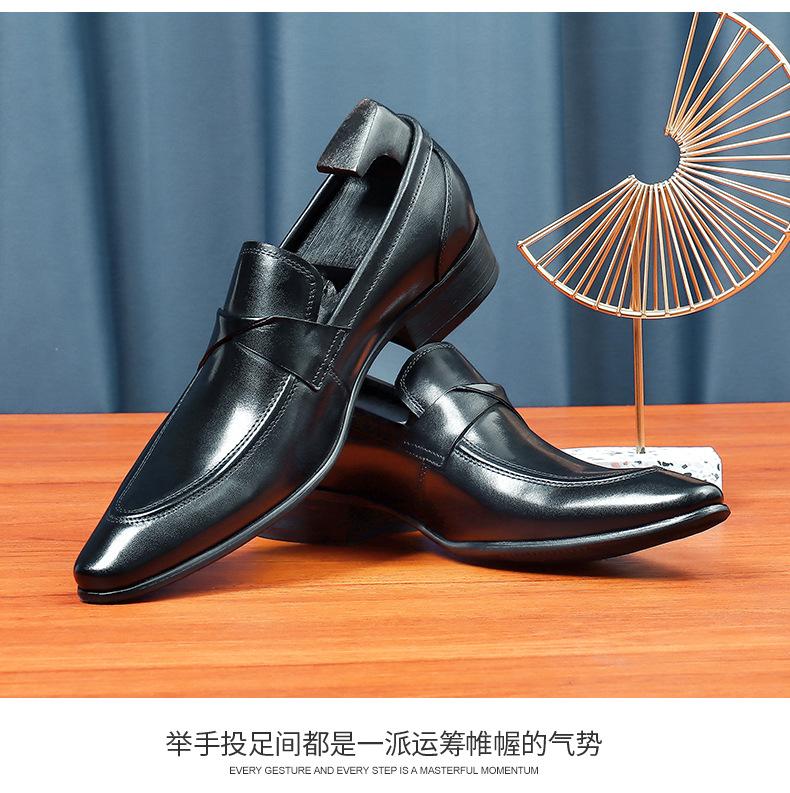 Zapatos Británicos de Cuero Slip-On para Hombre, Cuero Genuino Punta Afilada Casual de Negocios Slip-On Mocasines, Zapatos Formales de Hombre, Envío Directo