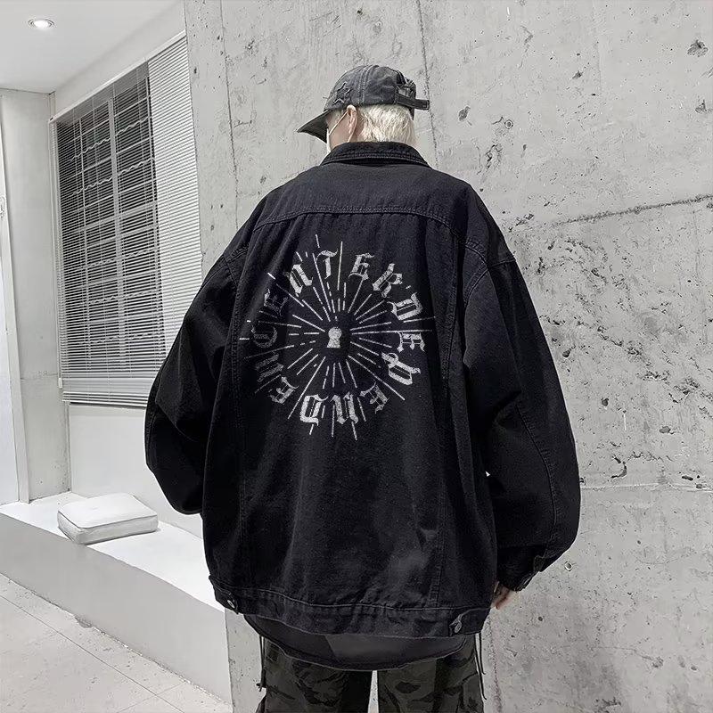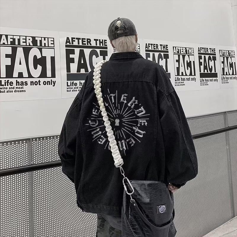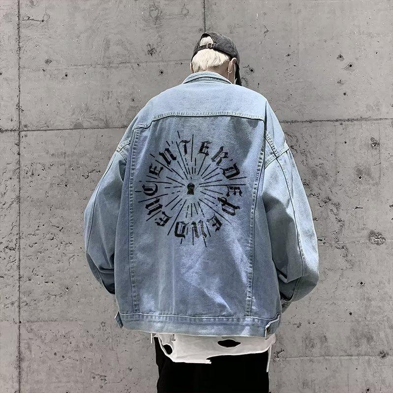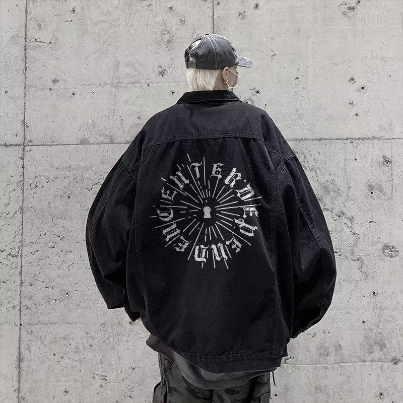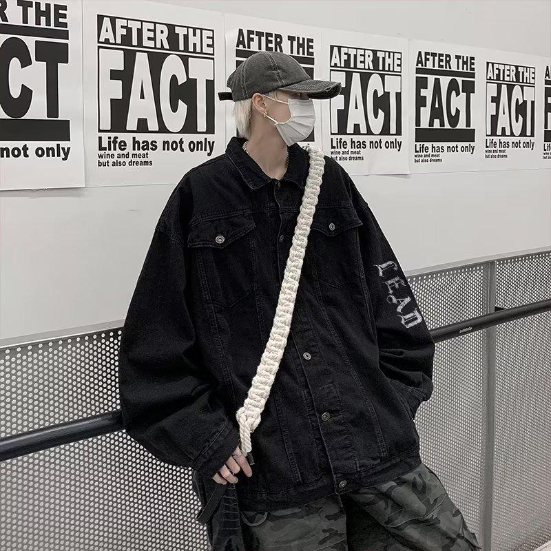 Chaqueta vaquera vintage de estilo americano para hombre, chaqueta de trabajo de marca de moda de otoño, chaqueta holgada Yipi con solapa para adolescente guapo