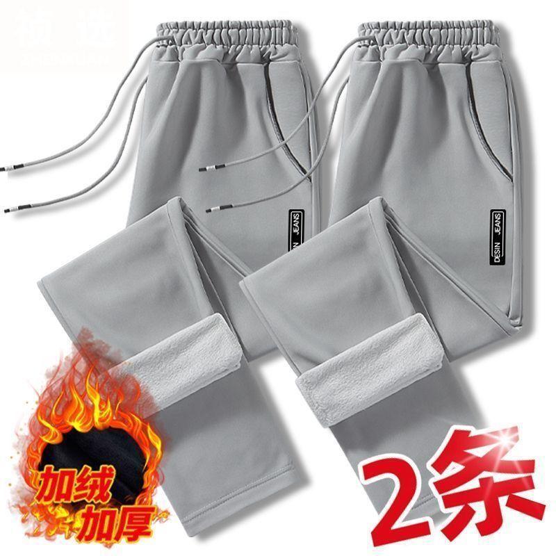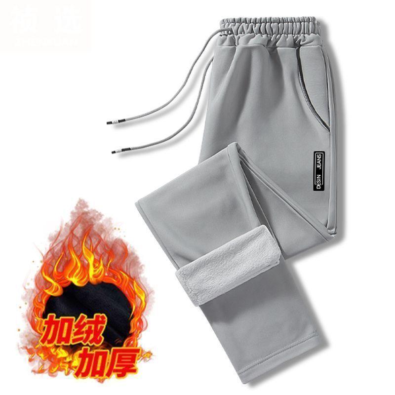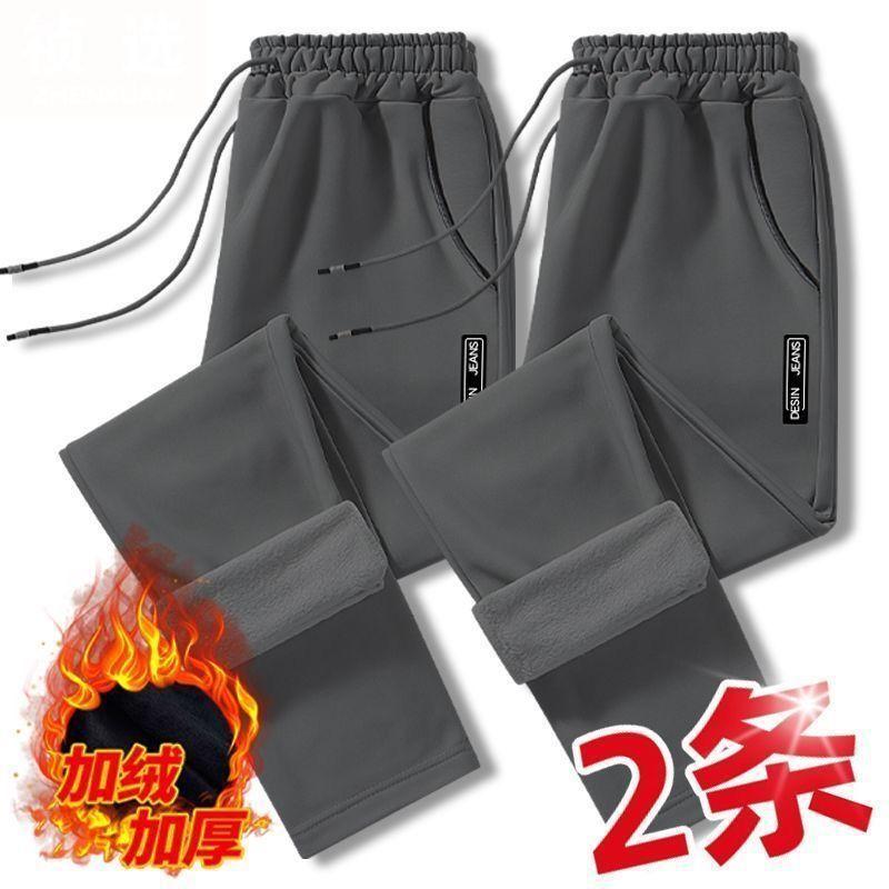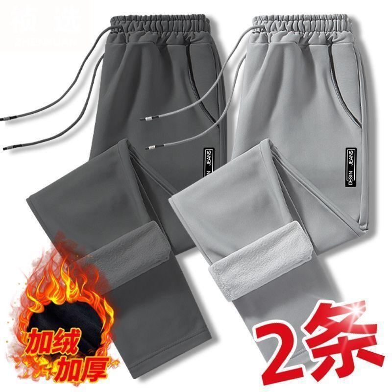 Pantalones gruesos con forro polar para otoño e invierno, pantalones casuales para hombre, pantalones largos rectos y sueltos, pantalones deportivos ajustados que combinan con todo para otoño para hombre.