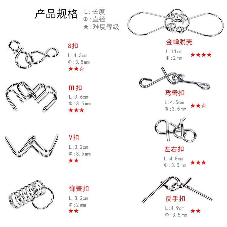 Juego de ocho piezas de hebilla sin anillo ABC al por mayor juego de ocho piezas de 24 juego completo de nueve piezas juguetes educativos de metal hebilla intelectual