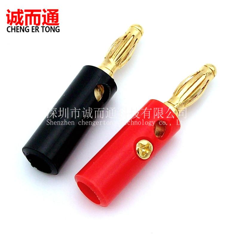 Conector banana chapado en oro con cabeza de linterna de 4 mm, conector de prueba tipo linterna, tipo banana de cuatro páginas
