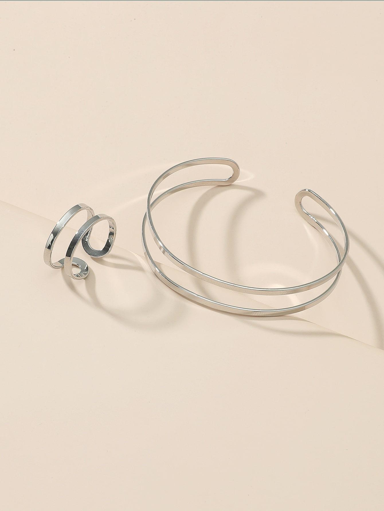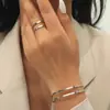 Pulsera popular de cobre con anillo curvo en forma de C de doble fila Shein, traje de moda de personalidad minimalista, pulsera de anillo liso