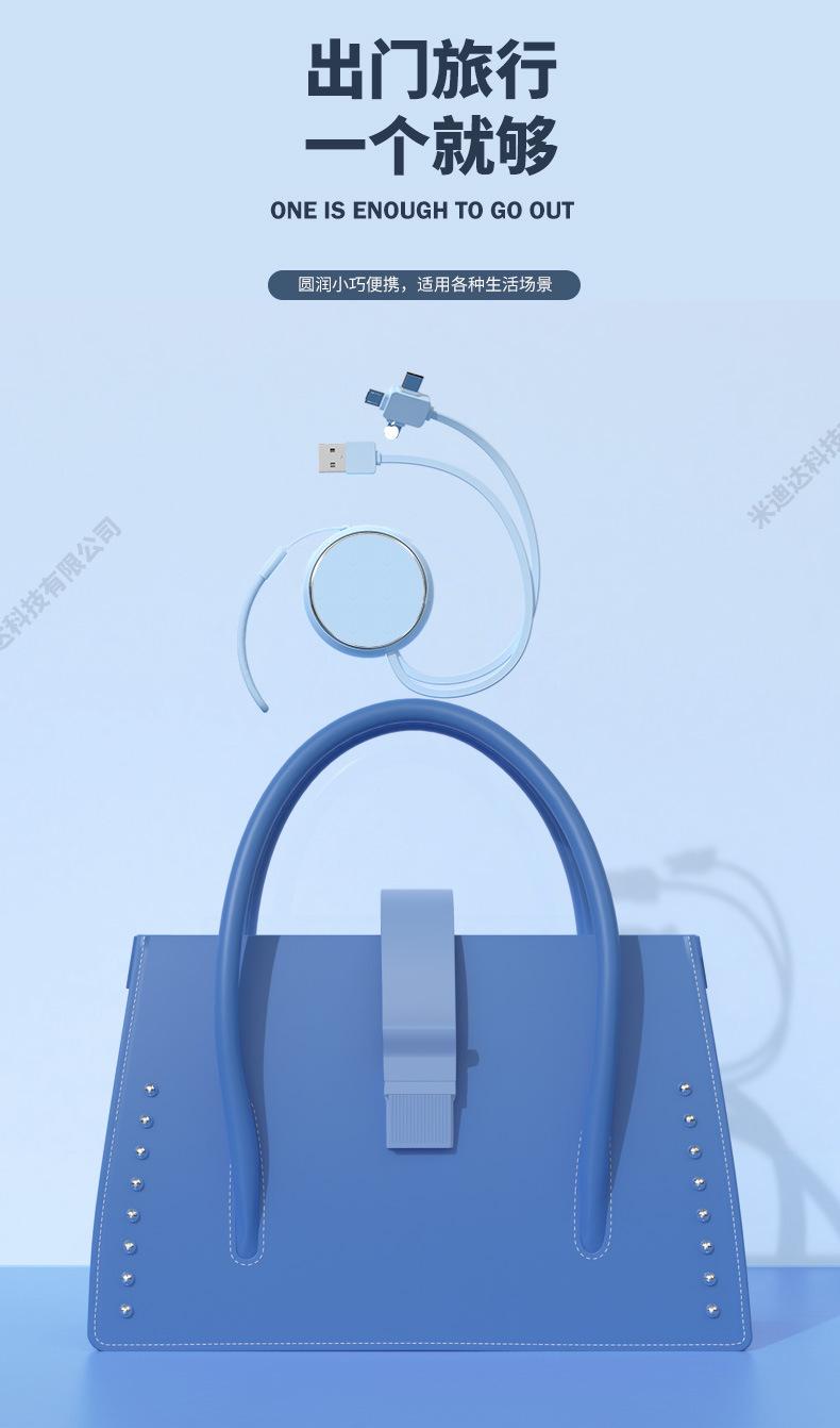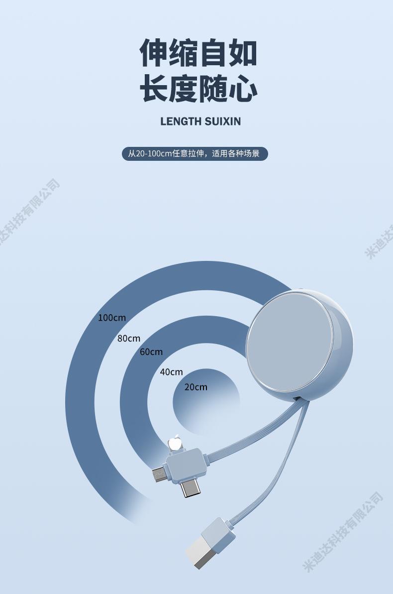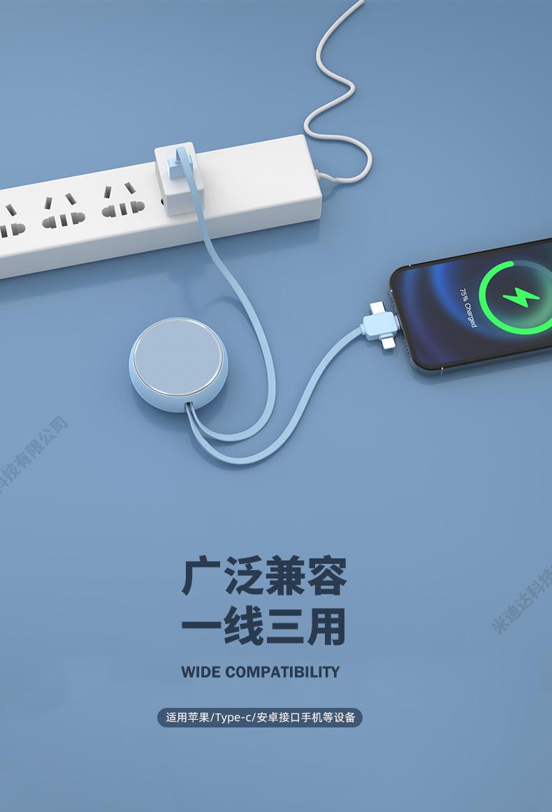 Cable de datos retráctil de uno a tres para teléfono móvil Apple Huawei Android, tableta, coche, carga rápida, cable de carga tres en uno