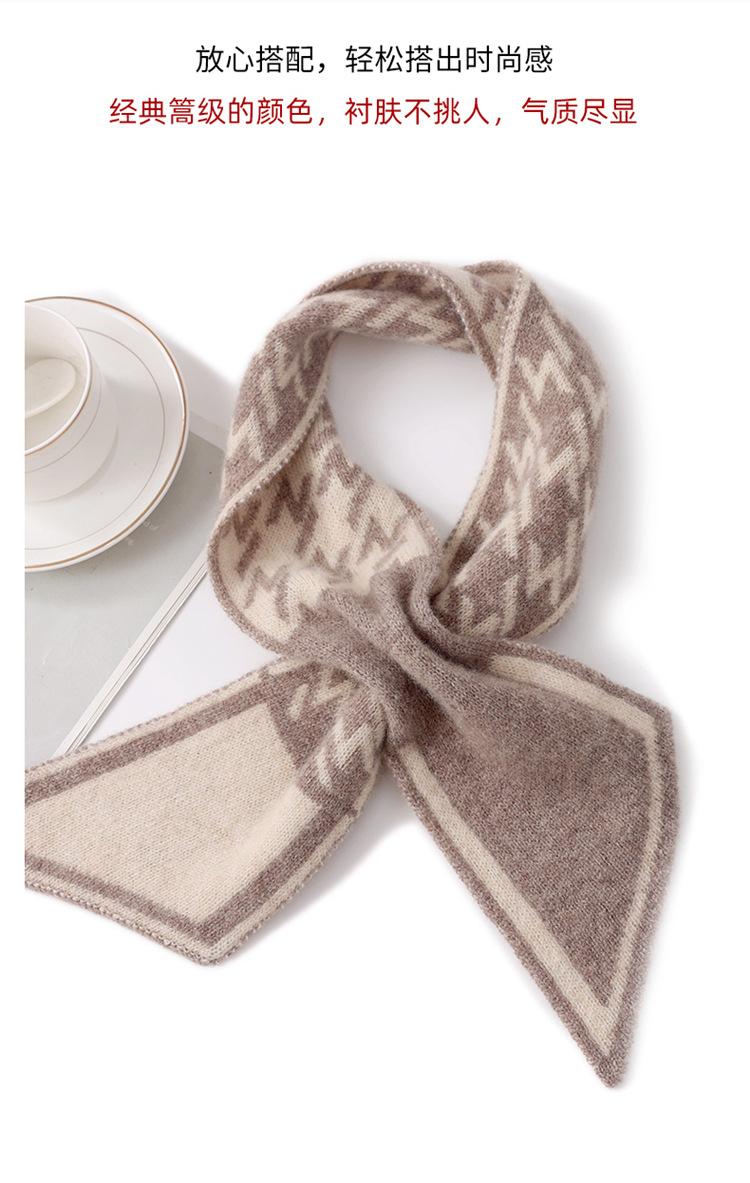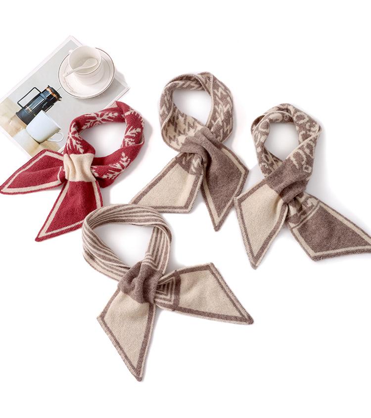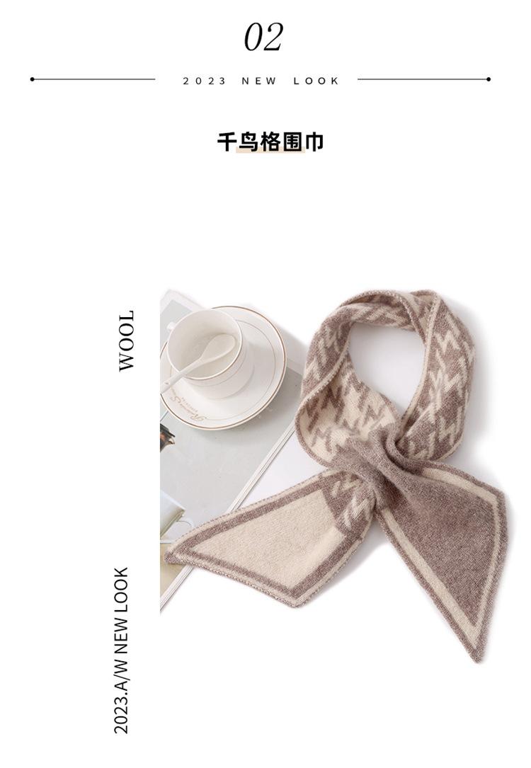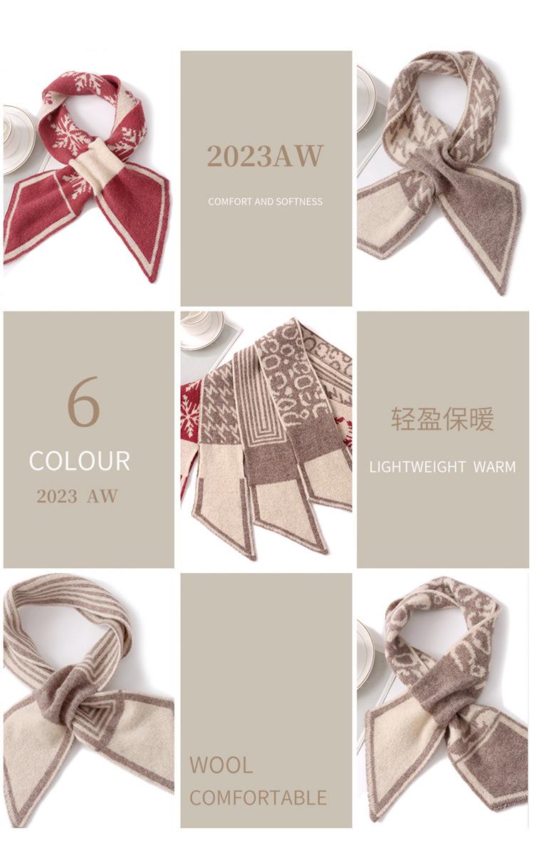 Bufanda pequeña de punto cruzado de lana estilo coreano de otoño e invierno para mujer, bufanda protectora del cuello de color versátil a juego, bufanda larga perforada perezosa