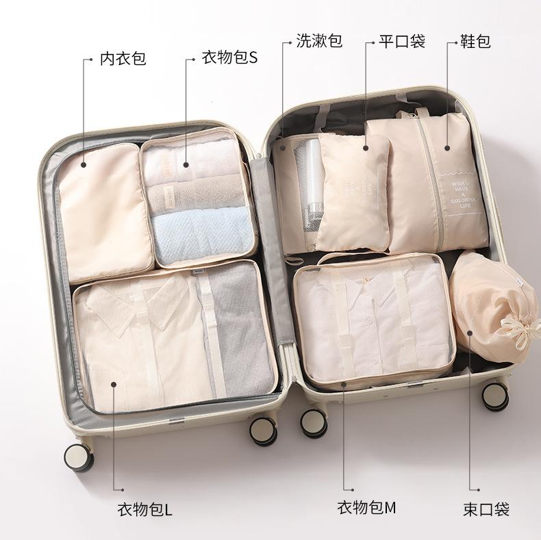 Bolsa de almacenamiento de viaje, conjunto de siete piezas, bolsa de almacenamiento multifuncional para clasificar ropa y zapatos, bolsa de almacenamiento de equipaje, traje