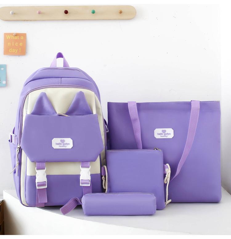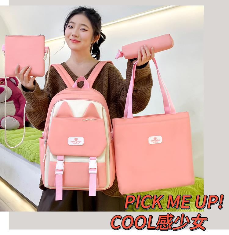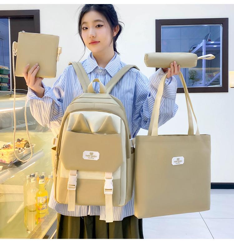 Mochila informal de nailon para estudiantes de primaria, de gran capacidad, de cuatro piezas, para exteriores, nueva, 2024