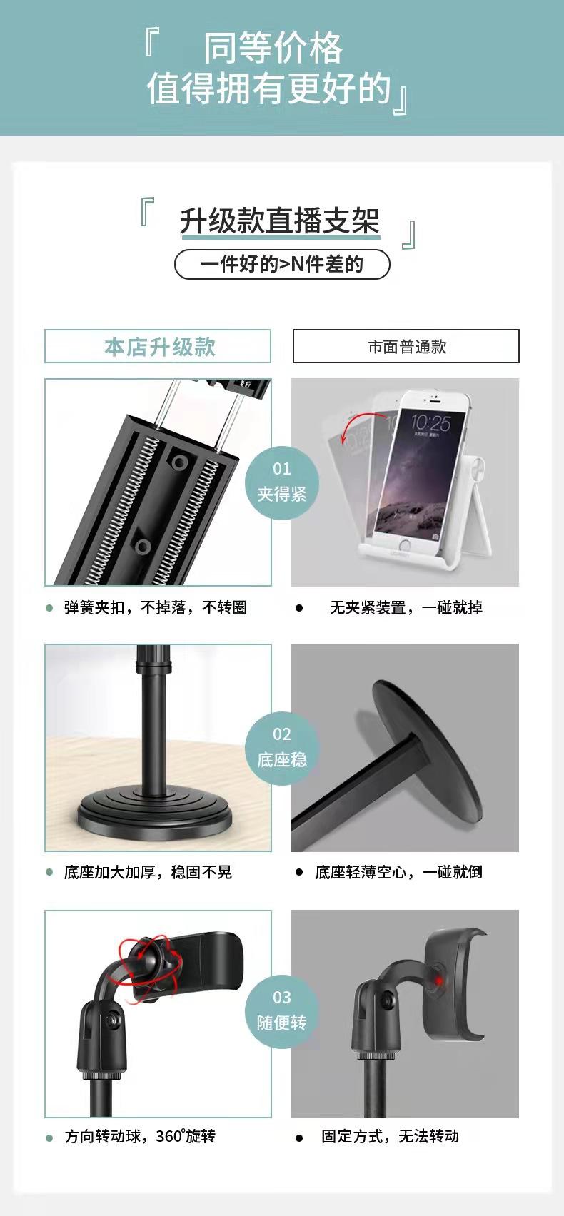 Soporte de transmisión en vivo de disco para teléfono móvil, soporte retráctil de escritorio para elevación, giratorio, para selfies en interiores y exteriores, venta al por mayor