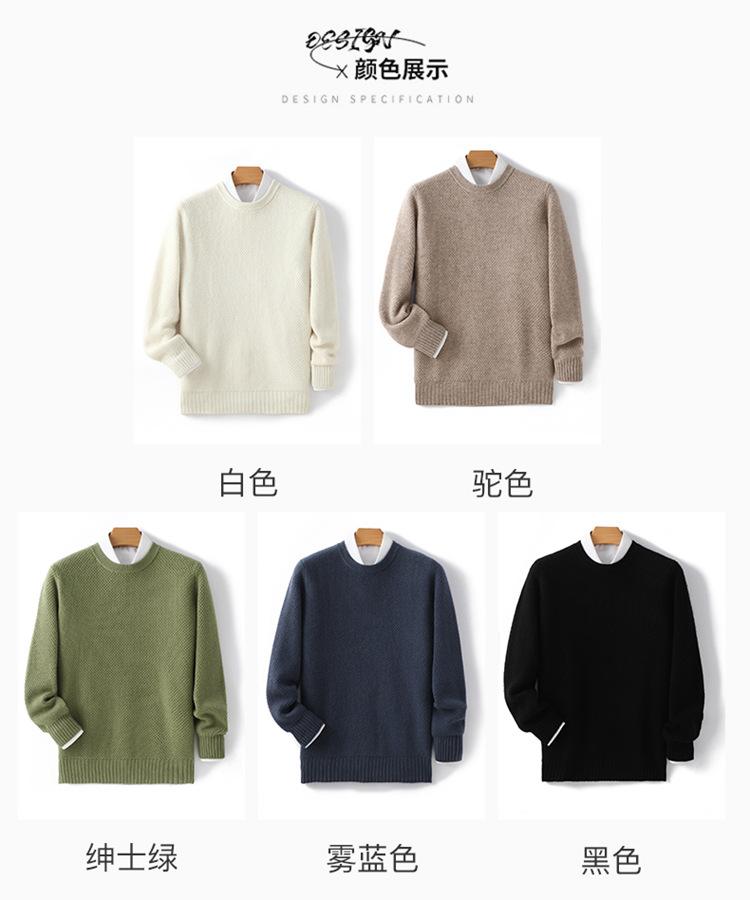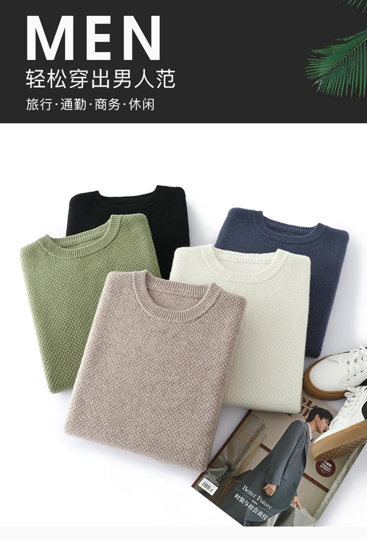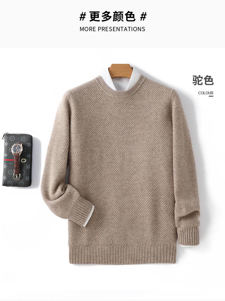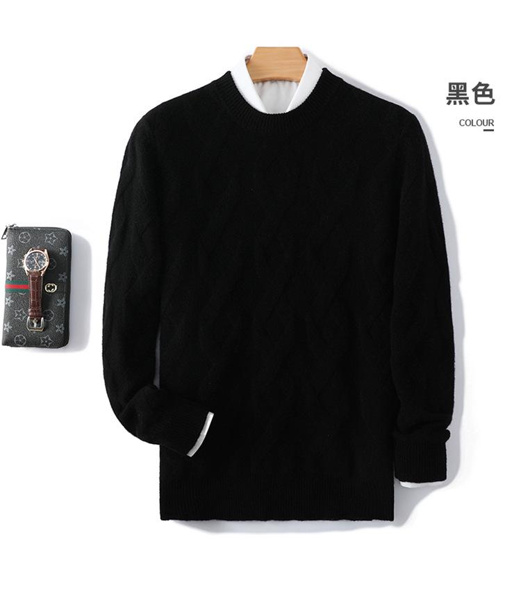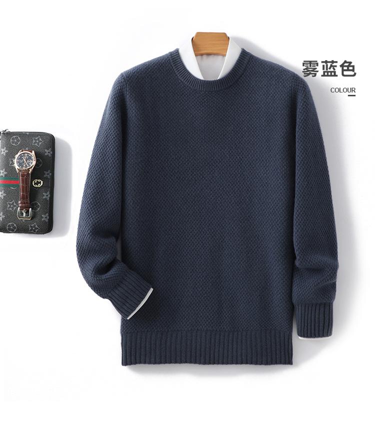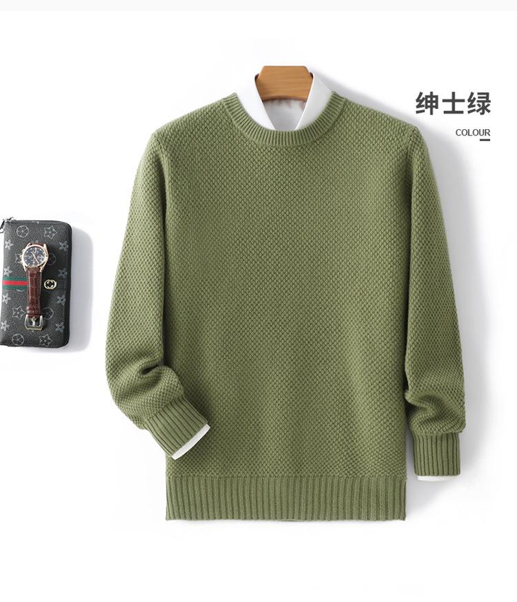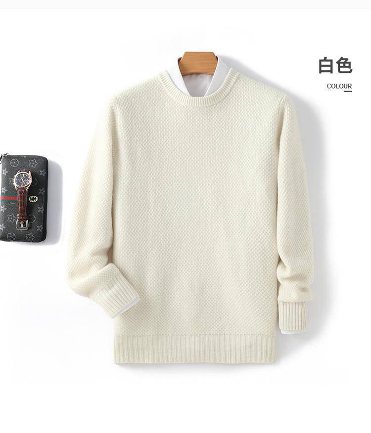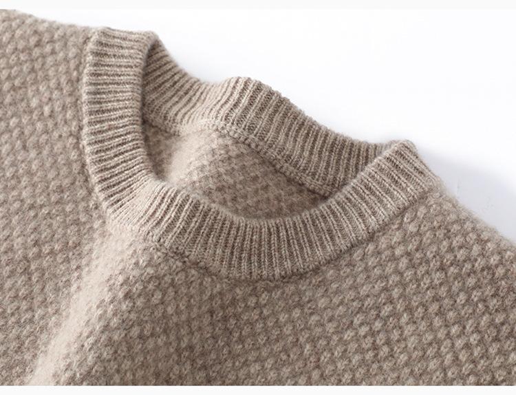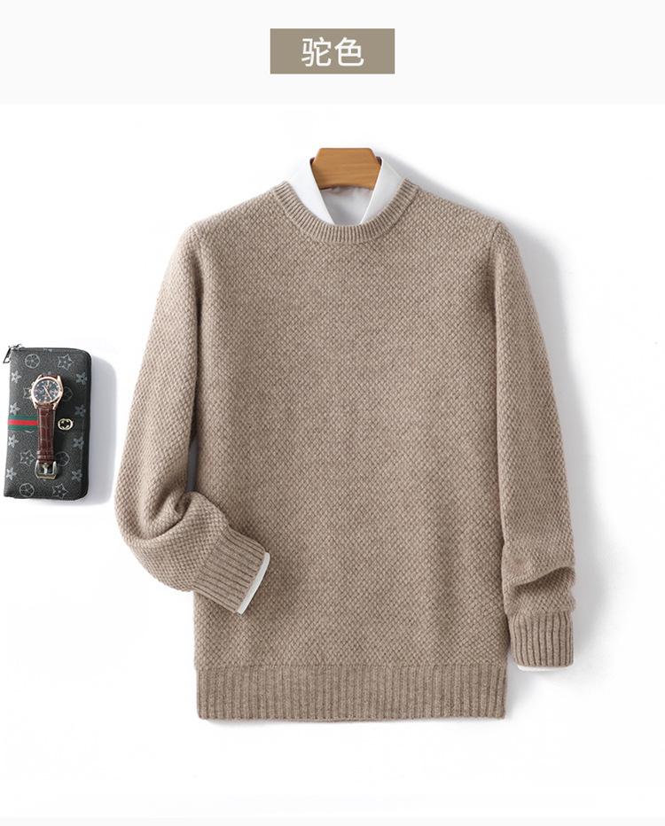 Suéter de cuello redondo para hombre, suéter de cachemira grueso de punto de lana 100% pura de talla grande, nuevo de otoño e invierno, venta al por mayor