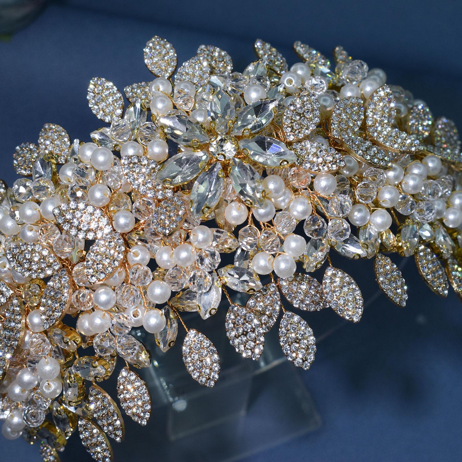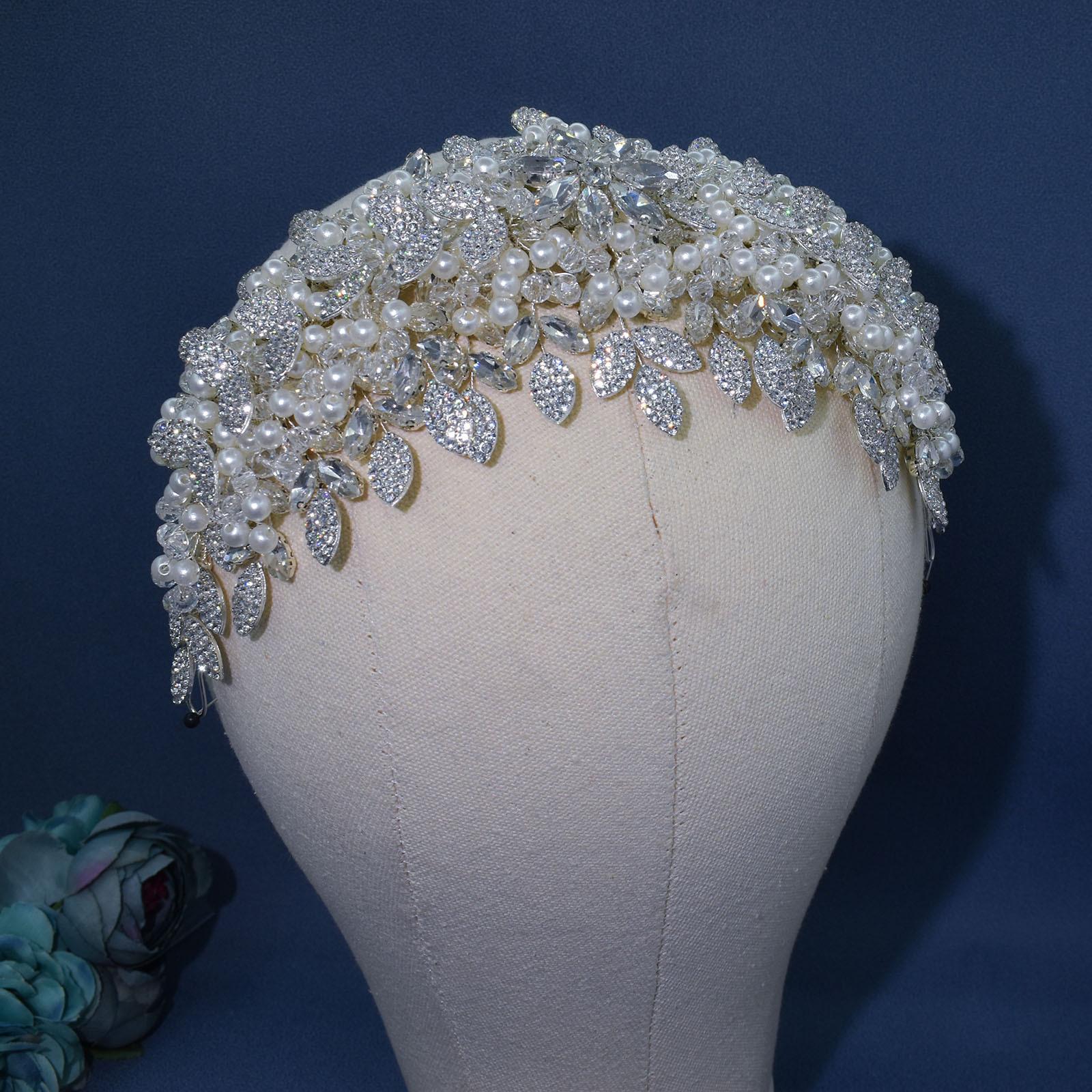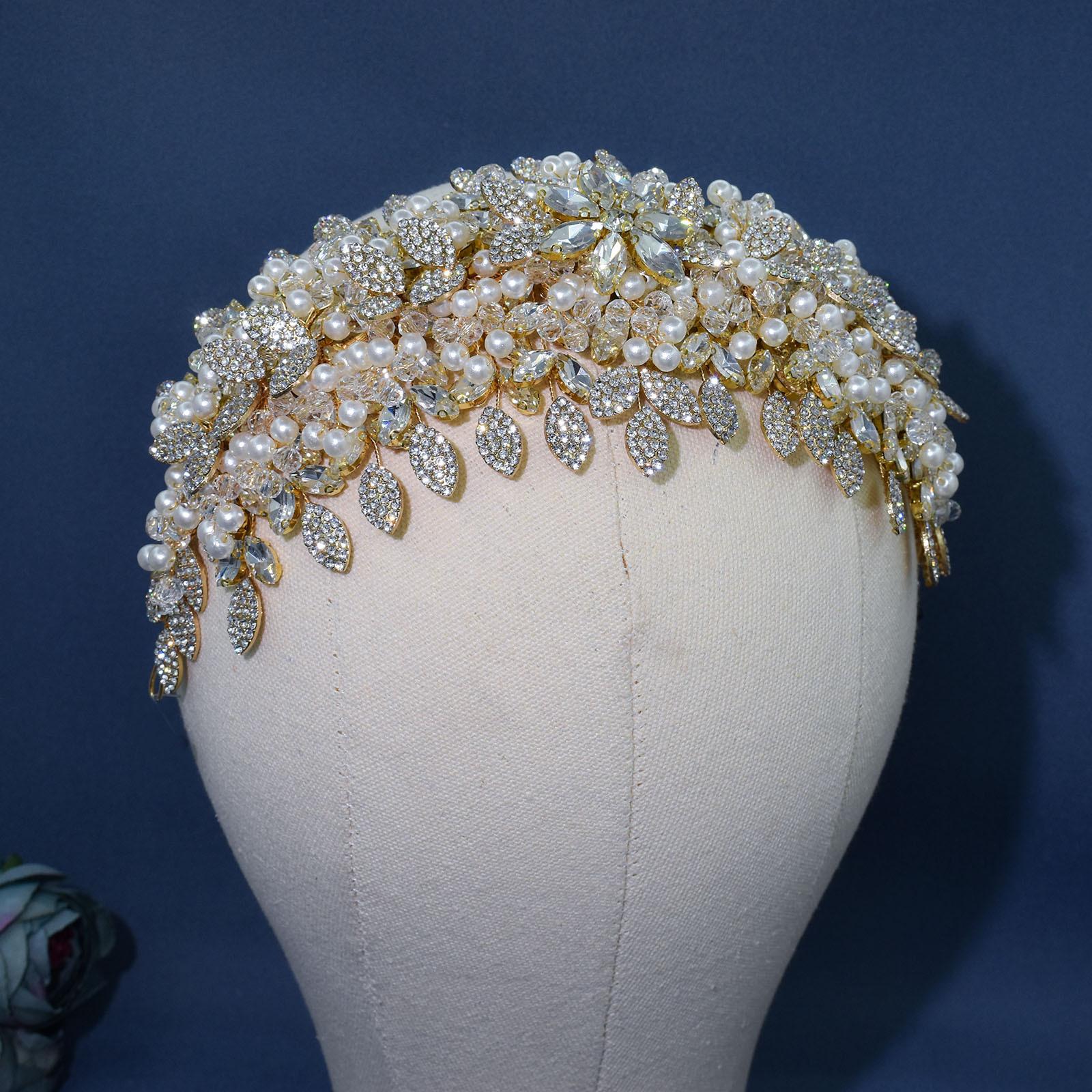 Tocado de novia de comercio exterior nuevo y original, pesado, hecho a mano, con cristales y diamantes de imitación, banda para el cabello a presión para boda, conjunto de banda para el cabello DZ065