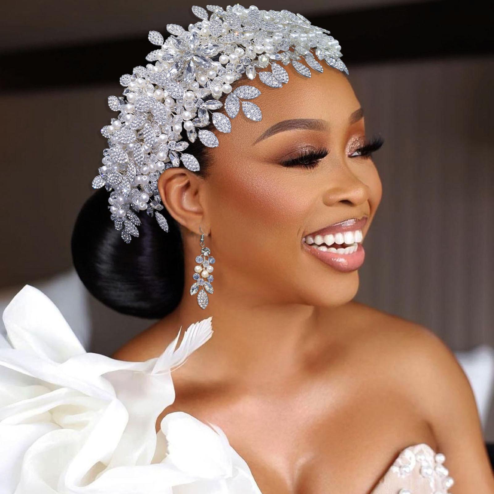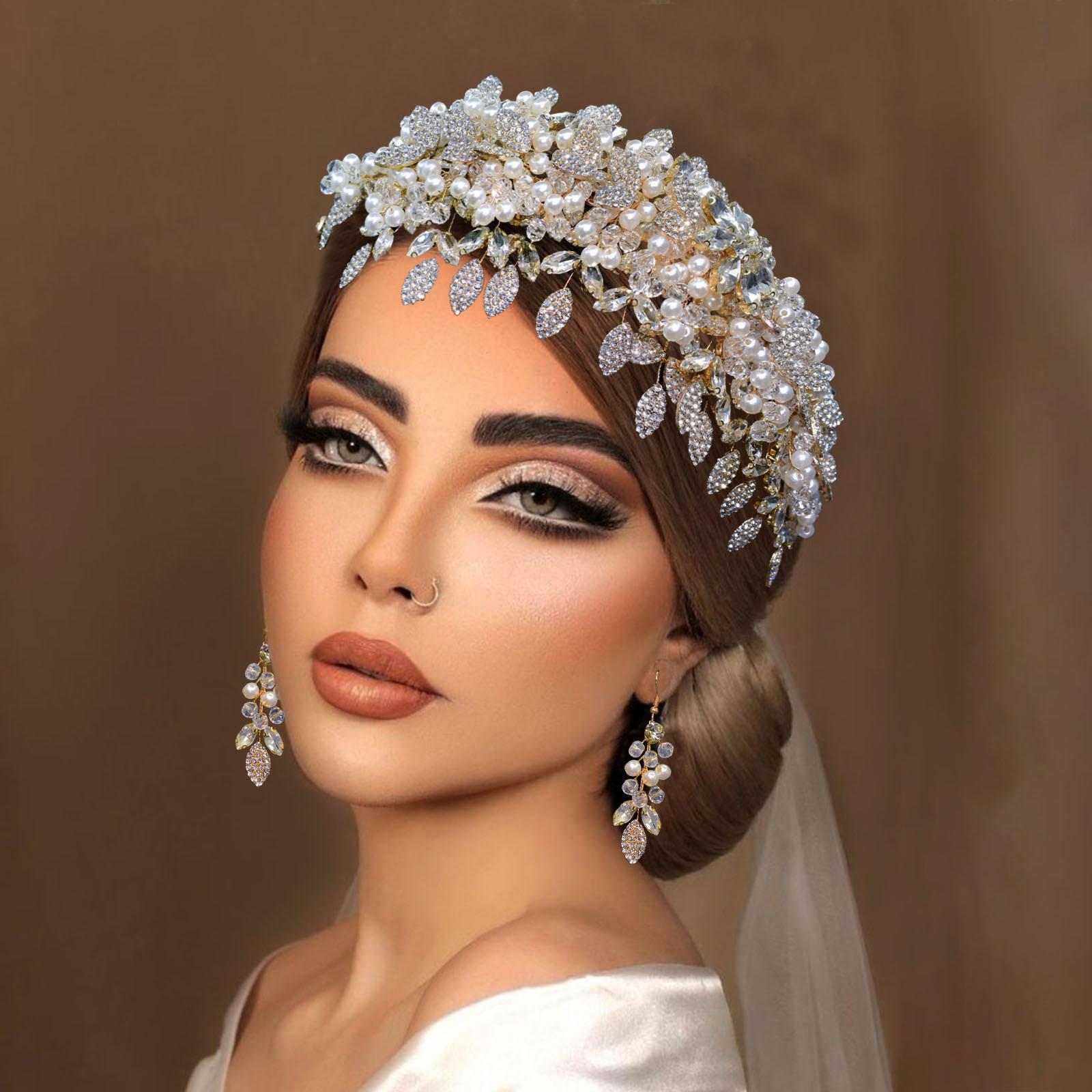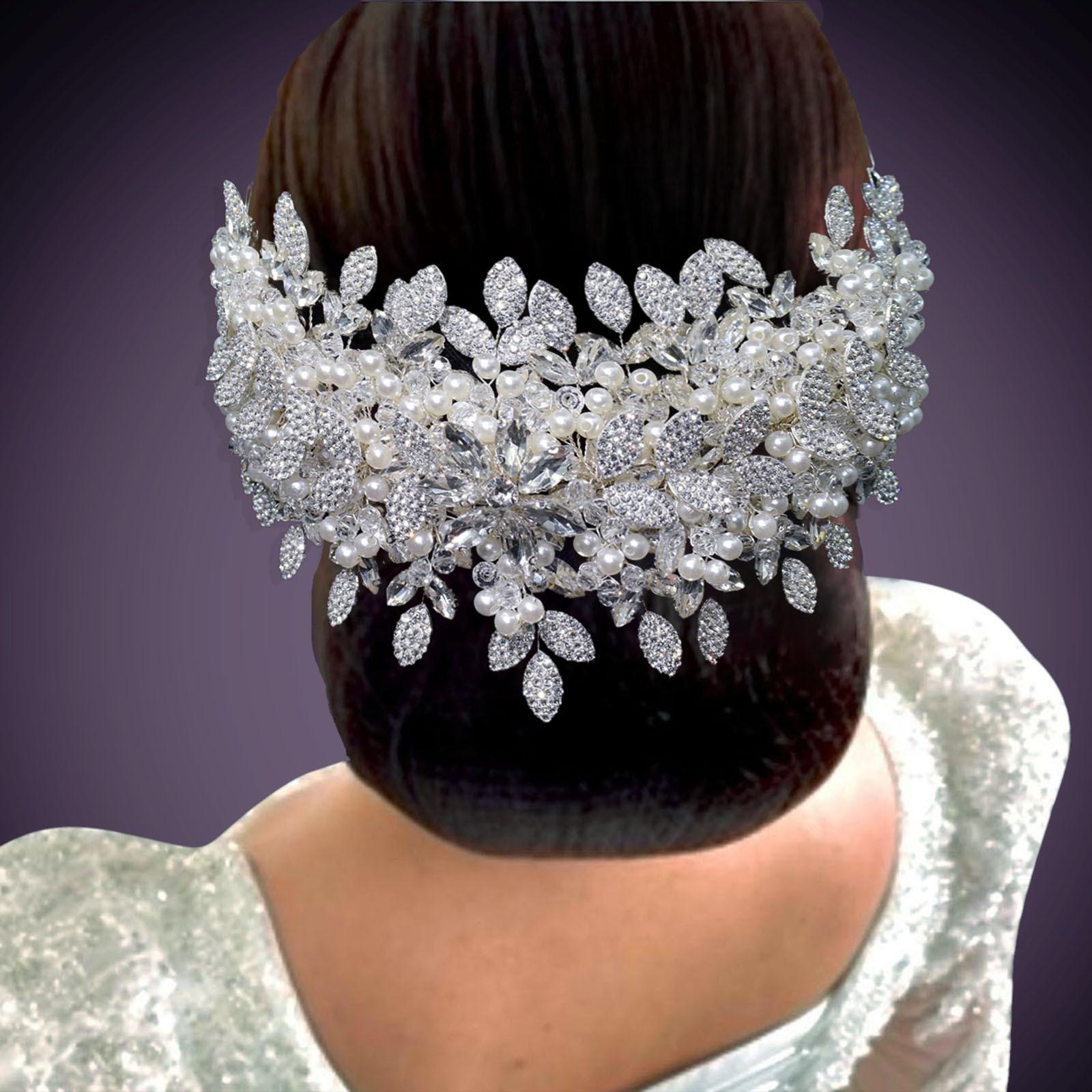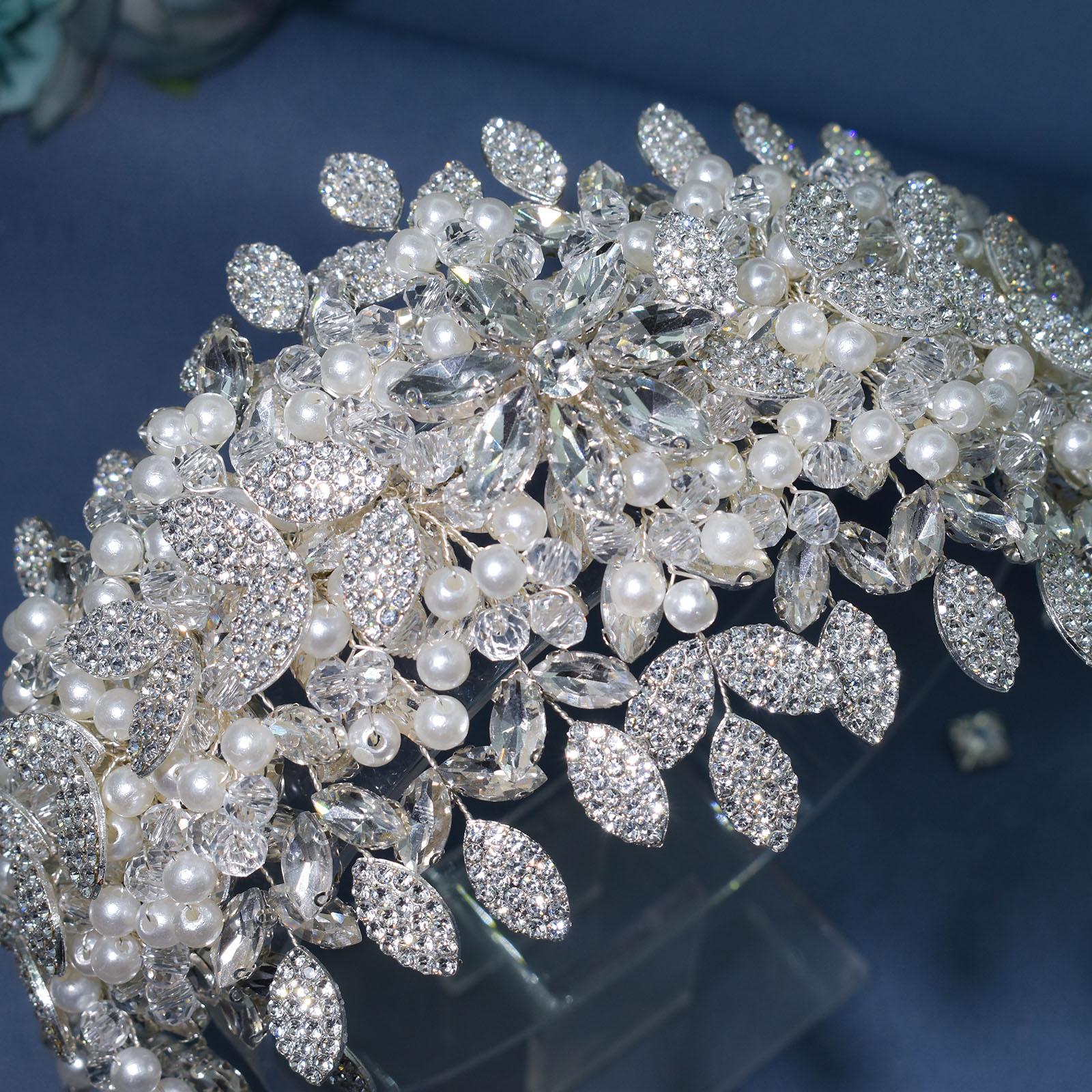 Tocado de novia de comercio exterior nuevo y original, pesado, hecho a mano, con cristales y diamantes de imitación, banda para el cabello a presión para boda, conjunto de banda para el cabello DZ065
