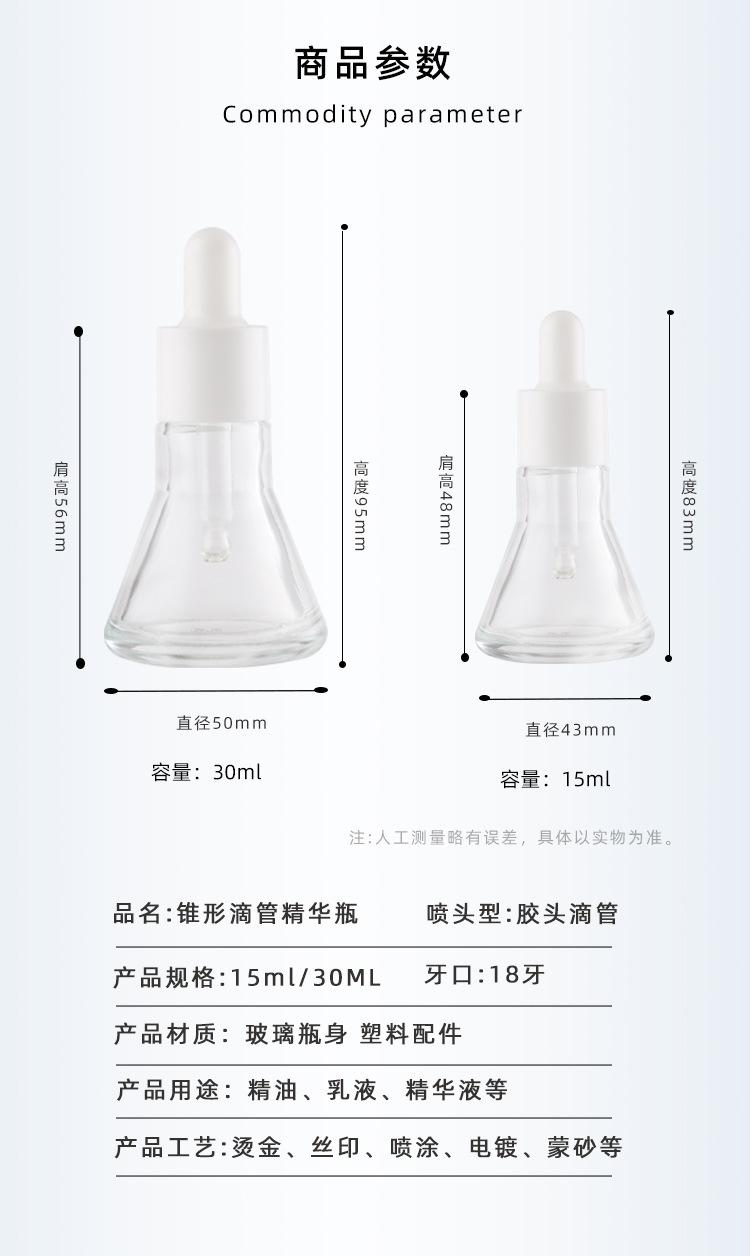 Venta al por mayor de 15 ml 30 ml Frasco gotero cónico Aceite esencial Esencia Líquido Frasco de vidrio Sub-frasco de loción Frasco gotero