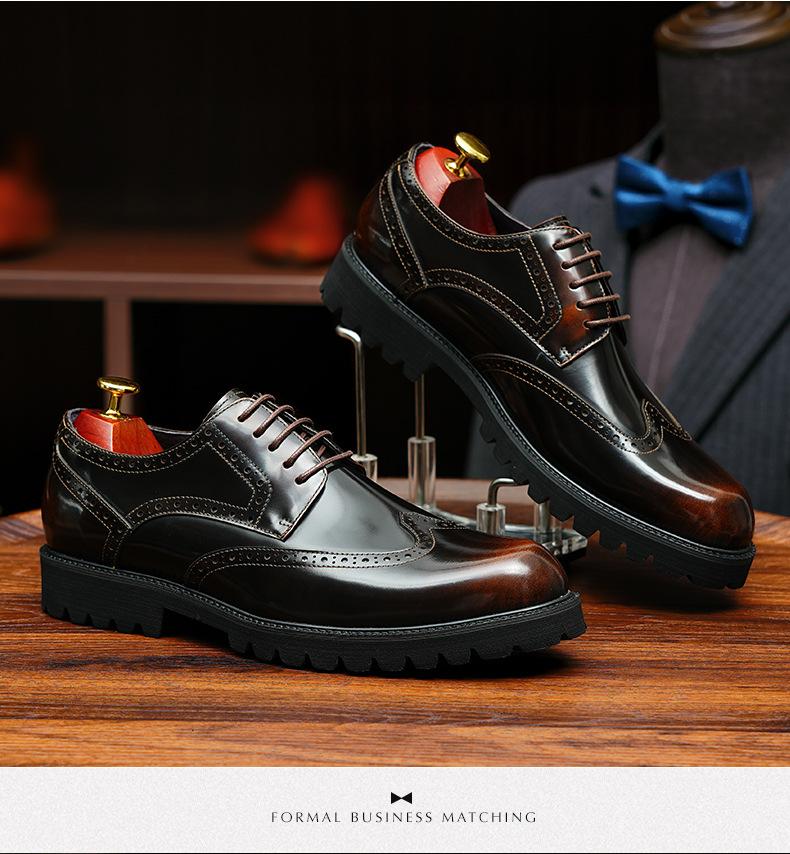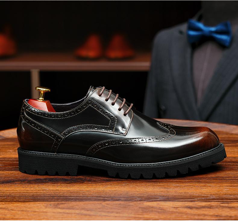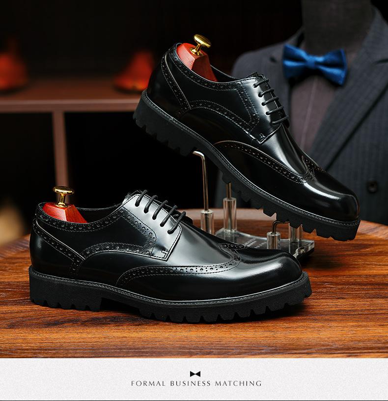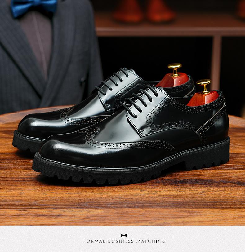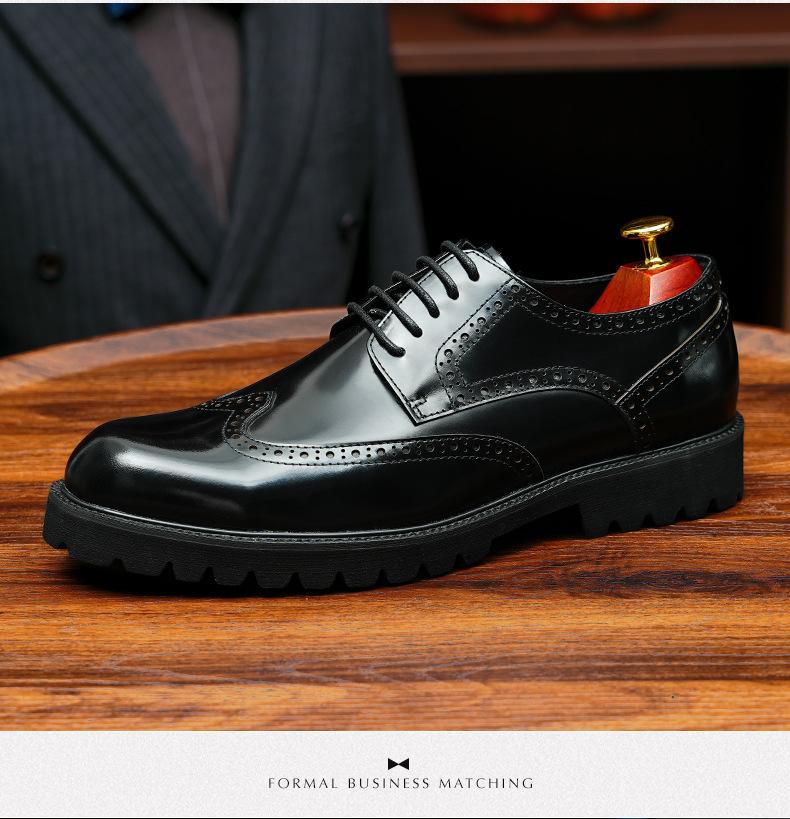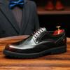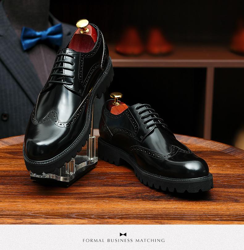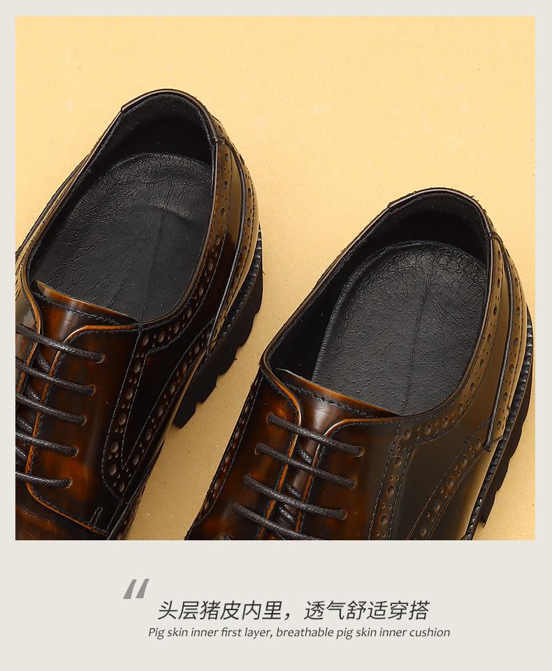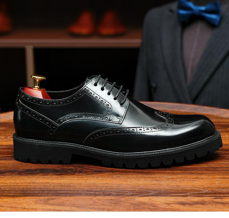 Zapatos casuales británicos para hombre, de moda, de cuero genuino, con punta redonda y suela gruesa, de charol negro brillante, para uso formal, para negocios, para hombre