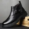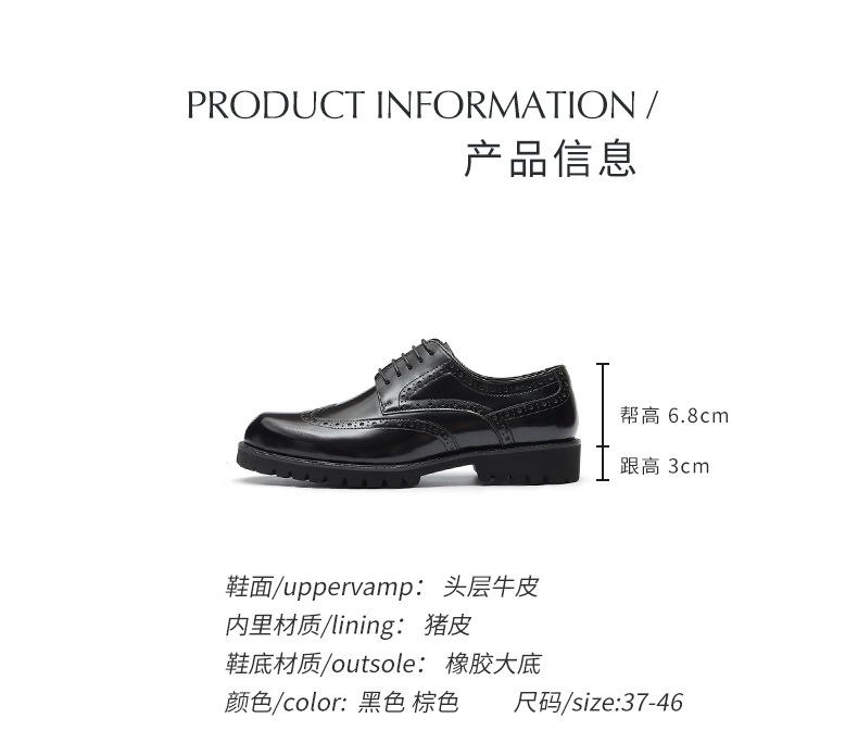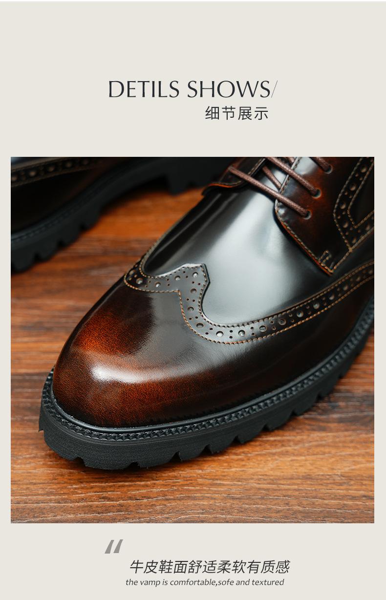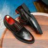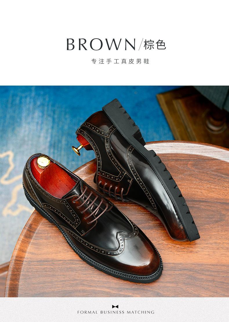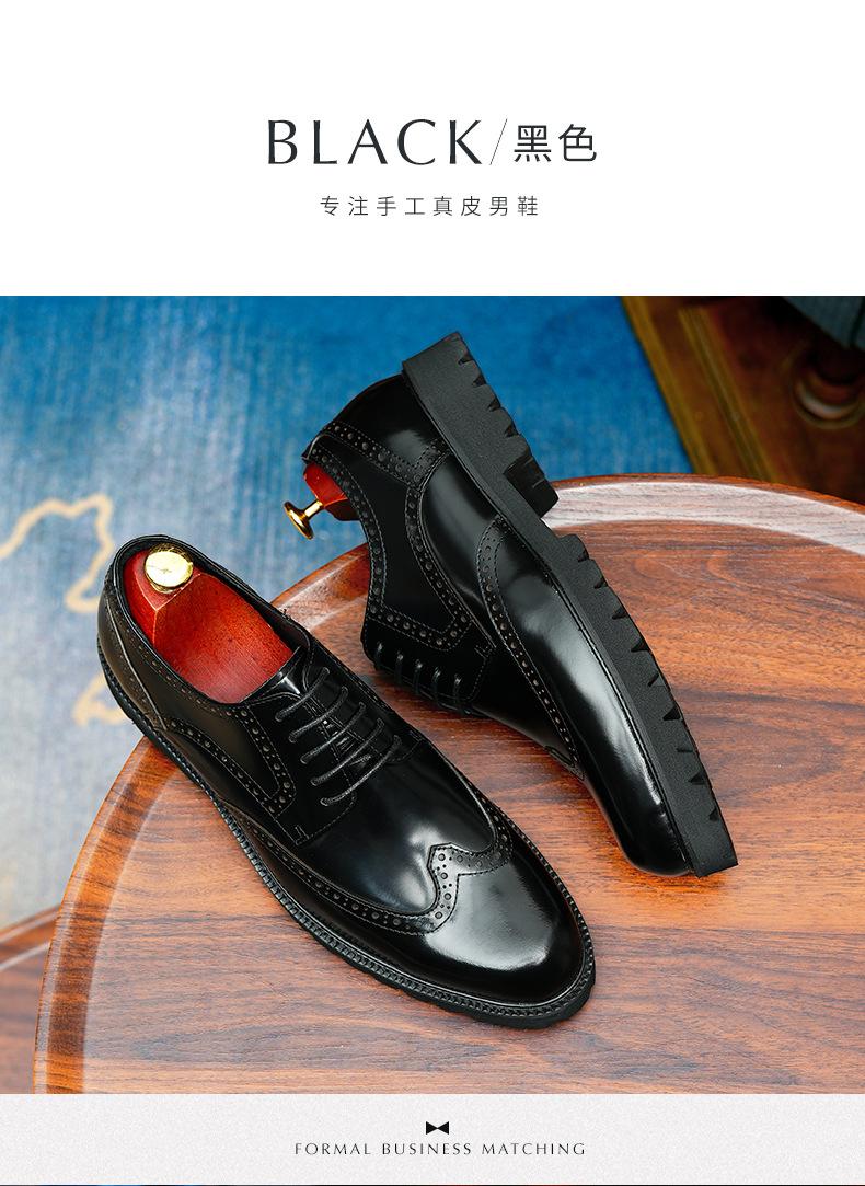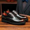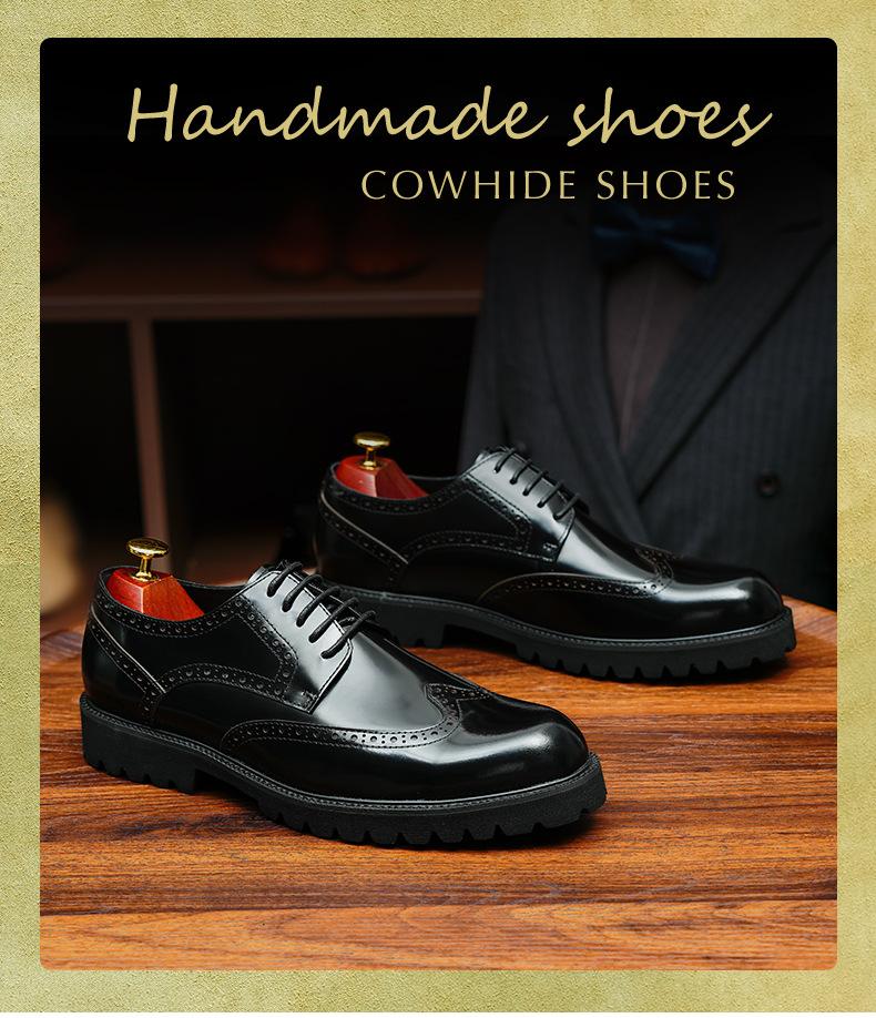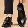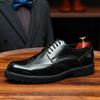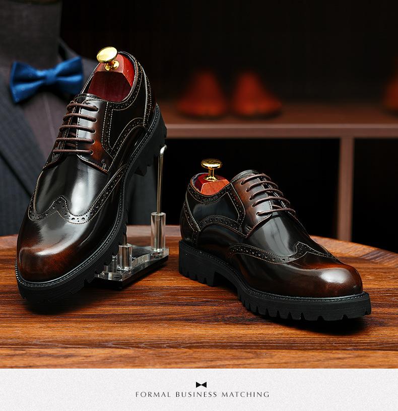 Zapatos casuales británicos para hombre, de moda, de cuero genuino, con punta redonda y suela gruesa, de charol negro brillante, para uso formal, para negocios, para hombre
