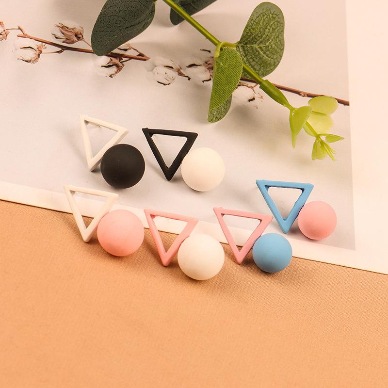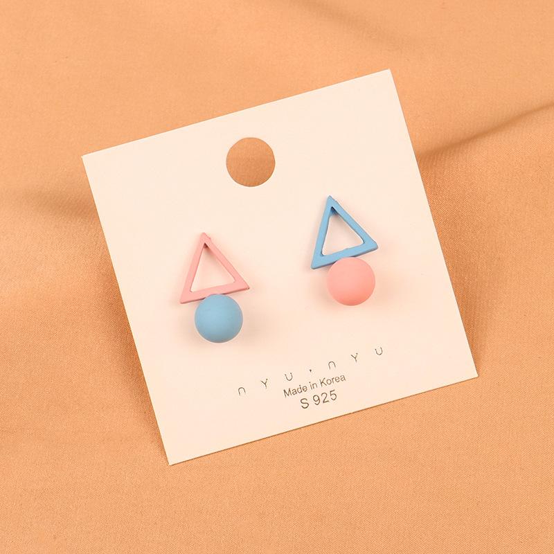 Pendientes de perlas triangulares asimétricos de moda de Corea del Sur, pendientes dulces de color rosa con personalidad y temperamento, pendientes B608