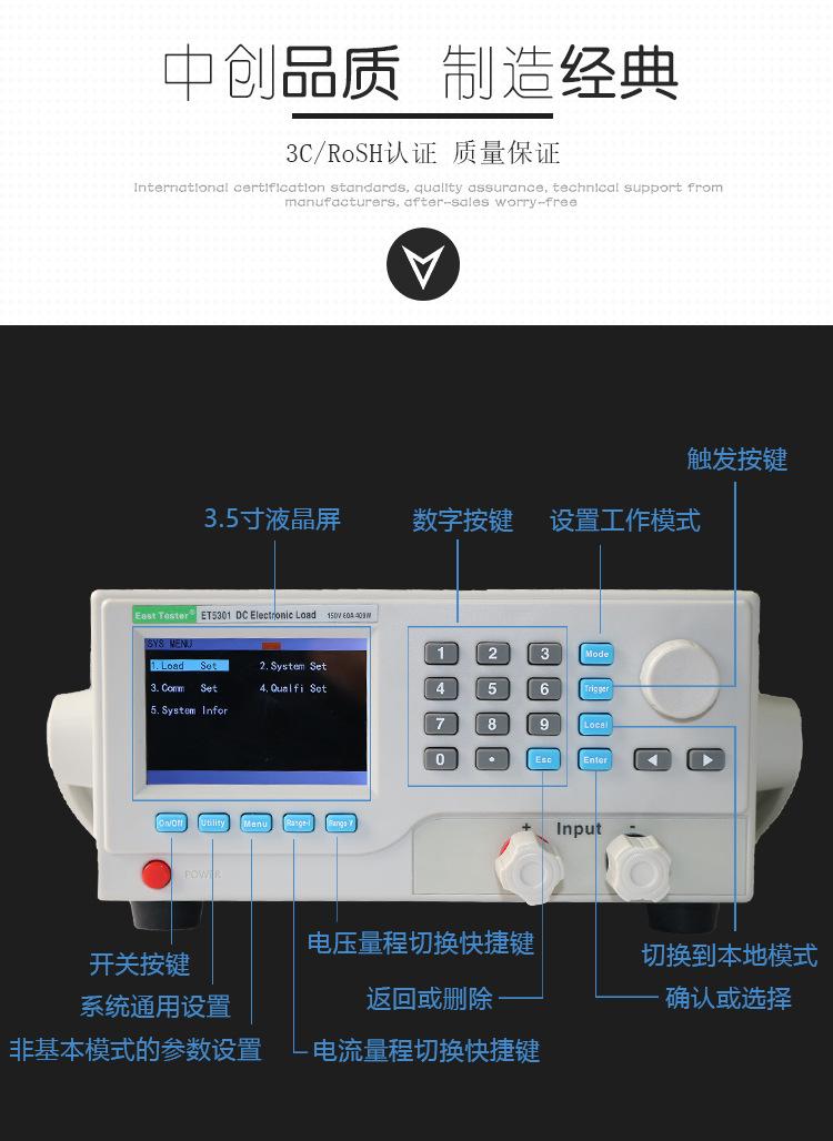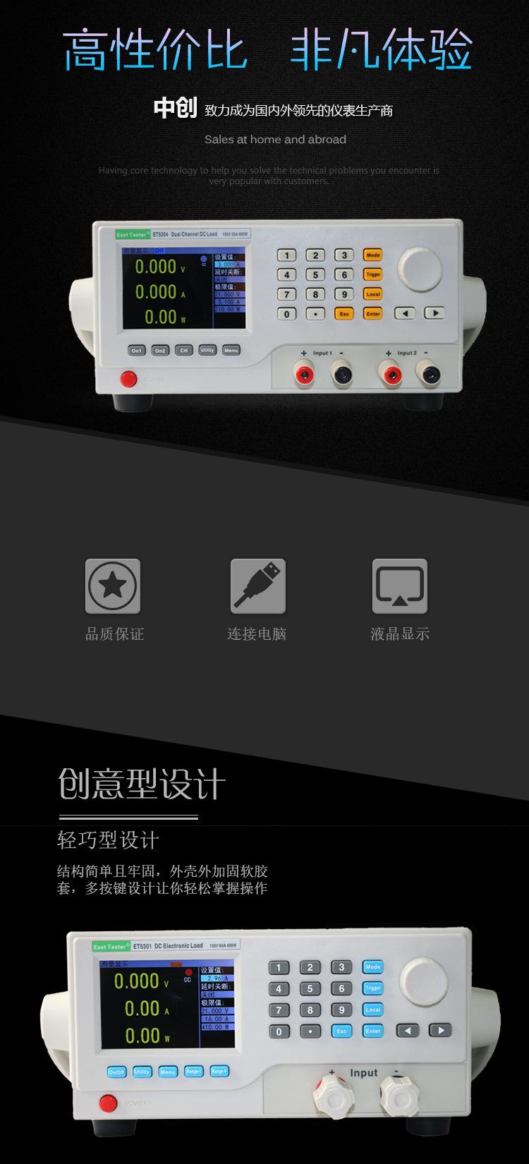 Probador de carga de resistencia interna de capacitancia de batería Zhongchuang de un solo canal/doble canal 400W programable medidor de carga electrónica CC